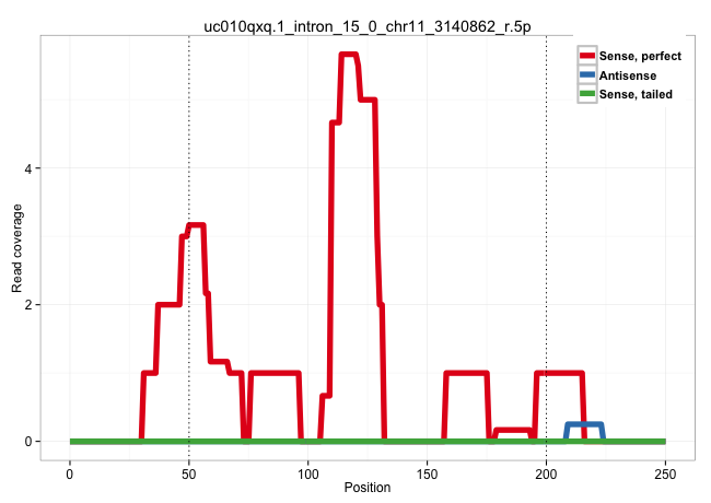 | TGTGGTGCGTGCTGAAGCCGGGGGTGCTGCTCATCTACAAGACGCCCAAGGTGGGCCAGTGGGTGGGCACGGTGCTGCTGCACTGCTGCGAGCTCATCGAGCGGCCCTCCAAGAAGGACGGCTTCTGCTTCAAGCTCTTCCACCCGCTGGATCAGTCCGTCTGGGCCGTGAAGGTGCTGCGGAGGGGTGGGGTTGAAGACAGAGGCCCCGTAGGGCCAAGGGGCTCATTCCTAGGGCCCTGGTGGAGGGT ....................................................(((((.((((((..(((((((((....)))))).)))..)))))).....)))))....(((((.....)))))............................................................................................................................ ..................................................51................................................................................133................................................................................................................... | Size | Perfect hit | Total Norm | Perfect Norm | SRR343337 | SRR343336 | SRR189777(GSM714637) cell line: HEK293clip variant: PAR-CLIPenzyma. (cell line) | SRR343335 | SRR343334 | SRR189784 | SRR326279(GSM769509) cytoplasmic fraction was isolated using PARIS. (cell line) | SRR039191(GSM494810) PBMCs were isolated by ficoll gradient from t. (blood) | SRR037943(GSM510481) 293DcrTN. (cell line) | SRR189782 | SRR189785 | SRR037944(GSM510482) 293DcrTN_cand5. (cell line) | SRR189775(GSM714635) cell line: HEK293clip variant: CLIPenzymatic . (cell line) | SRR189776(GSM714636) cell line: HEK293clip variant: CLIPenzymatic . (cell line) | SRR191485(GSM715595) 123genomic small RNA (size selected RNA from . (breast) | SRR330879(SRX091717) tissue: skin psoriatic involveddisease state:. (skin) | SRR553573(SRX182779) source: Cerebellum. (Cerebellum) | TAX577740(Rovira) total RNA. (breast) | SRR095854(SRX039177) "miRNA were isolated from FirstChoice Human B. (brain) | SRR029127(GSM416756) A549. (cell line) | SRR330899(SRX091737) tissue: skin psoriatic uninvolveddisease stat. (skin) | SRR330919(SRX091757) tissue: normal skindisease state: normal. (skin) | SRR189786 | GSM450602(GSM450602) miRNA sequencing raw reads from post-mortem s. (brain) | SRR039622(GSM531985) HCV(+) Adjacent Tissue Sample. (liver) | SRR033730(GSM497075) Lymphoblastic (ALL411). (B cell) | GSM450605(GSM450605) miRNA sequencing raw reads from post-mortem s. (brain) | SRR038852(GSM458535) QF1160MB. (cell line) | SRR330906(SRX091744) tissue: normal skindisease state: normal. (skin) | SRR040022(GSM532907) G575N. (cervix) | SRR207116(GSM721078) Nuclear RNA. (cell line) | DRR001485(DRX001039) "Hela long total cell fraction, LNA(+)". (hela) | SRR444059(SRX128907) Sample 17cDNABarcode: AF-PP-339: ACG CTC TTC . (skin) | SRR444057(SRX128905) Sample 15cDNABarcode: AF-PP-334: ACG CTC TTC . (skin) |