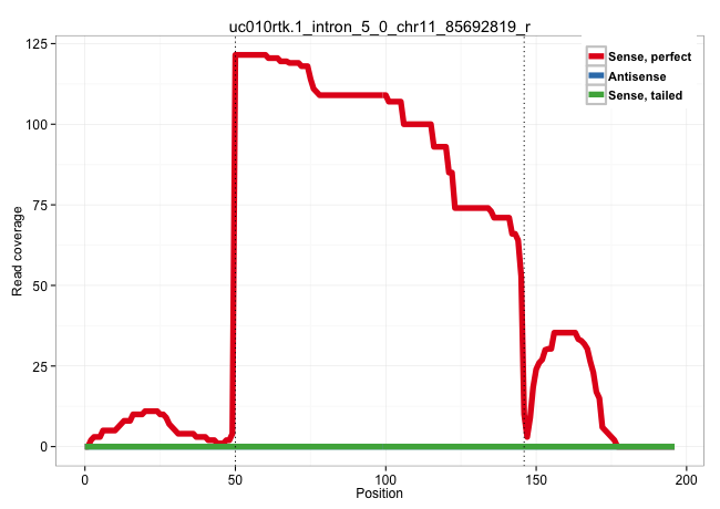 | CAAGTTAGTATCTGATGACTTGGATTCATCTTTAGCCAACCTTGTGGGCAGTAAGTAGTCTTTGGATACGTTAATCTTCTTTTATGTTGTTTTATTAAACTGCGTCTCGTGTTATAAAATGCTTTTTTGTTTTTCTCCTTTCCTAGATCTTGGCATCGGAAATGGAACCACTAAGAAGTGAGTGTTTAATATACAC ....................................................(((((.......((((((.............((((.((((....)))).))))..))))))......)))))........................................................................ ..................................................51.............................................................................................146................................................  | Size | Perfect hit | Total Norm | Perfect Norm | DRR001486(DRX001040) "Hela long cytoplasmic cell fraction, LNA(+)". (hela)  | DRR001485(DRX001039) "Hela long total cell fraction, LNA(+)". (hela)  | DRR001483(DRX001037) "Hela long cytoplasmic cell fraction, control. (hela)  | SRR342899(SRX096795) small RNA seq of Left atrial tissue. (heart)  | SRR342895(SRX096791) small RNA seq of Left atrial tissue. (heart)  | SRR342897(SRX096793) small RNA seq of Left atrial tissue. (heart)  | SRR387909(GSM843861) specific-host: Homo sapienshost cell line: Su. (cell line)  | SRR039623(GSM531986) HCV(+) HCC Tissue Sample. (liver)  | SRR553572(SRX182778) source: Frontal Cortex. (Frontal Cortex)  | SRR363674(GSM830251) cell type: human foreskin fibroblasts (HFF)tr. (fibroblast)  | SRR330907(SRX091745) tissue: normal skindisease state: normal. (skin)  | GSM1105753INPUT(GSM1105753) small RNA sequencing data. (hela)  | SRR330862(SRX091700) tissue: skin psoriatic involveddisease state:. (skin)  | GSM1105750AGO3(GSM1105750) small RNA sequencing data. (ago3 hela)  | SRR107296(GSM677703) 18-30nt fraction of small RNA. (cell line)  | SRR330868(SRX091706) tissue: skin psoriatic involveddisease state:. (skin)  | SRR330894(SRX091732) tissue: skin psoriatic uninvolveddisease stat. (skin)  | GSM359173(GSM359173) hela_10_1. (hela)  | SRR330865(SRX091703) tissue: skin psoriatic involveddisease state:. (skin)  | SRR330880(SRX091718) tissue: skin psoriatic involveddisease state:. (skin)  | TAX577580(Rovira) total RNA. (breast)  | SRR330883(SRX091721) tissue: skin psoriatic uninvolveddisease stat. (skin)  | SRR033722(GSM497067) KMS12 cell line (KMS12). (B cell)  | SRR039620(GSM531983) HBV(+) Adjacent Tissue Sample 2. (liver)  | TAX577746(Rovira) total RNA. (breast)  | SRR342894(SRX096790) small RNA seq of Right atrial tissue. (heart)  | SRR553575(SRX182781) source: Kidney. (Kidney)  | SRR207112(GSM721074) RRP40 knockdown. (RRP40 cell line)  | SRR330864(SRX091702) tissue: skin psoriatic involveddisease state:. (skin)  | SRR330923(SRX091761) tissue: normal skindisease state: normal. (skin)  | SRR040008(GSM532893) G727N. (cervix)  | SRR330887(SRX091725) tissue: skin psoriatic uninvolveddisease stat. (skin)  | TAX577741(Rovira) total RNA. (breast)  | SRR189779(GSM714639) cell line: HEK293clip variant: PAR-CLIPenzyma. (cell line)  | SRR189780(GSM714640) cell line: HEK293clip variant: PAR-CLIPenzyma. (cell line)  | TAX577590(Rovira) total RNA. (breast)  | GSM359178(GSM359178) hela_nucl_t. (hela)  | SRR033715(GSM497060) Mantle Cell Lymphoma (Mino122). (B cell)  | SRR330874(SRX091712) tissue: skin psoriatic involveddisease state:. (skin)  | SRR207115(GSM721077) XRN1&2 knockdown. (XRN1/XRN2 cell line)  | SRR029130(GSM416759) DLD2. (cell line)  | SRR330902(SRX091740) tissue: skin psoriatic uninvolveddisease stat. (skin)  | SRR444054(SRX128902) Sample 14cDNABarcode: AF-PP-342: ACG CTC TTC . (skin)  | SRR330893(SRX091731) tissue: skin psoriatic uninvolveddisease stat. (skin)  | SRR342896(SRX096792) small RNA seq of Right atrial tissue. (heart)  | SRR039637(GSM518474) THP1_total_sRNAs. (cell line)  | DRR001487(DRX001041) "Hela long nuclear cell fraction, LNA(+)". (hela)  | TAX577743(Rovira) total RNA. (breast)  | SRR040027(GSM532912) G220T. (cervix)  | SRR189781(GSM714641) cell line: HEK293clip variant: PAR-CLIPenzyma. (cell line)  | GSM450604(GSM450604) miRNA sequencing raw reads from post-mortem s. (brain)  | SRR330889(SRX091727) tissue: skin psoriatic uninvolveddisease stat. (skin)  |