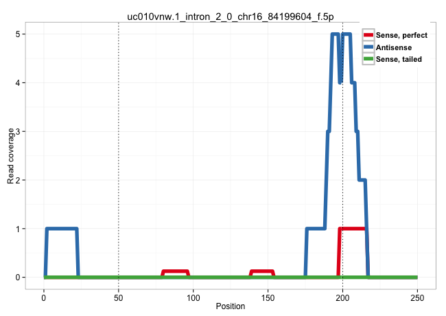 | AGGTATGCGCTCGGCCGAAGACAACAGCCCCAGAGTTCCTTTGAGATTAGGCAAGTCTAAGCTCTCAAACCCAGTCTTTAATCTTGGGAATTTTTTTTTTTTTTTTTTTTTTTTTTTAGACAGAGTCTTGCTCTGTCACTGAGGTTGCAAAGTTGGAGTGCAGCAGTGTGATCTTGGCTCACTGCAACTTCTGTCTCCCGGGTTCAAGCAATTCTCGTGCCTCAGCCTCCCCAGAGCTGGGATTATGGGC ......................................................................................................................(((((((.....))))))).(((((((..((..((((.....))))..))..)))))))......................................................................... .......................................................................................................104.................................................................................188............................................................ | Size | Perfect hit | Total Norm | Perfect Norm | SRR324841(SRX087285) "Total RNA, no rRNA depletion". (cell line) | SRR189779(GSM714639) cell line: HEK293clip variant: PAR-CLIPenzyma. (cell line) | SRR189776(GSM714636) cell line: HEK293clip variant: CLIPenzymatic . (cell line) | SRR189775(GSM714635) cell line: HEK293clip variant: CLIPenzymatic . (cell line) | SRR189780(GSM714640) cell line: HEK293clip variant: PAR-CLIPenzyma. (cell line) | SRR189781(GSM714641) cell line: HEK293clip variant: PAR-CLIPenzyma. (cell line) | SRR189777(GSM714637) cell line: HEK293clip variant: PAR-CLIPenzyma. (cell line) | SRR189778(GSM714638) cell line: HEK293clip variant: PAR-CLIPenzyma. (cell line) | SRR207115(GSM721077) XRN1&2 knockdown. (XRN1/XRN2 cell line) | SRR037937(GSM510475) 293cand2. (cell line) | DRR000556(DRX000314) "THP-1 whole cell RNA, after 3 day treatment . (cell line) | SRR330903(SRX091741) tissue: skin psoriatic uninvolveddisease stat. (skin) | DRR001488(DRX001042) "Hela short nuclear cell fraction, LNA(+)". (hela) | SRR189784 | SRR039621(GSM531984) HBV(+) HCC Tissue Sample 2. (liver) | SRR330883(SRX091721) tissue: skin psoriatic uninvolveddisease stat. (skin) | DRR000555(DRX000313) "THP-1 whole cell RNA, no treatment". (cell line) | SRR039620(GSM531983) HBV(+) Adjacent Tissue Sample 2. (liver) | SRR553572(SRX182778) source: Frontal Cortex. (Frontal Cortex) | SRR330906(SRX091744) tissue: normal skindisease state: normal. (skin) | SRR330890(SRX091728) tissue: skin psoriatic uninvolveddisease stat. (skin) | SRR330864(SRX091702) tissue: skin psoriatic involveddisease state:. (skin) | DRR000558(DRX000316) "THP-1 whole cell RNA, after 3 day treatment . (cell line) | SRR314796(SRX084354) "Total RNA, fractionated (15-30nt)". (cell line) | SRR330917(SRX091755) tissue: normal skindisease state: normal. (skin) | SRR330899(SRX091737) tissue: skin psoriatic uninvolveddisease stat. (skin) | SRR330901(SRX091739) tissue: skin psoriatic uninvolveddisease stat. (skin) | SRR390723(GSM850202) total small RNA. (cell line) | GSM956925Ago2(GSM956925) "cell line: HEK293 cell linepassages: 15-20ip. (ago2 cell line) | SRR330902(SRX091740) tissue: skin psoriatic uninvolveddisease stat. (skin) | SRR207116(GSM721078) Nuclear RNA. (cell line) | SRR038853(GSM458536) MELB. (cell line) | GSM956925Ago2PAZ(GSM956925) "cell line: HEK293 cell linepassages: 15-20ip. (ago2 cell line) | SRR033723(GSM497068) L1236 cell line (L1236). (B cell) | SRR060981(GSM569185) Human centroblast [09-001]. (cell line) | SRR033711(GSM497056) GCB DLBCL (GCB110). (B cell) | SRR330859(SRX091697) tissue: skin psoriatic involveddisease state:. (skin) | SRR189787 |