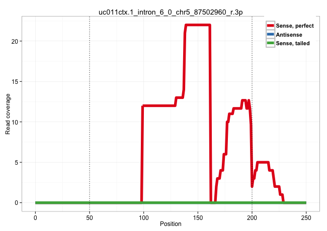 | ACTTAGTATATGGGTGCTCTTTTCCTTAATTTAAAAGTGTTTTAAACTCCACTTGGAAATAAATGTTGTAGTCAAATTTTATTGCAATCAAGTCCTATAAAGATCATTGTGTATAGCTCCTATAAATTTATTGTGGTTTTTCCTGAACTTTTCCTTCTGCAGCAAAGTTCTATTTTCATTAACTACACACTATTTTAAAGTAGAAGATGGTGGTGAAAGATCTGTTTGTGTCACCTTTGGATTTTTTTTC .....................................................................................................................................(((((......(((((((..((.....)).)))))))..........)))))................................................................. .....................................................................................................................................134...............................................................200................................................ | Size | Perfect hit | Total Norm | Perfect Norm | DRR001486(DRX001040) "Hela long cytoplasmic cell fraction, LNA(+)". (hela) | SRR207115(GSM721077) XRN1&2 knockdown. (XRN1/XRN2 cell line) | SRR189785 | SRR343334 | SRR189776(GSM714636) cell line: HEK293clip variant: CLIPenzymatic . (cell line) | SRR189783 | SRR039617(GSM531980) HBV(+) Adjacent Tissue Sample 1. (liver) | SRR060982(GSM569186) Human centrocyte [09-001]. (cell line) | SRR060981(GSM569185) Human centroblast [09-001]. (cell line) | SRR343335 | SRR330889(SRX091727) tissue: skin psoriatic uninvolveddisease stat. (skin) | SRR330865(SRX091703) tissue: skin psoriatic involveddisease state:. (skin) | SRR189784 | TAX577580(Rovira) total RNA. (breast) | SRR342894(SRX096790) small RNA seq of Right atrial tissue. (heart) | SRR343336 | SRR060985(GSM569189) Human naive B cell [09-001]. (cell line) | SRR330910(SRX091748) tissue: normal skindisease state: normal. (skin) | GSM450609(GSM450609) miRNA sequencing raw reads from post-mortem s. (brain) | DRR000558(DRX000316) "THP-1 whole cell RNA, after 3 day treatment . (cell line) | GSM450603(GSM450603) miRNA sequencing raw reads from post-mortem s. (brain) | SRR038861(GSM458544) MM466. (cell line) | SRR342900(SRX096796) small RNA seq of Right atrial tissue. (heart) | SRR038860(GSM458543) MM426. (cell line) | GSM450600(GSM450600) miRNA sequencing raw reads from post-mortem s. (brain) | GSM450602(GSM450602) miRNA sequencing raw reads from post-mortem s. (brain) | SRR039622(GSM531985) HCV(+) Adjacent Tissue Sample. (liver) | SRR342895(SRX096791) small RNA seq of Left atrial tissue. (heart) | SRR207116(GSM721078) Nuclear RNA. (cell line) | SRR038862(GSM458545) MM472. (cell line) | SRR330878(SRX091716) tissue: skin psoriatic involveddisease state:. (skin) | SRR040035(GSM532920) G001T. (cervix) | SRR363674(GSM830251) cell type: human foreskin fibroblasts (HFF)tr. (fibroblast) | SRR189778(GSM714638) cell line: HEK293clip variant: PAR-CLIPenzyma. (cell line) | SRR343337 | SRR189781(GSM714641) cell line: HEK293clip variant: PAR-CLIPenzyma. (cell line) |