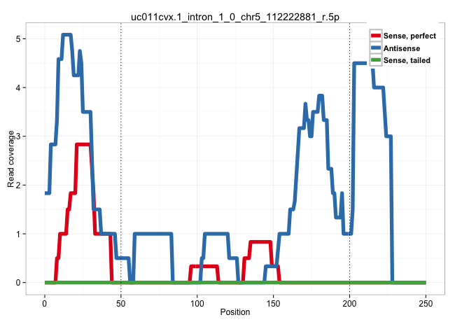 | GCTTGGCATTCTTCTTCCGACTGGTACTGAACATATACATTGCCCCTCAGGTGAGGTTCCAAATTGCAGCTGACCTTGAACTGAATCACTTTCCCCACGTTCTTGAACTCGGGCAACACATCCTCATAGAAATCTAGGAACTGTTGGTAGGTTTCTTCCTCGCTGTACTCCAGGCTTGCGTCAGGGTCATAGTCATCCCTCCTGCACTGCTCCATTCCAAACGTTGTAAACATGCTCTTAATAAGAAGGG .............................................................................................................................((((......(((((((.......)))))))......))))...((.(((....))).))................................................................. .......................................................................................................................120..............................................................185............................................................... | Size | Perfect hit | Total Norm | Perfect Norm | SRR207113(GSM721075) IP against AGO 1 & 2. (ago1/2 cell line) | DRR001486(DRX001040) "Hela long cytoplasmic cell fraction, LNA(+)". (hela) | SRR189779(GSM714639) cell line: HEK293clip variant: PAR-CLIPenzyma. (cell line) | SRR553576(SRX182782) source: Testis. (testes) | SRR189782 | SRR189786 | SRR039623(GSM531986) HCV(+) HCC Tissue Sample. (liver) | GSM1105750AGO3(GSM1105750) small RNA sequencing data. (ago3 hela) | SRR189784 | GSM1105748AGO1(GSM1105748) small RNA sequencing data. (ago1 hela) | SRR342894(SRX096790) small RNA seq of Right atrial tissue. (heart) | SRR189780(GSM714640) cell line: HEK293clip variant: PAR-CLIPenzyma. (cell line) | SRR330861(SRX091699) tissue: skin psoriatic involveddisease state:. (skin) | SRR189781(GSM714641) cell line: HEK293clip variant: PAR-CLIPenzyma. (cell line) | SRR342899(SRX096795) small RNA seq of Left atrial tissue. (heart) | SRR033712(GSM497057) Burkitt Lymphoma (BL510). (B cell) | SRR039625(GSM531988) HBV(-) HCV(-) HCC Tissue Sample. (liver) | SRR330913(SRX091751) tissue: normal skindisease state: normal. (skin) | SRR330907(SRX091745) tissue: normal skindisease state: normal. (skin) | SRR040011(GSM532896) G529T. (cervix) | SRR330863(SRX091701) tissue: skin psoriatic involveddisease state:. (skin) | SRR330897(SRX091735) tissue: skin psoriatic uninvolveddisease stat. (skin) | SRR039192(GSM494811) K562 cell line is derived from a CML patient . (cell line) | SRR033721(GSM497066) Ly3 cell line (Ly3). (B cell) | SRR330896(SRX091734) tissue: skin psoriatic uninvolveddisease stat. (skin) | SRR330919(SRX091757) tissue: normal skindisease state: normal. (skin) | DRR001489(DRX001043) "Hela short nuclear cell fraction, control". (hela) | SRR330870(SRX091708) tissue: skin psoriatic involveddisease state:. (skin) | SRR342897(SRX096793) small RNA seq of Left atrial tissue. (heart) | GSM450605(GSM450605) miRNA sequencing raw reads from post-mortem s. (brain) | SRR342898(SRX096794) small RNA seq of Right atrial tissue. (heart) | SRR326281(GSM769511) "Dicer mRNA was knocked down using siDicer, c. (cell line) | SRR330908(SRX091746) tissue: normal skindisease state: normal. (skin) | SRR330879(SRX091717) tissue: skin psoriatic involveddisease state:. (skin) | SRR553575(SRX182781) source: Kidney. (Kidney) | DRR000558(DRX000316) "THP-1 whole cell RNA, after 3 day treatment . (cell line) | SRR330874(SRX091712) tissue: skin psoriatic involveddisease state:. (skin) | SRR207115(GSM721077) XRN1&2 knockdown. (XRN1/XRN2 cell line) | SRR039622(GSM531985) HCV(+) Adjacent Tissue Sample. (liver) | SRR330892(SRX091730) tissue: skin psoriatic uninvolveddisease stat. (skin) |