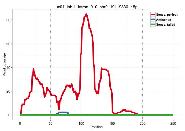 | ACAAGACCAAAGGGGCAGTGACTGGCAGTGTGGAGAAGACCAAGTCTGTGGTCAGTGGCAGCATTAACACAGTCTTGGGGAGTCGGATGATGCAGCTCGTGAGCAGTGGCGTAGAAAATGCACTCACCAAATCAGAGCTGTTGGTAGAACAGTACCTCCCTCTCACTGAGGAAGAACTAGGTAACTGGAATTTTATCTTGAAATACTGTTTTATATTAAATCTTTCTTAAACAGCTTCATTGACATATAC ..................................................................................................(((((.....((((.....)))).))))).........((((((.....))))))................................................................................................. ..............................................................................................95..........................................................155............................................................................................. | Size | Perfect hit | Total Norm | Perfect Norm | SRR039622(GSM531985) HCV(+) Adjacent Tissue Sample. (liver) | SRR039623(GSM531986) HCV(+) HCC Tissue Sample. (liver) | SRR039620(GSM531983) HBV(+) Adjacent Tissue Sample 2. (liver) | SRR207115(GSM721077) XRN1&2 knockdown. (XRN1/XRN2 cell line) | SRR207110(GSM721072) Nuclear RNA. (cell line) | SRR039616(GSM531979) HBV(+) Distal Tissue Sample 1. (liver) | SRR039618(GSM531981) HBV(+) Side Tissue Sample 1. (liver) | SRR033721(GSM497066) Ly3 cell line (Ly3). (B cell) | SRR039614(GSM531977) HBV-infected Liver Tissue. (liver) | SRR039617(GSM531980) HBV(+) Adjacent Tissue Sample 1. (liver) | GSM450605(GSM450605) miRNA sequencing raw reads from post-mortem s. (brain) | SRR189779(GSM714639) cell line: HEK293clip variant: PAR-CLIPenzyma. (cell line) | SRR039611(GSM531974) Human Normal Liver Tissue Sample 1. (liver) | SRR330890(SRX091728) tissue: skin psoriatic uninvolveddisease stat. (skin) | SRR342899(SRX096795) small RNA seq of Left atrial tissue. (heart) | GSM1105748AGO1(GSM1105748) small RNA sequencing data. (ago1 hela) | SRR553572(SRX182778) source: Frontal Cortex. (Frontal Cortex) | SRR040008(GSM532893) G727N. (cervix) | SRR207116(GSM721078) Nuclear RNA. (cell line) | SRR330903(SRX091741) tissue: skin psoriatic uninvolveddisease stat. (skin) | SRR330879(SRX091717) tissue: skin psoriatic involveddisease state:. (skin) | GSM532876(GSM532876) G547T. (cervix) | SRR039615(GSM531978) Severe Chronic Hepatitis B Liver Tissue. (liver) | SRR039625(GSM531988) HBV(-) HCV(-) HCC Tissue Sample. (liver) | TAX577746(Rovira) total RNA. (breast) | SRR039190(GSM494809) PBMCs were isolated by ficoll gradient from t. (blood) | GSM1105753INPUT(GSM1105753) small RNA sequencing data. (hela) | SRR207118(GSM721080) RRP40 knockdown. (RRP40 cell line) | SRR037876(GSM522374) fibroblasts_cell_culture. (fibroblast) | TAX577740(Rovira) total RNA. (breast) | SRR029128(GSM416757) H520. (cell line) | GSM359193(GSM359193) HepG2_3pM_7. (cell line) | SRR033727(GSM497072) HIV-positive DL (HIV412). (B cell) | SRR015447(SRR015447) nuclear small RNAs. (breast) | SRR189780(GSM714640) cell line: HEK293clip variant: PAR-CLIPenzyma. (cell line) | SRR191595(GSM715705) 72genomic small RNA (size selected RNA from t. (breast) | SRR038857(GSM458540) D20. (cell line) | SRR330894(SRX091732) tissue: skin psoriatic uninvolveddisease stat. (skin) | SRR039613(GSM531976) Human Normal Liver Tissue Sample 3. (liver) | SRR330915(SRX091753) tissue: normal skindisease state: normal. (skin) | TAX577738(Rovira) total RNA. (breast) | SRR342897(SRX096793) small RNA seq of Left atrial tissue. (heart) | SRR038862(GSM458545) MM472. (cell line) | SRR039619(GSM531982) HBV(+) HCC Tissue Sample 1. (liver) | SRR342896(SRX096792) small RNA seq of Right atrial tissue. (heart) | SRR330916(SRX091754) tissue: normal skindisease state: normal. (skin) | SRR039637(GSM518474) THP1_total_sRNAs. (cell line) | SRR039624(GSM531987) HBV(-) HCV(-) Adjacent Tissue Sample. (liver) | SRR033711(GSM497056) GCB DLBCL (GCB110). (B cell) | SRR342901(SRX096797) small RNA seq of Left atrial tissue. (heart) | SRR330896(SRX091734) tissue: skin psoriatic uninvolveddisease stat. (skin) | DRR000556(DRX000314) "THP-1 whole cell RNA, after 3 day treatment . (cell line) |