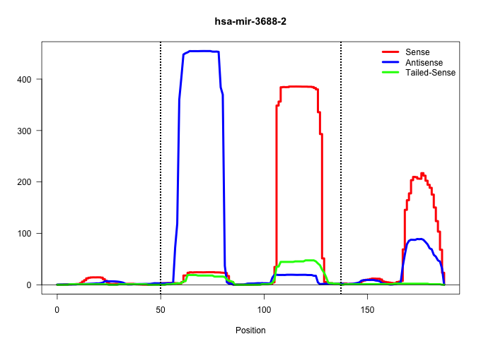 | AAATAGTTTTGATCATTTTATTTAAATAAAGAAGCTGAACCAAAAGTTCTTCACTTTAAAGAGTGGCAAAGTCTTTCCATATGTGTAACAGACATACATACATACATATGGAAAGACTTTGCCACTCTTGAAAGTGAAGAGTGTGTGTATATATATACATATGGGGGGTGTGTGTGTGTGTGTGTGT ....................................................((((((((((((((((((((((((((((...............))))))))))))))))))))))))))))..................................................... ........................................................57.........................................................................132..................................................... | Size | Perfect hit | Total Norm | Perfect Norm | SRR387910(GSM843862) antibody for ip: Ago2. (ago2 cell line) | SRR207113(GSM721075) IP against AGO 1 & 2. (ago1/2 cell line) | SRR207116(GSM721078) Nuclear RNA. (cell line) | SRR189782 | SRR207115(GSM721077) XRN1&2 knockdown. (XRN1/XRN2 cell line) | SRR330915(SRX091753) tissue: normal skindisease state: normal. (skin) | SRR207114(GSM721076) IP against AGO 1 & 2, RRP40 knockdown. (ago1/2 RRP40 cell line) | SRR330902(SRX091740) tissue: skin psoriatic uninvolveddisease stat. (skin) | SRR037941(GSM510479) 293DroshaTN. (cell line) | SRR326280(GSM769510) total cell content of unperturbed cells was s. (cell line) | GSM450597(GSM450597) miRNA sequencing raw reads from post-mortem s. (brain) | SRR039190(GSM494809) PBMCs were isolated by ficoll gradient from t. (blood) | SRR330899(SRX091737) tissue: skin psoriatic uninvolveddisease stat. (skin) | SRR037944(GSM510482) 293DcrTN_cand5. (cell line) | SRR037940(GSM510478) 293cand5_rep2. (cell line) | SRR037942(GSM510480) 293DroshaTN_cand5. (cell line) | SRR330890(SRX091728) tissue: skin psoriatic uninvolveddisease stat. (skin) | SRR330903(SRX091741) tissue: skin psoriatic uninvolveddisease stat. (skin) | SRR326279(GSM769509) cytoplasmic fraction was isolated using PARIS. (cell line) | SRR037934(GSM510472) 293cand4_rep3. (cell line) | SRR037939(GSM510477) 293cand5_rep1. (cell line) | SRR330905(SRX091743) tissue: normal skindisease state: normal. (skin) | SRR330923(SRX091761) tissue: normal skindisease state: normal. (skin) | SRR314796(SRX084354) Total RNA, fractionated (15-30nt). (cell line) | SRR330887(SRX091725) tissue: skin psoriatic uninvolveddisease stat. (skin) | SRR330919(SRX091757) tissue: normal skindisease state: normal. (skin) | SRR330916(SRX091754) tissue: normal skindisease state: normal. (skin) | DRR001488(DRX001042) Hela short nuclear cell fraction, LNA(+). (hela) | SRR326282(GSM769512) Dicer mRNA was knocked down using siDicer, to. (cell line) | SRR037943(GSM510481) 293DcrTN. (cell line) | GSM450607(GSM450607) miRNA sequencing raw reads from post-mortem s. (brain) | SRR330868(SRX091706) tissue: skin psoriatic involveddisease state:. (skin) | SRR330894(SRX091732) tissue: skin psoriatic uninvolveddisease stat. (skin) | SRR330867(SRX091705) tissue: skin psoriatic involveddisease state:. (skin) | SRR033722(GSM497067) KMS12 cell line (KMS12). (B cell) | SRR330901(SRX091739) tissue: skin psoriatic uninvolveddisease stat. (skin) | SRR342897(SRX096793) small RNA seq of Left atrial tissue. (heart) | SRR330921(SRX091759) tissue: normal skindisease state: normal. (skin) | GSM450606(GSM450606) miRNA sequencing raw reads from post-mortem s. (brain) | SRR330870(SRX091708) tissue: skin psoriatic involveddisease state:. (skin) | SRR189787 | TAX577738(Rovira) total RNA. (breast) | SRR330865(SRX091703) tissue: skin psoriatic involveddisease state:. (skin) | SRR037936(GSM510474) 293cand1. (cell line) | SRR330873(SRX091711) tissue: skin psoriatic involveddisease state:. (skin) | SRR330900(SRX091738) tissue: skin psoriatic uninvolveddisease stat. (skin) | SRR330913(SRX091751) tissue: normal skindisease state: normal. (skin) | SRR330922(SRX091760) tissue: normal skindisease state: normal. (skin) | SRR330885(SRX091723) tissue: skin psoriatic uninvolveddisease stat. (skin) | SRR330896(SRX091734) tissue: skin psoriatic uninvolveddisease stat. (skin) | SRR342900(SRX096796) small RNA seq of Right atrial tissue. (heart) | SRR330877(SRX091715) tissue: skin psoriatic involveddisease state:. (skin) | SRR189786 | SRR330869(SRX091707) tissue: skin psoriatic involveddisease state:. (skin) | SRR326281(GSM769511) Dicer mRNA was knocked down using siDicer, cy. (cell line) | SRR330888(SRX091726) tissue: skin psoriatic uninvolveddisease stat. (skin) | SRR040028(GSM532913) G026N. (cervix) | SRR330863(SRX091701) tissue: skin psoriatic involveddisease state:. (skin) | GSM450609(GSM450609) miRNA sequencing raw reads from post-mortem s. (brain) | SRR330911(SRX091749) tissue: normal skindisease state: normal. (skin) | SRR037938(GSM510476) 293Red. (cell line) | SRR029130(GSM416759) DLD2. (cell line) | SRR330866(SRX091704) tissue: skin psoriatic involveddisease state:. (skin) | SRR330878(SRX091716) tissue: skin psoriatic involveddisease state:. (skin) | SRR037933(GSM510471) 293cand4_rep2. (cell line) | SRR330871(SRX091709) tissue: skin psoriatic involveddisease state:. (skin) | SRR330906(SRX091744) tissue: normal skindisease state: normal. (skin) | SRR040032(GSM532917) G603N. (cervix) | SRR330893(SRX091731) tissue: skin psoriatic uninvolveddisease stat. (skin) | SRR033712(GSM497057) Burkitt Lymphoma (BL510). (B cell) | SRR189784 | SRR139215(SRX050633) FLASHPage purified small RNA (~15-40nt) from . (thymus) | SRR039625(GSM531988) HBV(-) HCV(-) HCC Tissue Sample. (liver) | SRR330864(SRX091702) tissue: skin psoriatic involveddisease state:. (skin) | SRR330904(SRX091742) tissue: normal skindisease state: normal. (skin) | SRR033721(GSM497066) Ly3 cell line (Ly3). (B cell) | SRR094132(GSM651908) small RNA(18-35nt)small RNA deep sequencing o. (uterus) | DRR001489(DRX001043) Hela short nuclear cell fraction, control. (hela) | GSM450608(GSM450608) miRNA sequencing raw reads from post-mortem s. (brain) | SRR139188(SRX050640) FLASHPage purified small RNA (~15-40nt) from . (lung) | SRR342896(SRX096792) small RNA seq of Right atrial tissue. (heart) | SRR330886(SRX091724) tissue: skin psoriatic uninvolv