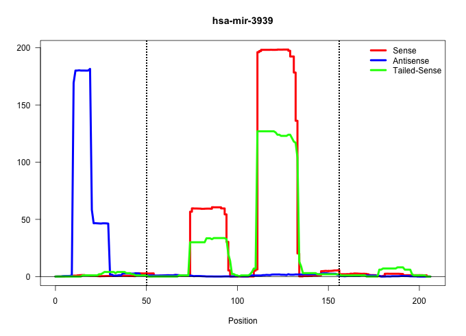 | TCTTAGGAGACGCCTGCCGGCCGCTTTGGGATAGGGCCTGTCTGCCCATGCTGGCTTCCAAAGGCCTCTGTGTGTTCCTGTATGTGGGCGTGCACGTACCTGTCACATGTGTACGCGCAGACCACAGGATGTCCACACTGGCTTCCAAACACATCTCTGTGTTTCTGTCTGTGAGTGTGTACGCAGGTGTCAAATGTGTACGCACA ..................................................(((...((((((...((.((((((((((.........)))))))))).))....))))))....)))................................................... .....................................................................70.................................................................137................................................................... | Size | Perfect hit | Total Norm | Perfect Norm | SRR387910(GSM843862) antibody for ip: Ago2. (ago2 cell line) | SRR037940(GSM510478) 293cand5_rep2. (cell line) | SRR037944(GSM510482) 293DcrTN_cand5. (cell line) | SRR037936(GSM510474) 293cand1. (cell line) | SRR037942(GSM510480) 293DroshaTN_cand5. (cell line) | SRR037937(GSM510475) 293cand2. (cell line) | SRR189786 | SRR039625(GSM531988) HBV(-) HCV(-) HCC Tissue Sample. (liver) | SRR037939(GSM510477) 293cand5_rep1. (cell line) | SRR037935(GSM510473) 293cand3. (cell line) | SRR037931(GSM510469) 293GFP. (cell line) | SRR029125(GSM416754) U2OS. (cell line) | SRR033722(GSM497067) KMS12 cell line (KMS12). (B cell) | GSM416733(GSM416733) HEK293. (cell line) | SRR314796(SRX084354) Total RNA, fractionated (15-30nt). (cell line) | GSM339994(GSM339994) hues6. (cell line) | SRR207115(GSM721077) XRN1&2 knockdown. (XRN1/XRN2 cell line) | SRR037938(GSM510476) 293Red. (cell line) | SRR189787 | SRR029128(GSM416757) H520. (cell line) | SRR039190(GSM494809) PBMCs were isolated by ficoll gradient from t. (blood) | SRR189782 | SRR037941(GSM510479) 293DroshaTN. (cell line) | SRR060981(GSM569185) Human centroblast [09-001]. (cell line) | SRR029054(GSM402329) MCF7_smallRNAseq. (cell line) | SRR060983(GSM569187) Human pre-germinal center B cell [09-001]. (cell line) | SRR029126(GSM416755) 143B. (cell line) | SRR037934(GSM510472) 293cand4_rep3. (cell line) | SRR029131(GSM416760) MCF7. (cell line) | SRR037933(GSM510471) 293cand4_rep2. (cell line) | SRR094129(GSM651905) small RNA(18-35nt)small RNA deep sequencing o. (uterus) | GSM339995(GSM339995) hues6NP. (cell line) | SRR037943(GSM510481) 293DcrTN. (cell line) | SRR037876(GSM522374) fibroblasts_cell_culture. (fibroblast) | SRR060982(GSM569186) Human centrocyte [09-001]. (cell line) | TAX577739(Rovira) total RNA. (breast) | SRR039636(GSM518473) THP1_cyto_sRNAs. (cell line) | SRR038859(GSM458542) MM386. (cell line) | DRR001489(DRX001043) Hela short nuclear cell fraction, control. (hela) | SRR033713(GSM497058) Burkitt Lymphoma (BL115). (B cell) | RoviraIPAgo2(Rovira) total RNA. (ago2 breast) | DRR001488(DRX001042) Hela short nuclear cell fraction, LNA(+). (hela) | SRR029129(GSM416758) SW480. (cell line) | SRR139184(SRX050632) FLASHPage purified small RNA (~15-40nt) from . (lung) | SRR343333(GSM796036) KSHV (HHV8). (cell line) | SRR139214(SRX050633) FLASHPage purified small RNA (~15-40nt) from . (thymus) | SRR033732(GSM497077) bjab cell line (bjab103). (B cell) | SRR139186(SRX050632) FLASHPage purified small RNA (~15-40nt) from . (lung) | SRR039635(GSM518472) THP1_nuc_sRNAs. (cell line) | TAX577579(Rovira) total RNA. (breast) | SRR060168(GSM565978) 5-8F_nucleus. (cell line) | SRR330915(SRX091753) tissue: normal skindisease state: normal. (skin) | SRR342895(SRX096791) small RNA seq of Left atrial tissue. (heart) | SRR207116(GSM721078) Nuclear RNA. (cell line) | TAX577743(Rovira) total RNA. (breast) | SRR139210(SRX050635) FLASHPage purified small RNA (~15-40nt) from . (testes) | GSM359208(GSM359208) hepg2_bindASP_hl_2. (cell line) | SRR139173(SRX050637) FLASHPage purified small RNA (~15-40nt) from . (kidney) | SRR330889(SRX091727) tissue: skin psoriatic uninvolveddisease stat. (skin) | SRR330921(SRX091759) tissue: normal skindisease state: normal. (skin) | SRR189784 | SRR039621(GSM531984) HBV(+) HCC Tissue Sample 2. (liver) | SRR039614(GSM531977) HBV-infected Liver Tissue. (liver) | SRR039620(GSM531983) HBV(+) Adjacent Tissue Sample 2. (liver) | SRR139216(SRX050633) FLASHPage purified small RNA (~15-40nt) from . (thymus) | SRR207111(GSM721073) Whole cell RNA. (cell line) | GSM450604(GSM450604) miRNA sequencing raw reads from post-mortem s. (brain) | SRR343332(GSM796035) KSHV (HHV8), EBV (HHV-4). (cell line) | SRR040011(GSM532896) G529T. (cervix) | SRR189783 | SRR207112(GSM721074) RRP40 knockdown. (RRP40 cell line) | SRR033717(GSM497062) Mentle Cell Lymphoma (MCL112). (B cell) | SRR330922(SRX091760) tissue: normal skindisease state: normal. (skin) | SRR139208(SRX050635) FLASHPage purified small RNA (~15-40nt) from . (testes) | SRR330903(SRX091741) tissue: skin psoriatic uninvolveddisease stat. (skin) | SRR326279(GSM769509) cytoplasmic fraction was isolated using PARIS. (cell line) | SRR094131(GSM651907) small RNA(18-35nt)small RNA deep sequencing o. (uterus) | SRR040036(GSM532921) G243N. (cervix) | SRR191565(GSM715675) 92genomic small RNA (size selected RNA from t. (breast) | SRR330911(SRX091749) tissue: normal skindisease state: normal. (skin) | SRR033716(GSM497061) Mentle Cell Lymphoma (MCL114). (B cell) | SRR039192(GSM494811) K562 cell line is derived from a CML patient . (cell line) | SRR139171(SRX050637) FLASHPage purified small RNA (~15-40nt) from . (kidney) | SRR038858(GSM458541) MEL202. (cell line) | SRR330887(SRX091725) tissue: skin psoriatic uninvolveddisease stat. (skin) | SRR139177(SRX050638) FLASHPage purified small RNA (~15-40nt) from . (liver) | SRR330884(SRX091722) tissue: skin psoriatic uninvolveddisease stat. (skin) | SRR094132(GSM651908) small RNA(18-35nt)small RNA deep sequencing o. (uterus) | SRR139207(SRX050653) FLASHPage purified small RNA (~15-40nt) from . (spleen) | SRR330919(SRX091757) tissue: normal skindisease state: normal. (skin) | SRR139211(SRX050635) FLASHPage purified small RNA (~15-40nt) from . (testes) | SRR330868(SRX091706) tissue: skin psoriatic involveddisease state:. (skin) | SRR029130(GSM416759) DLD2. (ce