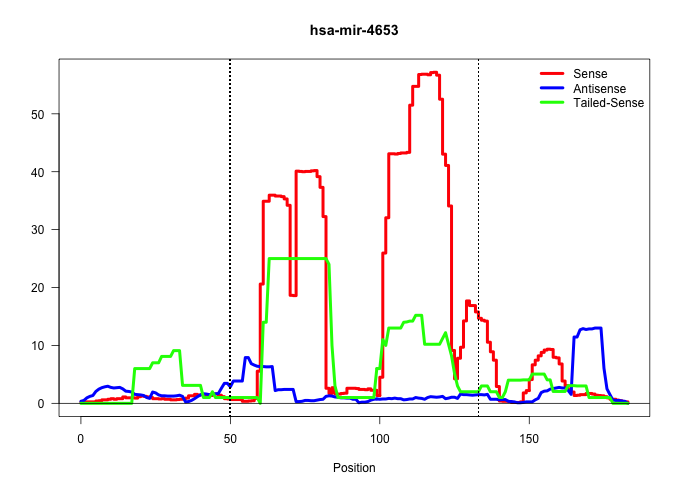 | CTCTGTCCTTCTCCCAAGCCCCCAGATGTCTCGTGGCCACCCAGTCTCCTTTGTCCAATTCTCTGAGCAAGGCTTAACACCAAAGGGTTAAGGGTTTGCTCTGGAGTTAAGGGTTGCTTGGAGAATTGGAGAAGGGGCACCTGGTAGGTCATTCTTTTCTTCCCTGATTTCTTCCCCCACCTC ..................................................(((((((..(((((..((((((.((..(((((.........))))))).))))))..)))))..)))))))................................................... ........................................................57.....................................................................128..................................................... | Size | Perfect hit | Total Norm | Perfect Norm | SRR060169(GSM565979) 5-8F_cytoplasm. (cell line) | SRR191607(GSM715717) 192genomic small RNA (size selected RNA from . (breast) | SRR015448(SRR015448) cytoplasmic small RNAs. (breast) | SRR387910(GSM843862) antibody for ip: Ago2. (ago2 cell line) | SRR029130(GSM416759) DLD2. (cell line) | SRR039190(GSM494809) PBMCs were isolated by ficoll gradient from t. (blood) | SRR060168(GSM565978) 5-8F_nucleus. (cell line) | SRR387909(GSM843861) specific-host: Homo sapienshost cell line: Su. (cell line) | SRR326279(GSM769509) cytoplasmic fraction was isolated using PARIS. (cell line) | SRR015446(SRR015446) smallRNAs high-throughput sequencing Total. (breast) | SRR139215(SRX050633) FLASHPage purified small RNA (~15-40nt) from . (thymus) | SRR029128(GSM416757) H520. (cell line) | SRR330887(SRX091725) tissue: skin psoriatic uninvolveddisease stat. (skin) | TAX577579(Rovira) total RNA. (breast) | SRR330877(SRX091715) tissue: skin psoriatic involveddisease state:. (skin) | SRR189782 | SRR139214(SRX050633) FLASHPage purified small RNA (~15-40nt) from . (thymus) | SRR033721(GSM497066) Ly3 cell line (Ly3). (B cell) | TAX577739(Rovira) total RNA. (breast) | SRR330861(SRX091699) tissue: skin psoriatic involveddisease state:. (skin) | SRR330919(SRX091757) tissue: normal skindisease state: normal. (skin) | SRR330874(SRX091712) tissue: skin psoriatic involveddisease state:. (skin) | DRR001489(DRX001043) Hela short nuclear cell fraction, control. (hela) | SRR207115(GSM721077) XRN1&2 knockdown. (XRN1/XRN2 cell line) | SRR038857(GSM458540) D20. (cell line) | SRR207116(GSM721078) Nuclear RNA. (cell line) | SRR330895(SRX091733) tissue: skin psoriatic uninvolveddisease stat. (skin) | RoviraIPAgo2(Rovira) total RNA. (ago2 breast) | SRR342899(SRX096795) small RNA seq of Left atrial tissue. (heart) | SRR191605(GSM715715) 76genomic small RNA (size selected RNA from t. (breast) | SRR330921(SRX091759) tissue: normal skindisease state: normal. (skin) | SRR039621(GSM531984) HBV(+) HCC Tissue Sample 2. (liver) | SRR139165(SRX050631) FLASHPage purified small RNA (~15-40nt) from . (heart) | SRR330900(SRX091738) tissue: skin psoriatic uninvolveddisease stat. (skin) | SRR191543(GSM715653) 124genomic small RNA (size selected RNA from . (breast) | SRR330881(SRX091719) tissue: skin psoriatic uninvolveddisease stat. (skin) | SRR039620(GSM531983) HBV(+) Adjacent Tissue Sample 2. (liver) | SRR139216(SRX050633) FLASHPage purified small RNA (~15-40nt) from . (thymus) | SRR040028(GSM532913) G026N. (cervix) | SRR330922(SRX091760) tissue: normal skindisease state: normal. (skin) | GSM532874(GSM532874) G699T. (cervix) | GSM416733(GSM416733) HEK293. (cell line) | SRR330909(SRX091747) tissue: normal skindisease state: normal. (skin) | SRR038855(GSM458538) D10. (cell line) | SRR039192(GSM494811) K562 cell line is derived from a CML patient . (cell line) | SRR139171(SRX050637) FLASHPage purified small RNA (~15-40nt) from . (kidney) | SRR037931(GSM510469) 293GFP. (cell line) | SRR363675(GSM830252) cell type: human foreskin fibroblasts (HFF)tr. (fibroblast) | SRR038858(GSM458541) MEL202. (cell line) | SRR139177(SRX050638) FLASHPage purified small RNA (~15-40nt) from . (liver) | SRR191549(GSM715659) 105genomic small RNA (size selected RNA from . (breast) | SRR189779(GSM714639) cell line: HEK293clip variant: PAR-CLIPenzyma. (cell line) | SRR189780(GSM714640) cell line: HEK293clip variant: PAR-CLIPenzyma. (cell line) | SRR038861(GSM458544) MM466. (cell line) | SRR330899(SRX091737) tissue: skin psoriatic uninvolveddisease stat. (skin) | SRR033715(GSM497060) Mantle Cell Lymphoma (Mino122). (B cell) | SRR038859(GSM458542) MM386. (cell line) | SRR139211(SRX050635) FLASHPage purified small RNA (~15-40nt) from . (testes) | SRR039635(GSM518472) THP1_nuc_sRNAs. (cell line) | SRR189786 | SRR191560(GSM715670) 77genomic small RNA (size selected RNA from t. (breast) | SRR107296(GSM677703) 18-30nt fraction of small RNA. (cell line) | SRR330915(SRX091753) tissue: normal skindisease state: normal. (skin) | SRR326282(GSM769512) Dicer mRNA was knocked down using siDicer, to. (cell line) | SRR326280(GSM769510) total cell content of unperturbed cells was s. (cell line) | SRR342898(SRX096794) small RNA seq of Right atrial tissue. (heart) | SRR330878(SRX091716) tissue: skin psoriatic involveddisease state:. (skin) | SRR330920(SRX091758) tissue: normal skindisease state: normal. (skin) | SRR330876(SRX091714) tissue: skin psoriatic involveddisease state:. (skin) | SRR189778(GSM714638) cell line: HEK293clip variant: PAR-CLIPenzyma. (cell line) | SRR330886(SRX091724) tissue: skin psoriatic uninvolveddisease stat. (skin) | TAX577745(Rovira) total RNA. (breast) | SRR326281(GSM769511) Dicer mRNA was knocked down using siDicer, cy. (cell line) | SRR029125(GSM416754) U2OS. (cell line) | SRR094131(GSM651907) small RNA(18-35nt)small RNA deep sequencing o. (uterus) |