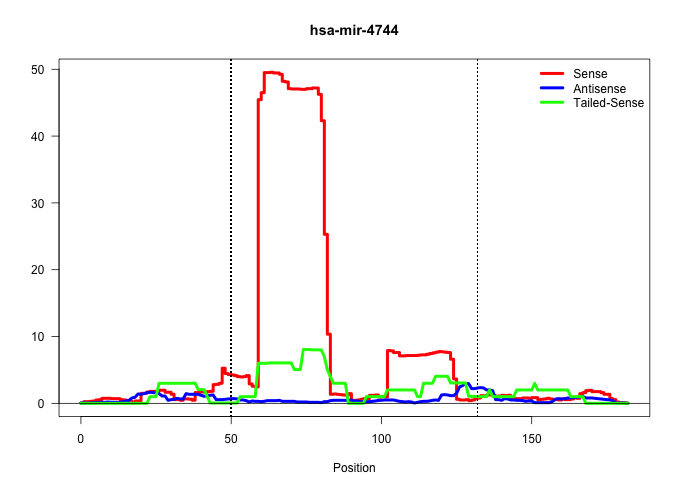 | TATCCATTTGGGTGCATAAGAGAAATGGGCTTGTAAGAGAAATGGGCTCTGTAATCACATCTAAAGACTAGACTTCGCTATGACCAGGCCATAGTAAACATCATAGTATGTCTAGTCTTTAGGTTTGATTACAGAACATTATAAGAGCATCCCTTATACTTGCATGTCATTTTAATGTCAGT ..................................................(((((((.(((((((((((((((...(((((((....((....)).....)))))))..))))))))))))))).))))))).................................................. ..................................................51...............................................................................132................................................ | Size | Perfect hit | Total Norm | Perfect Norm | SRR037936(GSM510474) 293cand1. (cell line) | SRR107297(GSM677704) 18-30nt fraction of small RNA. (cell line) | SRR094131(GSM651907) small RNA(18-35nt)small RNA deep sequencing o. (uterus) | SRR015358(GSM380323) Naïve B Cell (Naive39). (B cell) | SRR207115(GSM721077) XRN1&2 knockdown. (XRN1/XRN2 cell line) | SRR039613(GSM531976) Human Normal Liver Tissue Sample 3. (liver) | SRR039619(GSM531982) HBV(+) HCC Tissue Sample 1. (liver) | SRR039616(GSM531979) HBV(+) Distal Tissue Sample 1. (liver) | SRR039614(GSM531977) HBV-infected Liver Tissue. (liver) | SRR039625(GSM531988) HBV(-) HCV(-) HCC Tissue Sample. (liver) | SRR033724(GSM497069) L428 cell line (L428). (B cell) | SRR039617(GSM531980) HBV(+) Adjacent Tissue Sample 1. (liver) | TAX577739(Rovira) total RNA. (breast) | SRR207116(GSM721078) Nuclear RNA. (cell line) | SRR033723(GSM497068) L1236 cell line (L1236). (B cell) | DRR001488(DRX001042) Hela short nuclear cell fraction, LNA(+). (hela) | SRR330921(SRX091759) tissue: normal skindisease state: normal. (skin) | SRR033712(GSM497057) Burkitt Lymphoma (BL510). (B cell) | SRR039621(GSM531984) HBV(+) HCC Tissue Sample 2. (liver) | SRR033718(GSM497063) Multiple Myeloma (U266). (B cell) | SRR094129(GSM651905) small RNA(18-35nt)small RNA deep sequencing o. (uterus) | SRR037935(GSM510473) 293cand3. (cell line) | SRR039620(GSM531983) HBV(+) Adjacent Tissue Sample 2. (liver) | SRR139176(SRX050650) FLASHPage purified small RNA (~15-40nt) from . (kidney) | SRR207111(GSM721073) Whole cell RNA. (cell line) | SRR039190(GSM494809) PBMCs were isolated by ficoll gradient from t. (blood) | SRR033710(GSM497055) GCB DLBCL (GCB385). (B cell) | SRR060984(GSM569188) Human plasma cell [09-001]. (cell line) | SRR039192(GSM494811) K562 cell line is derived from a CML patient . (cell line) | SRR029128(GSM416757) H520. (cell line) | SRR060982(GSM569186) Human centrocyte [09-001]. (cell line) | SRR039612(GSM531975) Human Normal Liver Tissue Sample 2. (liver) | SRR039636(GSM518473) THP1_cyto_sRNAs. (cell line) | SRR094132(GSM651908) small RNA(18-35nt)small RNA deep sequencing o. (uterus) | SRR330917(SRX091755) tissue: normal skindisease state: normal. (skin) | SRR207114(GSM721076) IP against AGO 1 & 2, RRP40 knockdown. (ago1/2 RRP40 cell line) | SRR033732(GSM497077) bjab cell line (bjab103). (B cell) | SRR038857(GSM458540) D20. (cell line) | SRR189786 | SRR330858(SRX091696) tissue: skin psoriatic involveddisease state:. (skin) | SRR326282(GSM769512) Dicer mRNA was knocked down using siDicer, to. (cell line) | SRR038856(GSM458539) D11. (cell line) | SRR189781(GSM714641) cell line: HEK293clip variant: PAR-CLIPenzyma. (cell line) | SRR330874(SRX091712) tissue: skin psoriatic involveddisease state:. (skin) | SRR326280(GSM769510) total cell content of unperturbed cells was s. (cell line) |
