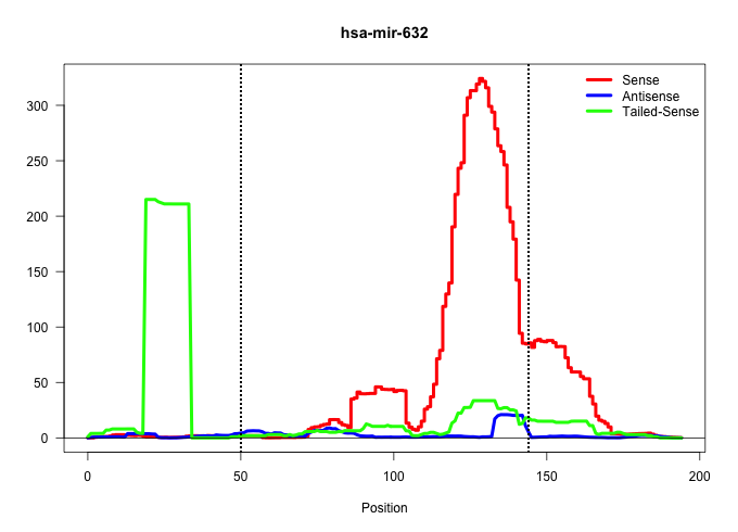 | ACCCACTCAGGGCGGAGGTCTGCGTCATGTGACCCTCCCCTTCTTGGCTCCGCCTCCTACCGCAGTGCTTGACGGGAGGCGGAGCGGGGAACGAGGCCGTCGGCCATTTTGTGTCTGCTTCCTGTGGGACGTGGTGGTAGCCGTTGGGTTGGGAAAGTGAGGGATTTTTGGCCTCGTTTCTCCTGCTTCTTTTC ...................................................((((((..((((((((...))))...)))).))))))(((....)))..((((....))))................................................... .................................................................................82............................................................144................................................ | Size | Perfect hit | Total Norm | Perfect Norm | SRR207116(GSM721078) Nuclear RNA. (cell line) | SRR033729(GSM497074) splenic MZL (Splenic414). (B cell) | SRR207115(GSM721077) XRN1&2 knockdown. (XRN1/XRN2 cell line) | SRR060168(GSM565978) 5-8F_nucleus. (cell line) | SRR033727(GSM497072) HIV-positive DL (HIV412). (B cell) | SRR207110(GSM721072) Nuclear RNA. (cell line) | SRR033728(GSM497073) MALT (MALT413). (B cell) | DRR001488(DRX001042) Hela short nuclear cell fraction, LNA(+). (hela) | SRR039635(GSM518472) THP1_nuc_sRNAs. (cell line) | SRR387909(GSM843861) specific-host: Homo sapienshost cell line: Su. (cell line) | DRR001489(DRX001043) Hela short nuclear cell fraction, control. (hela) | SRR039619(GSM531982) HBV(+) HCC Tissue Sample 1. (liver) | SRR033712(GSM497057) Burkitt Lymphoma (BL510). (B cell) | SRR039615(GSM531978) Severe Chronic Hepatitis B Liver Tissue. (liver) | SRR189780(GSM714640) cell line: HEK293clip variant: PAR-CLIPenzyma. (cell line) | SRR330865(SRX091703) tissue: skin psoriatic involveddisease state:. (skin) | SRR033719(GSM497064) 6hr Activated B cell line (ABC158). (B cell) | SRR207111(GSM721073) Whole cell RNA. (cell line) | SRR033726(GSM497071) Mututated CLL (CLLM633). (B cell) | TAX577739(Rovira) total RNA. (breast) | TAX577742(Rovira) total RNA. (breast) | SRR033720(GSM497065) EBV activated B cell line (EBV159). (B cell) | SRR038860(GSM458543) MM426. (cell line) | SRR330894(SRX091732) tissue: skin psoriatic uninvolveddisease stat. (skin) | SRR207112(GSM721074) RRP40 knockdown. (RRP40 cell line) | SRR330867(SRX091705) tissue: skin psoriatic involveddisease state:. (skin) | SRR040028(GSM532913) G026N. (cervix) | TAX577740(Rovira) total RNA. (breast) | GSM339994(GSM339994) hues6. (cell line) | SRR330874(SRX091712) tissue: skin psoriatic involveddisease state:. (skin) | SRR040012(GSM532897) G648N. (cervix) | SRR330893(SRX091731) tissue: skin psoriatic uninvolveddisease stat. (skin) | SRR038861(GSM458544) MM466. (cell line) | SRR342896(SRX096792) small RNA seq of Right atrial tissue. (heart) | SRR060981(GSM569185) Human centroblast [09-001]. (cell line) | SRR033722(GSM497067) KMS12 cell line (KMS12). (B cell) | SRR330922(SRX091760) tissue: normal skindisease state: normal. (skin) | SRR330923(SRX091761) tissue: normal skindisease state: normal. (skin) | SRR033725(GSM497070) Unmutated CLL (CLLU626). (B cell) | SRR094132(GSM651908) small RNA(18-35nt)small RNA deep sequencing o. (uterus) | SRR033713(GSM497058) Burkitt Lymphoma (BL115). (B cell) | SRR038863(GSM458546) MM603. (cell line) | SRR330916(SRX091754) tissue: normal skindisease state: normal. (skin) | TAX577745(Rovira) total RNA. (breast) | SRR326280(GSM769510) total cell content of unperturbed cells was s. (cell line) | TAX577744(Rovira) total RNA. (breast) | SRR326282(GSM769512) Dicer mRNA was knocked down using siDicer, to. (cell line) | SRR040040(GSM532925) G612N. (cervix) | SRR033718(GSM497063) Multiple Myeloma (U266). (B cell) | SRR029124(GSM416753) HeLa. (hela) | SRR060983(GSM569187) Human pre-germinal center B cell [09-001]. (cell line) | SRR330908(SRX091746) tissue: normal skindisease state: normal. (skin) | SRR107297(GSM677704) 18-30nt fraction of small RNA. (cell line) | SRR040010(GSM532895) G529N. (cervix) | SRR330913(SRX091751) tissue: normal skindisease state: normal. (skin) | SRR330892(SRX091730) tissue: skin psoriatic uninvolveddisease stat. (skin) | SRR444058(SRX128906) Sample 16cDNABarcode: AF-PP-335: ACG CTC TTC . (skin) | GSM339995(GSM339995) hues6NP. (cell line) | SRR330898(SRX091736) tissue: skin psoriatic uninvolveddisease stat. (skin) | SRR033710(GSM497055) GCB DLBCL (GCB385). (B cell) | SRR189782 | SRR330887(SRX091725) tissue: skin psoriatic uninvolveddisease stat. (skin) | SRR189779(GSM714639) cell line: HEK293clip variant: PAR-CLIPenzyma. (cell line) | SRR330896(SRX091734) tissue: skin psoriatic uninvolveddisease stat. (skin) | SRR038859(GSM458542) MM386. (cell line) | SRR444057(SRX128905) Sample 15cDNABarcode: AF-PP-334: ACG CTC TTC . (skin) | SRR330901(SRX091739) tissue: skin psoriatic uninvolveddisease stat. (skin) | SRR330868(SRX091706) tissue: skin psoriatic involveddisease state:. (skin) | SRR342897(SRX096793) small RNA seq of Left atrial tissue. (heart) | SRR342898(SRX096794) small RNA seq of Right atrial tissue. (heart) | GSM450597(GSM450597) miRNA sequencing raw reads from post-mortem s. (brain) | SRR015361(GSM380326) Memory B cells (MM55). (B cell) | SRR039624(GSM531987) HBV(-) HCV(-) Adjacent Tissue Sample. (liver) | SRR033711(GSM497056) GCB DLBCL (GCB110). (B cell) | TAX577743(Rovira) total RNA. (breast) | SRR330864(SRX091702) tissue: skin psoriatic involveddisease state:. (skin) | SRR330878(SRX091716) tissue: skin psoriatic involveddisease state:. (skin) | SRR342894(SRX096790) small RNA seq of Right atrial tissue. (heart) | SRR326279(GSM769509) cytoplasmic fraction was isolated using PARIS. (cell line) | GSM359208(GSM359208) hepg2_bindASP_hl_2. (cell line) | SRR330889(SRX091727) tissue: skin psoriatic uninvolveddisease stat. (skin) | SRR191412(GSM715522) 24genomic small RNA (size selected RNA from t. (breast) | SRR039616(GSM531979) HBV(+) Distal Tissue Sample 1. (liver) | SRR040018(GSM532903) G701N. (cervix) | SRR330905(SRX091743) tissue: normal skindisease state: normal. (skin) | SRR330912(SRX091750) tissue: normal skindisease state: normal. (skin) | TAX577580(Rovira) total RNA. (breast) | SRR015446(SRR015446) smallRNAs high-t