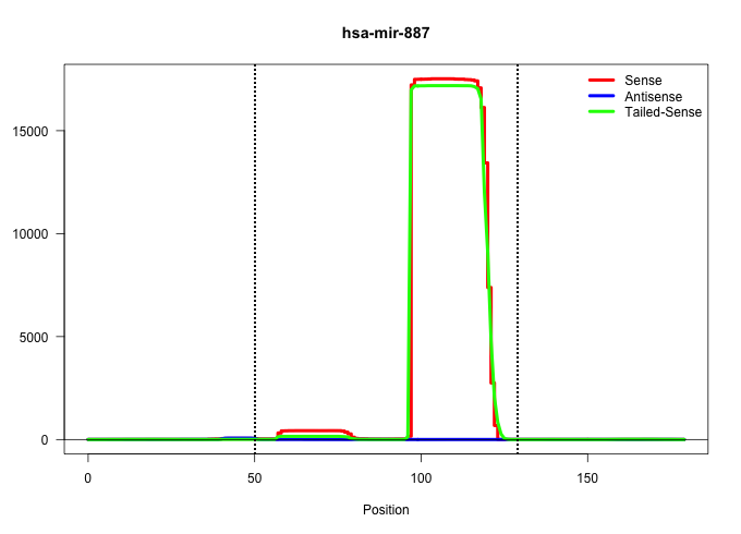 | CCAGTGGCGTTGGAGGAATGAGGTAAAAGATGCCGTCAGAGAGCCCCGGGGTGCAGATCCTTGGGAGCCCTGTTAGACTCTGGATTTTACACTTGGAGTGAACGGGCGCCATCCCGAGGCTTTGCACAGGGGCAAGCTTCGAGTTCCGTTTTCCAAGACACCTCGGGCAGATAGGGGTG ..................................................(((((.((((((((((((((((..(((((((.........))))))).)))))).))..)))))))).)))))...................................................... ....................................................53..........................................................................129................................................ | Size | Perfect hit | Total Norm | Perfect Norm | SRR342895(SRX096791) small RNA seq of Left atrial tissue. (heart) | SRR342896(SRX096792) small RNA seq of Right atrial tissue. (heart) | SRR139166(SRX050631) FLASHPage purified small RNA (~15-40nt) from . (heart) | SRR139164(SRX050631) FLASHPage purified small RNA (~15-40nt) from . (heart) | SRR342898(SRX096794) small RNA seq of Right atrial tissue. (heart) | SRR038860(GSM458543) MM426. (cell line) | SRR342897(SRX096793) small RNA seq of Left atrial tissue. (heart) | SRR342894(SRX096790) small RNA seq of Right atrial tissue. (heart) | SRR314796(SRX084354) Total RNA, fractionated (15-30nt). (cell line) | SRR107296(GSM677703) 18-30nt fraction of small RNA. (cell line) | SRR139192(SRX050634) FLASHPage purified small RNA (~15-40nt) from . (ovary) | SRR342900(SRX096796) small RNA seq of Right atrial tissue. (heart) | SRR139191(SRX050634) FLASHPage purified small RNA (~15-40nt) from . (ovary) | SRR139165(SRX050631) FLASHPage purified small RNA (~15-40nt) from . (heart) | SRR038857(GSM458540) D20. (cell line) | SRR139194(SRX050634) FLASHPage purified small RNA (~15-40nt) from . (ovary) | SRR139167(SRX050631) FLASHPage purified small RNA (~15-40nt) from . (heart) | SRR139193(SRX050634) FLASHPage purified small RNA (~15-40nt) from . (ovary) | SRR342901(SRX096797) small RNA seq of Left atrial tissue. (heart) | SRR342899(SRX096795) small RNA seq of Left atrial tissue. (heart) | SRR139208(SRX050635) FLASHPage purified small RNA (~15-40nt) from . (testes) | SRR139211(SRX050635) FLASHPage purified small RNA (~15-40nt) from . (testes) | SRR139209(SRX050635) FLASHPage purified small RNA (~15-40nt) from . (testes) | SRR139210(SRX050635) FLASHPage purified small RNA (~15-40nt) from . (testes) | SRR039625(GSM531988) HBV(-) HCV(-) HCC Tissue Sample. (liver) | SRR139186(SRX050632) FLASHPage purified small RNA (~15-40nt) from . (lung) | SRR139184(SRX050632) FLASHPage purified small RNA (~15-40nt) from . (lung) | SRR139205(SRX050636) FLASHPage purified small RNA (~15-40nt) from . (spleen) | SRR139203(SRX050636) FLASHPage purified small RNA (~15-40nt) from . (spleen) | SRR139204(SRX050636) FLASHPage purified small RNA (~15-40nt) from . (spleen) | SRR139202(SRX050636) FLASHPage purified small RNA (~15-40nt) from . (spleen) | SRR139214(SRX050633) FLASHPage purified small RNA (~15-40nt) from . (thymus) | TAX577738(Rovira) total RNA. (breast) | SRR139216(SRX050633) FLASHPage purified small RNA (~15-40nt) from . (thymus) | SRR139171(SRX050637) FLASHPage purified small RNA (~15-40nt) from . (kidney) | SRR139185(SRX050632) FLASHPage purified small RNA (~15-40nt) from . (lung) | SRR139183(SRX050632) FLASHPage purified small RNA (~15-40nt) from . (lung) | SRR038859(GSM458542) MM386. (cell line) | SRR038861(GSM458544) MM466. (cell line) | TAX577744(Rovira) total RNA. (breast) | TAX577579(Rovira) total RNA. (breast) | SRR039619(GSM531982) HBV(+) HCC Tissue Sample 1. (liver) | SRR139172(SRX050637) FLASHPage purified small RNA (~15-40nt) from . (kidney) | SRR139215(SRX050633) FLASHPage purified small RNA (~15-40nt) from . (thymus) | SRR139173(SRX050637) FLASHPage purified small RNA (~15-40nt) from . (kidney) | SRR191590(GSM715700) 48genomic small RNA (size selected RNA from t. (breast) | TAX577741(Rovira) total RNA. (breast) | SRR139174(SRX050637) FLASHPage purified small RNA (~15-40nt) from . (kidney) | SRR139188(SRX050640) FLASHPage purified small RNA (~15-40nt) from . (lung) | TAX577739(Rovira) total RNA. (breast) | SRR330861(SRX091699) tissue: skin psoriatic involveddisease state:. (skin) | SRR139217(SRX050633) FLASHPage purified small RNA (~15-40nt) from . (thymus) | SRR330859(SRX091697) tissue: skin psoriatic involveddisease state:. (skin) | SRR029126(GSM416755) 143B. (cell line) | SRR330860(SRX091698) tissue: skin psoriatic involveddisease state:. (skin) | TAX577743(Rovira) total RNA. (breast) | SRR191552(GSM715662) 42genomic small RNA (size selected RNA from t. (breast) | SRR139200(SRX050639) FLASHPage purified small RNA (~15-40nt) from . (placenta) | TAX577745(Rovira) total RNA. (breast) | SRR139201(SRX050639) FLASHPage purified small RNA (~15-40nt) from . (placenta) | SRR029128(GSM416757) H520. (cell line) | TAX577580(Rovira) total RNA. (breast) | SRR039622(GSM531985) HCV(+) Adjacent Tissue Sample. (liver) | TAX577590(Rovira) total RNA. (breast) | SRR094129(GSM651905) small RNA(18-35nt)small RNA deep sequencing o. (uterus) | SRR191393(GSM715503) 22genomic small RNA (size selected RNA from t. (breast) | SRR363674(GSM830251) cell type: human foreskin fibroblasts (HFF)tr. (fibroblast) | SRR033722(GSM497067) KMS12 cell line (KMS12). (B cell) | SRR330884(SRX091722) tissue: skin psoriatic uninvolveddisease stat. (skin) | SRR039615(GSM531978) Severe Chronic Hepatitis B Liver Tissue. (liver) | SRR038854(GSM458537) MM653. (cell line) | SRR330870(SRX091708) tissue: skin psoriatic involveddisease state:. (skin) | SRR191548(GSM715658) 101genomic small RNA (size selected RNA from . (breast) | SRR330877(SRX091715) tissue: skin psoriatic involveddisease state:. (skin) | SRR029132(GSM416761) MB-MDA231. (cell line) | TAX577746(Rovira) total RNA. (breast) | SRR330921(SRX091759) tissue: normal skindisease state: normal. (skin) | SRR330923(SRX091761) tissue: normal skindisease state: normal. (skin) | SRR330862(SRX091700) tissue: skin psoriatic involveddisease state:. (skin) | SRR330895(SRX091733) tissue: skin psoriatic uninvolveddisease stat. (skin) | SR