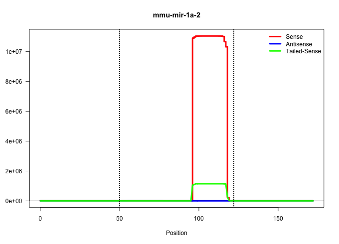 | GTGGGCTGCTTCATGTTTTCACAGCTATCGGCCGGCGCAGGAGTGCCTACTCAGAGCACATACTTCTTTATGTACCCATATGAACATTCAGTGCTATGGAATGTAAAGAAGTATGTATTTTGGGTAGGTAATGTCCGCCAAGAAGAAGCTAAAGGAAACTTTCCAGGAGGAT ..................................................((((.((((((((((((((((..(((((...((.....))..))))).)))))))))))))))).))))................................................... ....................................................53...................................................................122................................................ | Size | Perfect hit | Total Norm | Perfect Norm | SRR042483(GSM539875) mouse muscle tissue [09-002]. (muscle) | SRR042476(GSM539868) mouse heart tissue [09-002]. (heart) | SRR039153(GSM471930) HL1_siSrf1_smallRNAseq. (muscle) | SRR039152(GSM471929) HL1_siNon_smallRNAseq. (muscle) | SRR039154(GSM471931) HL1_siSrf2_smallRNAseq. (muscle) | SRR095855BC3(SRX039178) sequencing of miRNA from wild type and diseas. (heart) | SRR095855BC8(SRX039178) sequencing of miRNA from wild type and diseas. (heart) | SRR391852(GSM852147) gender: femalegenotype/variation: ADAR2-/-tis. (embryo) | SRR095855BC7(SRX039178) sequencing of miRNA from wild type and diseas. (heart) | SRR095855BC1(SRX039178) sequencing of miRNA from wild type and diseas. (heart) | GSM510456(GSM510456) newborn_rep12. (total RNA) | SRR095855BC5(SRX039178) sequencing of miRNA from wild type and diseas. (heart) | SRR095855BC2(SRX039178) sequencing of miRNA from wild type and diseas. (heart) | SRR095855BC6(SRX039178) sequencing of miRNA from wild type and diseas. (heart) | SRR391853(GSM852148) gender: femalegenotype/variation: ADAR2-/-/AD. (embryo) | SRR391851(GSM852146) gender: femalegenotype/variation: wild typeti. (embryo) | SRR391846(GSM852141) gender: femalegenotype/variation: ADAR2-/-tis. (embryo) | SRR391847(GSM852142) gender: femalegenotype/variation: ADAR2-/-/AD. (embryo) | SRR032477(GSM485235) sRNA_activation_deep_sequencing. (uterus) | SRR042478(GSM539870) mouse lung tissue [09-002]. (lung) | SRR391845(GSM852140) gender: femalegenotype/variation: wild typeti. (embryo) | SRR037914(GSM510451) newborn_rep7. (total RNA) | SRR032476(GSM485234) sRNA_delayed_deep_sequencing. (uterus) | SRR037912(GSM510449) newborn_rep5. (total RNA) | SRR065055(SRR065055) Tissue-specific Regulation of Mouse MicroRNA . (jejunum) | SRR345202(SRX097263) source: size fractionated RNA from mouse hipp. (brain) | GSM510453(GSM510453) newborn_rep9. (total RNA) | GSM510452(GSM510452) newborn_rep8. (total RNA) | SRR042443(GSM539835) mouse pro B cells [09-002]. (b cell) | GSM510454(GSM510454) newborn_rep10. (total RNA) | GSM510455(GSM510455) newborn_rep11. (total RNA) | SRR065056(SRR065056) Tissue-specific Regulation of Mouse MicroRNA . (jejunum) | GSM510450(GSM510450) newborn_rep6. (total RNA) | SRR042486(GSM539878) mouse ovaries [09-002]. (ovary) | SRR345204(SRX097265) source: size fractionated RNA from mouse hipp. (brain) | SRR095855BC4(SRX039178) sequencing of miRNA from wild type and diseas. (heart) | SRR042482(GSM539874) mouse skin tissue [09-002]. (skin) | SRR345205(SRX097266) source: size fractionated RNA from mouse hipp. (brain) | SRR345207(SRX097268) source: size fractionated RNA from mouse hipp. (brain) | SRR095855BC10(SRX039178) sequencing of miRNA from wild type and diseas. (heart) | SRR391848(GSM852143) gender: femalegenotype/variation: wild typeti. (embryo) | SRR042477(GSM539869) mouse brain tissue [09-002]. (brain) | mjTestesKO8() Testes Data. (Zcchc11 testes) | SRR345203(SRX097264) source: size fractionated RNA from mouse hipp. (brain) | SRR306542(GSM750585) 19-24nt. (ago2 brain) | SRR391849(GSM852144) gender: femalegenotype/variation: ADAR2-/-tis. (embryo) | SRR095855BC9(SRX039178) sequencing of miRNA from wild type and diseas. (heart) | SRR306541(GSM750584) 19-24nt. (ago2 brain) | mjTestesWT1() Testes Data. (testes) | SRR345201(SRX097262) source: size fractionated RNA from mouse hipp. (brain) | SRR042484(GSM539876) mouse salivary gland tissue [09-002]. (gland) | SRR037909(GSM510446) newborn_rep2. (total RNA) | SRR037910(GSM510447) newborn_rep3. (total RNA) | SRR095853(SRX039174) sequencing of miRNA from wild type and diseas. (heart) | SRR345197(SRX097258) source: size fractionated RNA from mouse hipp. (brain) | SRR345198(SRX097259) source: size fractionated RNA from mouse hipp. (brain) | SRR391850(GSM852145) gender: femalegenotype/variation: ADAR2-/-/AD. (embryo) | SRR065052(SRR065052) Tissue-specific Regulation of Mouse MicroRNA . (jejunum) | SRR206941(GSM723282) other. (brain) | SRR345206(SRX097267) source: size fractionated RNA from mouse hipp. (brain) | GSM640579(GSM640579) small RNA in the liver with paternal Low pro. (liver) | SRR065053(SRR065053) Tissue-specific Regulation of Mouse MicroRNA . (jejunum) | mjTestesKO7() Testes Data. (Zcchc11 testes) | SRR206942(GSM723283) other. (brain) | SRR345199(SRX097260) source: size fractionated RNA from mouse hipp. (brain) | mjTestesKO6() Testes Data. (Zcchc11 testes) | SRR306535(GSM750578) 19-24nt. (ago2 brain) | SRR077864(GSM637801) 18-30 nt small RNAs. (liver) | SRR037921(GSM510459) e12p5_rep3. (embryo) | mjTestesWT2() Testes Data. (testes) | mjTestesWT4() Testes Data. (testes) | SRR042481(GSM539873) mouse pancreatic tissue [09-002]. (pancreas) | SRR065054(SRR065054) Tissue-specific Regulation of Mouse MicroRNA . (jejunum) | SRR042480(GSM539872) mouse kidney tissue [09-002]. (kidney) | SRR037911(GSM510448) newborn_rep4. (total RNA) | mjTestesKO5() Testes Data. (Zcchc11 testes) | SRR037920(GSM510458) e12p5_rep2. (embryo) | SRR306537(GSM750580) 19-24nt. (ago2 brain) | SRR306536(GSM750579) 19-24nt. (ago2 brain) | GSM510444(GSM510444) brain_rep5. (brain) | SRR306540(GSM750583) 19-24nt. (ago2 brain) | SRR206940(GSM723281) other. (brain) | SRR402760(SRX117943) source: ES E14 male cells. (ESC) | SRR279907(GSM689057) cell type: mouse embryonic stem cellcell line. (ESC) | SRR345200(SRX097261) source: size fractionated RNA from mouse hipp. (brain) | SRR345196(SRX097257) source: size fractionated RNA