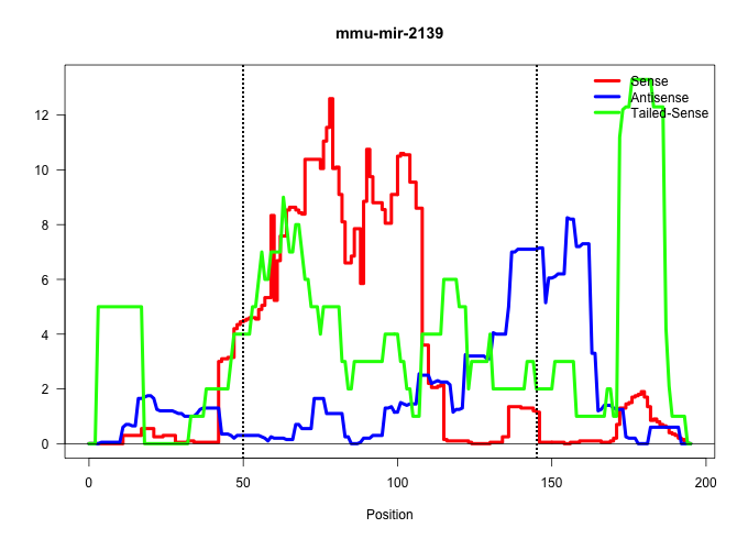 | AATCGGATTCTTGGCATTCCTCTGTCCCTGGCCAGCATGCTCCCCACTGGAGAAGGAGCAGAGGGCCAGGACTGGCATTTGGACATGCAGCTGCCCAGCAAGGTGGTGCTGTCCGCAGCTGCGCTGCTCCTGGTAACTGCGGCTTACAAACTCTACAAGTCCAGACCTGCCCCAGTCGGGCAGGCAGGGAGAAAC ......................................................((((..((((....)))).)))).(((.(((.(((((......))))))))))).................................................. ......................................................55.......................................................112................................................................................. | Size | Perfect hit | Total Norm | Perfect Norm | mjLiverKO2() Liver Data. (Zcchc11 liver) | mjLiverKO1() Liver Data. (Zcchc11 liver) | SRR345198(SRX097259) source: size fractionated RNA from mouse hipp. (brain) | mjLiverKO3() Liver Data. (Zcchc11 liver) | SRR042484(GSM539876) mouse salivary gland tissue [09-002]. (gland) | SRR069809(GSM610965) small RNA sequencing; sample 1. (testes) | SRR029042(GSM433294) 18.5dpc_hetero_tdrd1-KO. (tdrd1 testes) | SRR248524(GSM733812) cell type: Thy1+ spermatogonial stem cellstra. (testes) | GSM509278(GSM509278) small RNA cloning by length. (piwi testes) | mjTestesWT3() Testes Data. (testes) | SRR248526(GSM733814) cell type: Thy1- spermatogonial stem cellstra. (testes) | SRR042481(GSM539873) mouse pancreatic tissue [09-002]. (pancreas) | SRR345200(SRX097261) source: size fractionated RNA from mouse hipp. (brain) | SRR037937(GSM510475) 293cand2. (cell line) | SRR065059(SRR065059) Tissue-specific Regulation of Mouse MicroRNA . (pancreas) | GSM509280(GSM509280) small RNA cloning by length. (testes) | SRR248523(GSM733811) cell type: Thy1+ spermatogonial stem cellstra. (testes) | GSM640580(GSM640580) small RNA in the liver with paternal Low pro. (liver) | SRR279904(GSM689054) cell type: mouse embryonic stem cellcell line. (ESC) | SRR023851(GSM307160) ZHBT-c412hsmallrna_rep1. (cell line) | SRR059765(GSM562827) DN3_control. (thymus) | SRR038742(GSM527277) small RNA-Seq. (dgcr8 brain) | SRR014229(GSM319953) 10 dpp MILI. (mili testes) | GSM640579(GSM640579) small RNA in the liver with paternal Low pro. (liver) | SRR279906(GSM689056) cell type: mouse embryonic stem cellcell line. (ESC) | SRR065048(SRR065048) Tissue-specific Regulation of Mouse MicroRNA . (liver) | SRR042487(GSM539879) mouse BclXL B activated with LPS/IL4 [BalbC] [09-002]. (spleen) | SRR065045(SRR065045) Tissue-specific Regulation of Mouse MicroRNA . (liver) | SRR037897(GSM510433) ovary_rep2. (ovary) | SRR206942(GSM723283) other. (brain) | GSM640581(GSM640581) small RNA in the liver with paternal control. (liver) | SRR042480(GSM539872) mouse kidney tissue [09-002]. (kidney) | mjLiverWT1() Liver Data. (liver) | SRR391848(GSM852143) gender: femalegenotype/variation: wild typeti. (embryo) | SRR248525(GSM733813) cell type: Thy1- spermatogonial stem cellstra. (testes) | SRR206941(GSM723282) other. (brain) |