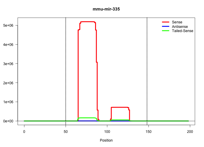 | TTAACCTCATTTTATAGCTGAAGAAACCGAGAAACAGATTGGAAAAGATTTCTTTTGGGCGGGGGTCAAGAGCAATAACGAAAAATGTTTGTTTTTCGTAAACCGTTTTTCATTATTGCTCCTGACCCCCTCTCATGGGTTATAGCCAGTCGAGTAAGTATGCATTTTTTTTTTTATGTTGGCTTGTTGTTCTTTCCC ............................................................((((((((.(((((((((.((((((((...((((.....)))))))))))).))))))))).)))))))).................................................................... ............................................................61....................................................................131................................................................. | Size | Perfect hit | Total Norm | Perfect Norm | SRR391845(GSM852140) gender: femalegenotype/variation: wild typeti. (embryo) | SRR391846(GSM852141) gender: femalegenotype/variation: ADAR2-/-tis. (embryo) | SRR391847(GSM852142) gender: femalegenotype/variation: ADAR2-/-/AD. (embryo) | SRR391852(GSM852147) gender: femalegenotype/variation: ADAR2-/-tis. (embryo) | SRR391851(GSM852146) gender: femalegenotype/variation: wild typeti. (embryo) | SRR391853(GSM852148) gender: femalegenotype/variation: ADAR2-/-/AD. (embryo) | SRR391848(GSM852143) gender: femalegenotype/variation: wild typeti. (embryo) | SRR279904(GSM689054) cell type: mouse embryonic stem cellcell line. (ESC) | SRR391849(GSM852144) gender: femalegenotype/variation: ADAR2-/-tis. (embryo) | SRR391850(GSM852145) gender: femalegenotype/variation: ADAR2-/-/AD. (embryo) | SRR279903(GSM689053) cell type: mouse embryonic stem cellcell line. (ESC) | SRR402762(SRX117945) source: ES E14 male cells. (ESC) | SRR306540(GSM750583) 19-24nt. (ago2 brain) | GSM510456(GSM510456) newborn_rep12. (total RNA) | SRR306534(GSM750577) 19-24nt. (ago2 brain) | SRR037921(GSM510459) e12p5_rep3. (embryo) | SRR306532(GSM750575) 19-24nt. (ago2 brain) | SRR029043(GSM433295) 18.5dpc_homo_tdrd1-KO. (tdrd1 testes) | SRR037920(GSM510458) e12p5_rep2. (embryo) | SRR306533(GSM750576) 19-24nt. (ago2 brain) | SRR306535(GSM750578) 19-24nt. (ago2 brain) | SRR037914(GSM510451) newborn_rep7. (total RNA) | SRR306537(GSM750580) 19-24nt. (ago2 brain) | SRR402766(SRX117949) source: ES PGK female cells. (ESC) | SRR037912(GSM510449) newborn_rep5. (total RNA) | SRR306539(GSM750582) 19-24nt. (ago2 brain) | SRR306536(GSM750579) 19-24nt. (ago2 brain) | SRR029042(GSM433294) 18.5dpc_hetero_tdrd1-KO. (tdrd1 testes) | GSM510453(GSM510453) newborn_rep9. (total RNA) | GSM510444(GSM510444) brain_rep5. (brain) | SRR402760(SRX117943) source: ES E14 male cells. (ESC) | GSM510452(GSM510452) newborn_rep8. (total RNA) | GSM510454(GSM510454) newborn_rep10. (total RNA) | SRR248527(GSM733815) cell type: spermatogonial stem cell enriched . (testes) | GSM510455(GSM510455) newborn_rep11. (total RNA) | SRR279906(GSM689056) cell type: mouse embryonic stem cellcell line. (ESC) | SRR306542(GSM750585) 19-24nt. (ago2 brain) | SRR037922(GSM510460) e12p5_rep4. (embryo) | GSM510450(GSM510450) newborn_rep6. (total RNA) | SRR037924(GSM510462) e9p5_rep2. (embryo) | SRR306541(GSM750584) 19-24nt. (ago2 brain) | SRR037925(GSM510463) e9p5_rep3. (embryo) | SRR402761(SRX117944) source: ES E14 male cells. (ESC) | SRR306544(GSM750587) 19-24nt. (ago2 brain) | SRR206940(GSM723281) other. (brain) | SRR279905(GSM689055) cell type: mouse embryonic stem cellcell line. (ESC) | SRR306538(GSM750581) 19-24nt. (ago2 brain) | SRR037929(GSM510467) e7p5_rep3. (embryo) | SRR206939(GSM723280) other. (brain) | SRR037928(GSM510466) e7p5_rep2. (embryo) | SRR206942(GSM723283) other. (brain) | SRR206941(GSM723282) other. (brain) | SRR040489(GSM533912) E18.5 Ago2 catalytically inactive LIVER small RNA. (liver) | SRR039186(GSM485326) shLuc.1309;ROSA-rtTA (+dox). (fibroblast) | SRR040488(GSM533911) E18.5 wild type LIVER small RNA. (liver) | SRR039185(GSM485325) shLuc.1309;ROSA-rtTA (-dox). (fibroblast) | SRR306543(GSM750586) 19-24nt. (ago2 brain) | SRR039184(GSM485324) shLuc.1309 (+dox). (fibroblast) | mjLiverKO1() Liver Data. (Zcchc11 liver) | SRR279907(GSM689057) cell type: mouse embryonic stem cellcell line. (ESC) | SRR037919(GSM510457) e12p5_rep1. (embryo) | SRR037906(GSM510442) brain_rep3. (brain) | SRR037909(GSM510446) newborn_rep2. (total RNA) | SRR038744(GSM527279) small RNA-Seq. (brain) | SRR037905(GSM510441) brain_rep2. (brain) | mjLiverWT3() Liver Data. (liver) | SRR037910(GSM510447) newborn_rep3. (total RNA) | SRR014229(GSM319953) 10 dpp MILI. (mili testes) | SRR060845(GSM561991) total RNA. (brain) | GSM314552(GSM314552) ESC wild type (Illumina). (ESC) | SRR039183(GSM485323) shLuc.1309 (-dox). (fibroblast) | SRR023851(GSM307160) ZHBT-c412hsmallrna_rep1. (cell line) | SRR023852(GSM307161) ZHBT-c424hsmallrna_rep1. (cell line) | SRR095853(SRX039174) sequencing of miRNA from wild type and diseas. (heart) | GSM640579(GSM640579) small RNA in the liver with paternal Low pro. (liver) | GSM640580(GSM640580) small RNA in the liver with paternal Low pro. (liver) | SRR248526(GSM733814) cell type: Thy1- spermatogonial stem cellstra. (testes) | SRR023850(GSM307159) ZHBT-c40hsmallrna_rep1. (cell line) | GSM640581(GSM640581) small RNA in the liver with paternal control. (liver) | GSM640578(GSM640578) small RNA in the liver with paternal control. (liver) | mjLiverWT1() Liver Data. (liver) | SRR038743(GSM527278) small RNA-Seq. (dicer brain) | SRR037923(GSM510461) e9p5_rep1. (embryo) | SRR037927(GSM510465) e7p5_rep1. (embryo) | SRR306527(GSM750570) 19-24nt. (ago2 brain) | SRR037926(GSM510464) e9p5_rep4. (embryo) | SRR039610(GSM527274) small RNA-Seq. (brain) | SRR038742(GSM527277) small RNA-Seq. (dgcr8 brain) | SRR248525(GSM733813) cell type: Thy1- spermatogonial stem cellstra. (testes) | SRR014234(GSM319958) Ovary total. (ovary) | SRR095855BC1(SRX039178) sequencing of miRNA from wild type and diseas. (heart) | SRR037911(GSM510448) newborn_rep4. (total RNA) | SRR037930(GSM510468) e7p5_rep4. (embryo) | SRR038741(GSM527276) small RNA-Seq. (brain) | mjTestesWT1() Testes Data. (testes) | SRR014230(GSM319954) 10 dpp Dnmt3L-KO MILI. (mili testes) | GSM361407(GSM361407) CG