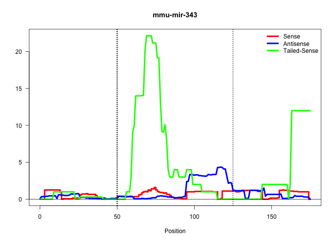 | CCATCTTTCCACCCGTCGTTGTGTCTGTCTTTGTGGCACCTCTGTGTACCTGGGATAGAGTGGGTGTGGCGGGGGTAGCAGAGCCCAGGGCAACCTCTCCCTTCATGTGCCCAGATCCTGCATGCCAACGTGGTGGTTTACAGCTACCACTACCTCCTGGACCCCAAGATCGCAG ...................................................(((((....(((((((((.(((((...........(((....)))))))).))))..))))).)))))........................................................ ..................................................51........................................................................125................................................ | Size | Perfect hit | Total Norm | Perfect Norm | SRR037936(GSM510474) 293cand1. (cell line) | mjTestesWT2() Testes Data. (testes) | GSM475280(GSM475280) Mili-IP. (mili testes) | SRR248523(GSM733811) cell type: Thy1+ spermatogonial stem cellstra. (testes) | Ago2IP504(Rui) Quantitative functions of Argonaute proteins . (ago2 skin) | SRR039153(GSM471930) HL1_siSrf1_smallRNAseq. (muscle) | Ago3IP812(Rui) Quantitative functions of Argonaute proteins . (ago3 skin) | SRR391853(GSM852148) gender: femalegenotype/variation: ADAR2-/-/AD. (embryo) | SRR345200(SRX097261) source: size fractionated RNA from mouse hipp. (brain) |
