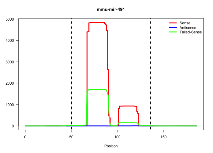 | AAAGCCTCGTGGATGCTTCAGCAGTTGCCCTCGGAGATGCCTGCTGTGGGAATTGACTTAGCTGGGAAGTGGGGAACCCTTCCATGAGGAGTAGAACACTCCTTATGCAAGATTCCCTTCTACCTGACTGAGTTGAAGTCATATCCTGCTCTGTGCAACACAGGCCCTTCCCCTGAAGAAGAAGAT ...................................................(((.((.((((((..(((.((((((((((.....)))))))))).))).)))))).)).))).................................................... ..............................................................63..............................................................127......................................................... | Size | Perfect hit | Total Norm | Perfect Norm | SRR037937(GSM510475) 293cand2. (cell line) | SRR037944(GSM510482) 293DcrTN_cand5. (cell line) | SRR037940(GSM510478) 293cand5_rep2. (cell line) | SRR037942(GSM510480) 293DroshaTN_cand5. (cell line) | GSM510444(GSM510444) brain_rep5. (brain) | SRR037943(GSM510481) 293DcrTN. (cell line) | SRR037939(GSM510477) 293cand5_rep1. (cell line) | SRR037941(GSM510479) 293DroshaTN. (cell line) | SRR037938(GSM510476) 293Red. (cell line) | SRR037936(GSM510474) 293cand1. (cell line) | SRR037935(GSM510473) 293cand3. (cell line) | SRR391853(GSM852148) gender: femalegenotype/variation: ADAR2-/-/AD. (embryo) | SRR037925(GSM510463) e9p5_rep3. (embryo) | SRR037924(GSM510462) e9p5_rep2. (embryo) | SRR039610(GSM527274) small RNA-Seq. (brain) | SRR306541(GSM750584) 19-24nt. (ago2 brain) | SRR306540(GSM750583) 19-24nt. (ago2 brain) | SRR206940(GSM723281) other. (brain) | SRR391852(GSM852147) gender: femalegenotype/variation: ADAR2-/-tis. (embryo) | SRR038744(GSM527279) small RNA-Seq. (brain) | SRR306542(GSM750585) 19-24nt. (ago2 brain) | SRR306533(GSM750576) 19-24nt. (ago2 brain) | SRR306535(GSM750578) 19-24nt. (ago2 brain) | SRR038742(GSM527277) small RNA-Seq. (dgcr8 brain) | SRR391851(GSM852146) gender: femalegenotype/variation: wild typeti. (embryo) | SRR038741(GSM527276) small RNA-Seq. (brain) | SRR038743(GSM527278) small RNA-Seq. (dicer brain) | SRR037905(GSM510441) brain_rep2. (brain) | SRR206942(GSM723283) other. (brain) | SRR037906(GSM510442) brain_rep3. (brain) | SRR306537(GSM750580) 19-24nt. (ago2 brain) | SRR206939(GSM723280) other. (brain) | SRR306532(GSM750575) 19-24nt. (ago2 brain) | SRR306534(GSM750577) 19-24nt. (ago2 brain) | SRR206941(GSM723282) other. (brain) | SRR037934(GSM510472) 293cand4_rep3. (cell line) | SRR391848(GSM852143) gender: femalegenotype/variation: wild typeti. (embryo) | SRR306544(GSM750587) 19-24nt. (ago2 brain) | SRR306536(GSM750579) 19-24nt. (ago2 brain) | SRR037933(GSM510471) 293cand4_rep2. (cell line) | GSM510456(GSM510456) newborn_rep12. (total RNA) | SRR279904(GSM689054) cell type: mouse embryonic stem cellcell line. (ESC) | SRR037931(GSM510469) 293GFP. (cell line) | SRR029043(GSM433295) 18.5dpc_homo_tdrd1-KO. (tdrd1 testes) | SRR029123(GSM416611) NIH3T3. (cell line) | SRR402762(SRX117945) source: ES E14 male cells. (ESC) | SRR345205(SRX097266) source: size fractionated RNA from mouse hipp. (brain) | SRR037923(GSM510461) e9p5_rep1. (embryo) | SRR345203(SRX097264) source: size fractionated RNA from mouse hipp. (brain) | SRR345204(SRX097265) source: size fractionated RNA from mouse hipp. (brain) | SRR037929(GSM510467) e7p5_rep3. (embryo) | SRR306539(GSM750582) 19-24nt. (ago2 brain) | SRR038745(GSM527280) small RNA-Seq. (dgcr8 brain) | SRR306527(GSM750570) 19-24nt. (ago2 brain) | SRR059765(GSM562827) DN3_control. (thymus) | SRR391849(GSM852144) gender: femalegenotype/variation: ADAR2-/-tis. (embryo) | SRR069809(GSM610965) small RNA sequencing; sample 1. (testes) | SRR040488(GSM533911) E18.5 wild type LIVER small RNA. (liver) | SRR037928(GSM510466) e7p5_rep2. (embryo) | SRR248525(GSM733813) cell type: Thy1- spermatogonial stem cellstra. (testes) | SRR059767(GSM562829) DN3_Dicer. (thymus) | SRR248527(GSM733815) cell type: spermatogonial stem cell enriched . (testes) | SRR039186(GSM485326) shLuc.1309;ROSA-rtTA (+dox). (fibroblast) | SRR039185(GSM485325) shLuc.1309;ROSA-rtTA (-dox). (fibroblast) | SRR279903(GSM689053) cell type: mouse embryonic stem cellcell line. (ESC) | SRR037914(GSM510451) newborn_rep7. (total RNA) | SRR306543(GSM750586) 19-24nt. (ago2 brain) | SRR306538(GSM750581) 19-24nt. (ago2 brain) | SRR391850(GSM852145) gender: femalegenotype/variation: ADAR2-/-/AD. (embryo) | SRR038740(GSM527275) small RNA-Seq. (dicer brain) | SRR040489(GSM533912) E18.5 Ago2 catalytically inactive LIVER small RNA. (liver) | SRR402761(SRX117944) source: ES E14 male cells. (ESC) | SRR037926(GSM510464) e9p5_rep4. (embryo) | GSM510453(GSM510453) newborn_rep9. (total RNA) | SRR037907(GSM510443) brain_rep4. (brain) | SRR390300(GSM849858) cell line: NIH-3T3cell type: fibroblastinfect. (ago2 fibroblast) | SRR402760(SRX117943) source: ES E14 male cells. (ESC) | SRR029037(GSM433289) 18dpp_homo_tdrd6-KO. (tdrd6 testes) | SRR037912(GSM510449) newborn_rep5. (total RNA) | SRR029042(GSM433294) 18.5dpc_hetero_tdrd1-KO. (tdrd1 testes) | SRR073954(GSM629280) total RNA. (blood) | SRR069810(GSM610966) small RNA sequencing; sample 2. (testes) | SRR042449(GSM539841) mouse B cells activated in vitro with LPS/IL4 replicate 2 [09-002]. (b cell) | GSM475279(GSM475279) Miwi-IP. (miwi testes) | SRR345198(SRX097259) source: size fractionated RNA from mouse hipp. (brain) | SRR042448(GSM539840) mouse B cells activated in vitro with LPS/IL4 replicate 1 [09-002]. (b cell) | SRR014232(GSM319956) 16.5 dpc MILI. (mili testes) | GSM510454(GSM510454) newborn_rep10. (total RNA) | SRR039184(GSM485324) shLuc.1309 (+dox). (fibroblast) | SRR391846(GSM852141) gender: femalegenotype/variation: ADAR2-/-tis. (embryo) | SRR039154(GSM471931) HL1_siSrf2_smallRNAseq. (muscle) | SRR345207(SRX097268) source: size fractionated RNA from mouse hipp. (brain) | SRR042450(GSM539842) mouse B cells activated in vitro with LPS/IL4 replicate 3 [09-002]. (b cell) | SRR059766(GSM562828) DN3_Drosha. (thymus) | SRR023852(GSM307161) ZHBT-c424hsmallrna_rep1. (cell line) | SRR014231(GSM319955) 16.5 dpc total. (testes) | SRR042477(GSM539869) mouse brain tissue [09-002]. (br