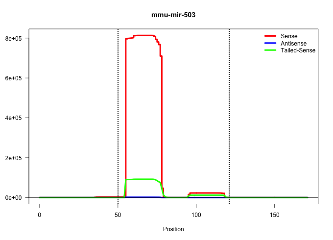 | ACTTGAAGAAGGGACAAGGCATCCTGTACTCAGCCCATCCCACTCAGTCGTGCCCTAGCAGCGGGAACAGTACTGCAGTGAGTGTTTGGTGCCCTGGAGTATTGTTTCCACTGCCTGGGTAAGTCTGGGTCTTCCACATGGGCACACCCACCAGGTAAGTTTCGGTTAGCC ..................................................(((((..((((.((((((((((((.(((...((.......)).))).)))))))))))).))))..))))).................................................. ..................................................51....................................................................121................................................ | Size | Perfect hit | Total Norm | Perfect Norm | SRR391845(GSM852140) gender: femalegenotype/variation: wild typeti. (embryo) | SRR391847(GSM852142) gender: femalegenotype/variation: ADAR2-/-/AD. (embryo) | SRR391846(GSM852141) gender: femalegenotype/variation: ADAR2-/-tis. (embryo) | SRR069809(GSM610965) small RNA sequencing; sample 1. (testes) | SRR029043(GSM433295) 18.5dpc_homo_tdrd1-KO. (tdrd1 testes) | SRR029042(GSM433294) 18.5dpc_hetero_tdrd1-KO. (tdrd1 testes) | GSM261957(GSM261957) oocytesmallRNA-19to24. (oocyte) | SRR051941(GSM545785) 18-32 nt total small RNAs (Mov10l-/-). (mov10L testes) | SRR391848(GSM852143) gender: femalegenotype/variation: wild typeti. (embryo) | SRR037925(GSM510463) e9p5_rep3. (embryo) | SRR037924(GSM510462) e9p5_rep2. (embryo) | SRR279903(GSM689053) cell type: mouse embryonic stem cellcell line. (ESC) | SRR037921(GSM510459) e12p5_rep3. (embryo) | SRR248526(GSM733814) cell type: Thy1- spermatogonial stem cellstra. (testes) | SRR042459(GSM539851) mouse neutrophil cells replicate 1 [09-002]. (blood) | SRR037920(GSM510458) e12p5_rep2. (embryo) | SRR279905(GSM689055) cell type: mouse embryonic stem cellcell line. (ESC) | SRR279904(GSM689054) cell type: mouse embryonic stem cellcell line. (ESC) | GSM510456(GSM510456) newborn_rep12. (total RNA) | SRR032477(GSM485235) sRNA_activation_deep_sequencing. (uterus) | mjTestesWT3() Testes Data. (testes) | SRR032476(GSM485234) sRNA_delayed_deep_sequencing. (uterus) | mjTestesWT1() Testes Data. (testes) | SRR029123(GSM416611) NIH3T3. (cell line) | SRR042471(GSM539863) mouse TFHS cells [09-002]. (spleen) | SRR248525(GSM733813) cell type: Thy1- spermatogonial stem cellstra. (testes) | SRR391849(GSM852144) gender: femalegenotype/variation: ADAR2-/-tis. (embryo) | SRR390300(GSM849858) cell line: NIH-3T3cell type: fibroblastinfect. (ago2 fibroblast) | SRR391850(GSM852145) gender: femalegenotype/variation: ADAR2-/-/AD. (embryo) | SRR391853(GSM852148) gender: femalegenotype/variation: ADAR2-/-/AD. (embryo) | SRR039186(GSM485326) shLuc.1309;ROSA-rtTA (+dox). (fibroblast) | SRR390298(GSM849856) cell line: NIH-3T3cell type: fibroblastinfect. (fibroblast) | SRR391852(GSM852147) gender: femalegenotype/variation: ADAR2-/-tis. (embryo) | SRR040489(GSM533912) E18.5 Ago2 catalytically inactive LIVER small RNA. (liver) | SRR042474(GSM539866) mouse embryonic stem cells [09-002]. (ESC) | SRR391851(GSM852146) gender: femalegenotype/variation: wild typeti. (embryo) | SRR037929(GSM510467) e7p5_rep3. (embryo) | mjTestesKO7() Testes Data. (Zcchc11 testes) | SRR039154(GSM471931) HL1_siSrf2_smallRNAseq. (muscle) | SRR037928(GSM510466) e7p5_rep2. (embryo) | SRR279907(GSM689057) cell type: mouse embryonic stem cellcell line. (ESC) | SRR037914(GSM510451) newborn_rep7. (total RNA) | SRR039183(GSM485323) shLuc.1309 (-dox). (fibroblast) | SRR039184(GSM485324) shLuc.1309 (+dox). (fibroblast) | SRR039185(GSM485325) shLuc.1309;ROSA-rtTA (-dox). (fibroblast) | SRR037923(GSM510461) e9p5_rep1. (embryo) | SRR073954(GSM629280) total RNA. (blood) | SRR279906(GSM689056) cell type: mouse embryonic stem cellcell line. (ESC) | SRR037912(GSM510449) newborn_rep5. (total RNA) | GSM510455(GSM510455) newborn_rep11. (total RNA) | GSM510453(GSM510453) newborn_rep9. (total RNA) | GSM510454(GSM510454) newborn_rep10. (total RNA) | GSM510452(GSM510452) newborn_rep8. (total RNA) | SRR040488(GSM533911) E18.5 wild type LIVER small RNA. (liver) | SRR042470(GSM539862) mouse Th17 cells [09-002]. (lymph) | SRR037922(GSM510460) e12p5_rep4. (embryo) | SRR390297(GSM849855) cell line: NIH-3T3cell type: fibroblastip ant. (fibroblast) | SRR037897(GSM510433) ovary_rep2. (ovary) | SRR014232(GSM319956) 16.5 dpc MILI. (mili testes) | SRR042458(GSM539850) mouse basophil cells [09-002]. (b cell) | SRR037926(GSM510464) e9p5_rep4. (embryo) | mjTestesWT4() Testes Data. (testes) | SRR402766(SRX117949) source: ES PGK female cells. (ESC) | GSM510450(GSM510450) newborn_rep6. (total RNA) | SRR042469(GSM539861) mouse Th2 cells [09-002]. (lymph) | SRR042460(GSM539852) mouse neutrophil cells replicate 2 [09-002]. (blood) | GSM475281(GSM475281) total RNA. (testes) | mjTestesWT2() Testes Data. (testes) | SRR042457(GSM539849) mouse mast cells [09-002]. (bone marrow) | SRR037898(GSM510434) ovary_rep3. (ovary) | mjTestesKO8() Testes Data. (Zcchc11 testes) | SRR390299(GSM849857) cell line: NIH-3T3cell type: fibroblastip ant. (ago2 fibroblast) | SRR039153(GSM471930) HL1_siSrf1_smallRNAseq. (muscle) | SRR014229(GSM319953) 10 dpp MILI. (mili testes) | mjTestesKO6() Testes Data. (Zcchc11 testes) | SRR039152(GSM471929) HL1_siNon_smallRNAseq. (muscle) | SRR042486(GSM539878) mouse ovaries [09-002]. (ovary) | SRR042483(GSM539875) mouse muscle tissue [09-002]. (muscle) | SRR037919(GSM510457) e12p5_rep1. (embryo) | SRR042468(GSM539860) mouse Th1 cells [09-002]. (lymph) | SRR042484(GSM539876) mouse salivary gland tissue [09-002]. (gland) | SRR037927(GSM510465) e7p5_rep1. (embryo) | SRR042456(GSM539848) mouse hematopoetic progenitor cells [09-002]. (bone marrow) | SRR042444(GSM539836) mouse pre B cells [09-002]. (b cell) | SRR042466(GSM539858) mouse CD8+ T cells (spleen) [09-002]. (spleen) | SRR042445(GSM539837) mouse immature B cells [09-002]. (b cell) | SRR059766(GSM562828) DN3_Drosha. (thymus) | GSM416732(GSM416732) MEF. (cell line) | SRR023851(GSM307160) ZHBT-c412hsmallrna_rep1. (cell line) | SRR042443(GSM539835) mouse pro B cells [09-002]. (b cell) | mjLiverKO1() Liver Data. (Zcchc11 liver) | SRR029036(GSM433