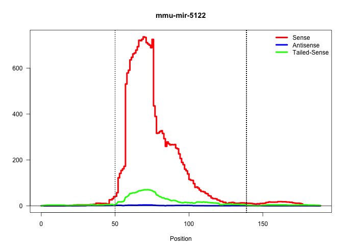 | GCTACTCGTTGGTGCCTATAAATGGCTGCGCTGTGCTCAGCGAGGCATCAGTCCGCTACCGCGGGACCCGGGGCTGTGTCAGGTCTGGAAGTGGAGCTGGAGCTGACCGAAGGAGCTGCCGCTGGGCCGGGGTGGAACACAGCTCTGCACCGGGGTCTTAAGGAGGGGTGTGTTGCTGCTGGCTCACTG ...................................................((((((.((((.....(((((.(((...))).)))))..))))))).))).................................................. ..................................................51................................................101...................................................................................... | Size | Perfect hit | Total Norm | Perfect Norm | GSM519104(GSM519104) mouse_granulocyte_nuclei_smallRNAs. (cell line) | mjLiverWT1() Liver Data. (liver) | mjLiverKO1() Liver Data. (Zcchc11 liver) | SRR402760(SRX117943) source: ES E14 male cells. (ESC) | SRR279907(GSM689057) cell type: mouse embryonic stem cellcell line. (ESC) | SRR040489(GSM533912) E18.5 Ago2 catalytically inactive LIVER small RNA. (liver) | SRR040488(GSM533911) E18.5 wild type LIVER small RNA. (liver) | mjTestesWT4() Testes Data. (testes) | SRR391850(GSM852145) gender: femalegenotype/variation: ADAR2-/-/AD. (embryo) | SRR029042(GSM433294) 18.5dpc_hetero_tdrd1-KO. (tdrd1 testes) | SRR029043(GSM433295) 18.5dpc_homo_tdrd1-KO. (tdrd1 testes) | SRR073955(GSM629281) total RNA. (blood) | SRR279905(GSM689055) cell type: mouse embryonic stem cellcell line. (ESC) | SRR402762(SRX117945) source: ES E14 male cells. (ESC) | SRR279906(GSM689056) cell type: mouse embryonic stem cellcell line. (ESC) | mjLiverWT3() Liver Data. (liver) | SRR391848(GSM852143) gender: femalegenotype/variation: wild typeti. (embryo) | SRR042471(GSM539863) mouse TFHS cells [09-002]. (spleen) | SRR402766(SRX117949) source: ES PGK female cells. (ESC) | SRR279904(GSM689054) cell type: mouse embryonic stem cellcell line. (ESC) | mjTestesWT1() Testes Data. (testes) | SRR042445(GSM539837) mouse immature B cells [09-002]. (b cell) | GSM640578(GSM640578) small RNA in the liver with paternal control. (liver) | SRR059768(GSM562830) Treg_control. (spleen) | mjTestesWT3() Testes Data. (testes) | mjTestesKO7() Testes Data. (Zcchc11 testes) | SRR059769(GSM562831) Treg_Drosha. (spleen) | mjLiverKO3() Liver Data. (Zcchc11 liver) | mjTestesKO5() Testes Data. (Zcchc11 testes) | SRR248526(GSM733814) cell type: Thy1- spermatogonial stem cellstra. (testes) | SRR042458(GSM539850) mouse basophil cells [09-002]. (b cell) | SRR060845(GSM561991) total RNA. (brain) | SRR059767(GSM562829) DN3_Dicer. (thymus) | SRR059766(GSM562828) DN3_Drosha. (thymus) | SRR042454(GSM539846) mouse germinal center B cells (lymph node) [09-002]. (b cell) | SRR391849(GSM852144) gender: femalegenotype/variation: ADAR2-/-tis. (embryo) | mjTestesKO6() Testes Data. (Zcchc11 testes) | SRR248525(GSM733813) cell type: Thy1- spermatogonial stem cellstra. (testes) | mjTestesKO8() Testes Data. (Zcchc11 testes) | SRR042480(GSM539872) mouse kidney tissue [09-002]. (kidney) | SRR039154(GSM471931) HL1_siSrf2_smallRNAseq. (muscle) | SRR042466(GSM539858) mouse CD8+ T cells (spleen) [09-002]. (spleen) | GSM640579(GSM640579) small RNA in the liver with paternal Low pro. (liver) | SRR391853(GSM852148) gender: femalegenotype/variation: ADAR2-/-/AD. (embryo) | SRR042459(GSM539851) mouse neutrophil cells replicate 1 [09-002]. (blood) | SRR345197(SRX097258) source: size fractionated RNA from mouse hipp. (brain) | mjTestesWT2() Testes Data. (testes) | SRR391852(GSM852147) gender: femalegenotype/variation: ADAR2-/-tis. (embryo) | SRR042488(GSM539880) mouse BclXL germinal center B cells [BalbC] [09-002]. (B cell) | SRR042473(GSM539865) mouse nTreg cells [09-002]. (lymph) | SRR059770(GSM562832) Treg_Dicer. (spleen) | GSM640581(GSM640581) small RNA in the liver with paternal control. (liver) | SRR345196(SRX097257) source: size fractionated RNA from mouse hipp. (brain) | SRR279903(GSM689053) cell type: mouse embryonic stem cellcell line. (ESC) | SRR042464(GSM539856) mouse CD4+CD8+ T cells (thymus) [09-002]. (thymus) | SRR042470(GSM539862) mouse Th17 cells [09-002]. (lymph) | SRR059765(GSM562827) DN3_control. (thymus) | SRR042486(GSM539878) mouse ovaries [09-002]. (ovary) | SRR032477(GSM485235) sRNA_activation_deep_sequencing. (uterus) | SRR042452(GSM539844) mouse B1 B cells [09-002]. (b cell) | SRR037929(GSM510467) e7p5_rep3. (embryo) | SRR248523(GSM733811) cell type: Thy1+ spermatogonial stem cellstra. (testes) | SRR248524(GSM733812) cell type: Thy1+ spermatogonial stem cellstra. (testes) | SRR391847(GSM852142) gender: femalegenotype/variation: ADAR2-/-/AD. (embryo) | SRR345200(SRX097261) source: size fractionated RNA from mouse hipp. (brain) | SRR042448(GSM539840) mouse B cells activated in vitro with LPS/IL4 replicate 1 [09-002]. (b cell) | GSM640580(GSM640580) small RNA in the liver with paternal Low pro. (liver) | SRR042447(GSM539839) mouse mature B cells (spleen) replicate 2 [09-002]. (b cell) | SRR391851(GSM852146) gender: femalegenotype/variation: wild typeti. (embryo) | SRR402761(SRX117944) source: ES E14 male cells. (ESC) | SRR039184(GSM485324) shLuc.1309 (+dox). (fibroblast) | SRR042444(GSM539836) mouse pre B cells [09-002]. (b cell) | SRR039186(GSM485326) shLuc.1309;ROSA-rtTA (+dox). (fibroblast) | SRR039185(GSM485325) shLuc.1309;ROSA-rtTA (-dox). (fibroblast) | GSM314557(GSM314557) ESC dgcr8 (Illumina). (ESC) | SRR042481(GSM539873) mouse pancreatic tissue [09-002]. (pancreas) | SRR042446(GSM539838) mouse mature B cells (spleen) replicate 1 [09-002]. (b cell) | SRR042465(GSM539857) mouse CD4+ T cells (spleen) [09-002]. (spleen) | SRR042450(GSM539842) mouse B cells activated in vitro with LPS/IL4 replicate 3 [09-002]. (b cell) | SRR059771(GSM562833) CD4_control. (spleen) | SRR042484(GSM539876) mouse salivary gland tissue [09-002]. (gland) | SRR037928(GSM510466) e7p5_rep2. (embryo) | SRR038742(GSM527277) small RNA-Seq. (dgcr8 brain) | SRR069809(GSM610965) small RNA sequencing; sample 1. (testes) | SRR042457(GSM539849) mouse mast cells [09-002]. (bone marrow) | SRR039610(GSM527274) small RNA-Seq. (bra