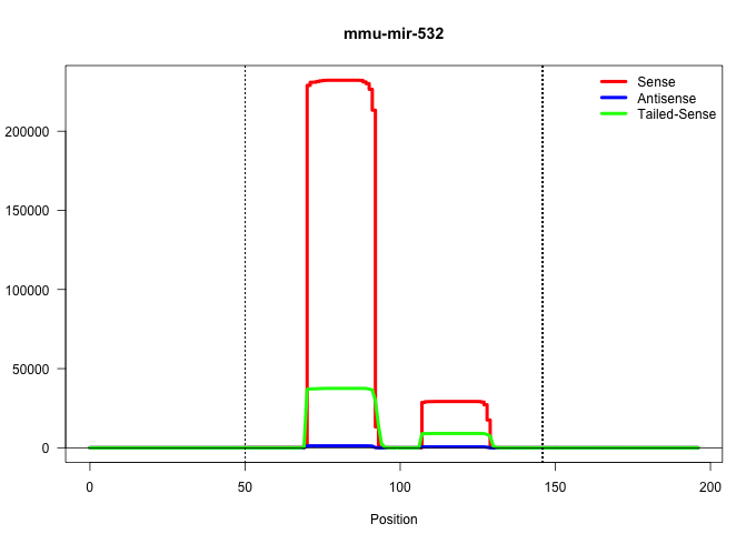 | GACACACTGTTGTACATGCATGCTGATTTGTACACAGGAGAGCACGCCTACAGATTTGCTTTTTCTCTTCCATGCCTTGAGTGTAGGACCGTTGACATCTTAATTACCCTCCCACACCCAAGGCTTGCAGGAGAGCAAGCCTTCTCTTCTCTCTCCTGTGCATAGGCATGACTGCATATACATCTACAGCAAAGAC ..................................................((((.((.((((((.((((.(((..((.............))..))).)))).)))))).)).))))................................................... .................................................................66.................................................................133............................................................. | Size | Perfect hit | Total Norm | Perfect Norm | SRR402762(SRX117945) source: ES E14 male cells. (ESC) | mjLiverKO1() Liver Data. (Zcchc11 liver) | mjTestesKO7() Testes Data. (Zcchc11 testes) | SRR039185(GSM485325) shLuc.1309;ROSA-rtTA (-dox). (fibroblast) | SRR402766(SRX117949) source: ES PGK female cells. (ESC) | SRR039186(GSM485326) shLuc.1309;ROSA-rtTA (+dox). (fibroblast) | SRR042458(GSM539850) mouse basophil cells [09-002]. (b cell) | SRR042456(GSM539848) mouse hematopoetic progenitor cells [09-002]. (bone marrow) | SRR039183(GSM485323) shLuc.1309 (-dox). (fibroblast) | SRR402761(SRX117944) source: ES E14 male cells. (ESC) | SRR042448(GSM539840) mouse B cells activated in vitro with LPS/IL4 replicate 1 [09-002]. (b cell) | SRR039184(GSM485324) shLuc.1309 (+dox). (fibroblast) | mjLiverWT2() Liver Data. (liver) | SRR206940(GSM723281) other. (brain) | SRR391853(GSM852148) gender: femalegenotype/variation: ADAR2-/-/AD. (embryo) | SRR391852(GSM852147) gender: femalegenotype/variation: ADAR2-/-tis. (embryo) | SRR042461(GSM539853) mouse dendritic cells [09-002]. (bone marrow) | SRR059765(GSM562827) DN3_control. (thymus) | SRR248526(GSM733814) cell type: Thy1- spermatogonial stem cellstra. (testes) | SRR391851(GSM852146) gender: femalegenotype/variation: wild typeti. (embryo) | SRR402760(SRX117943) source: ES E14 male cells. (ESC) | SRR306540(GSM750583) 19-24nt. (ago2 brain) | SRR042471(GSM539863) mouse TFHS cells [09-002]. (spleen) | SRR038742(GSM527277) small RNA-Seq. (dgcr8 brain) | SRR059767(GSM562829) DN3_Dicer. (thymus) | SRR042452(GSM539844) mouse B1 B cells [09-002]. (b cell) | SRR042457(GSM539849) mouse mast cells [09-002]. (bone marrow) | SRR042469(GSM539861) mouse Th2 cells [09-002]. (lymph) | SRR306535(GSM750578) 19-24nt. (ago2 brain) | GSM510456(GSM510456) newborn_rep12. (total RNA) | SRR042447(GSM539839) mouse mature B cells (spleen) replicate 2 [09-002]. (b cell) | SRR042462(GSM539854) mouse macrophages [09-002]. (bone marrow) | SRR029043(GSM433295) 18.5dpc_homo_tdrd1-KO. (tdrd1 testes) | SRR279905(GSM689055) cell type: mouse embryonic stem cellcell line. (ESC) | mjTestesKO8() Testes Data. (Zcchc11 testes) | SRR042446(GSM539838) mouse mature B cells (spleen) replicate 1 [09-002]. (b cell) | SRR206941(GSM723282) other. (brain) | SRR042459(GSM539851) mouse neutrophil cells replicate 1 [09-002]. (blood) | SRR391848(GSM852143) gender: femalegenotype/variation: wild typeti. (embryo) | SRR279907(GSM689057) cell type: mouse embryonic stem cellcell line. (ESC) | SRR042475(GSM539867) mouse embryonic fibroblast cells [09-002]. (fibroblast) | SRR248527(GSM733815) cell type: spermatogonial stem cell enriched . (testes) | SRR206942(GSM723283) other. (brain) | SRR306534(GSM750577) 19-24nt. (ago2 brain) | SRR248525(GSM733813) cell type: Thy1- spermatogonial stem cellstra. (testes) | SRR042472(GSM539864) mouse iTreg cells [09-002]. (lymph) | SRR306533(GSM750576) 19-24nt. (ago2 brain) | SRR306537(GSM750580) 19-24nt. (ago2 brain) | SRR390300(GSM849858) cell line: NIH-3T3cell type: fibroblastinfect. (ago2 fibroblast) | SRR206939(GSM723280) other. (brain) | SRR391846(GSM852141) gender: femalegenotype/variation: ADAR2-/-tis. (embryo) | SRR306532(GSM750575) 19-24nt. (ago2 brain) | SRR042451(GSM539843) mouse B cells activated in vitro with LPS/aIgD-Dextran [09-002]. (b cell) | SRR042468(GSM539860) mouse Th1 cells [09-002]. (lymph) | SRR042463(GSM539855) mouse natural killer cells [09-002]. (spleen) | SRR042477(GSM539869) mouse brain tissue [09-002]. (brain) | SRR032477(GSM485235) sRNA_activation_deep_sequencing. (uterus) | SRR039152(GSM471929) HL1_siNon_smallRNAseq. (muscle) | SRR059766(GSM562828) DN3_Drosha. (thymus) | SRR390298(GSM849856) cell line: NIH-3T3cell type: fibroblastinfect. (fibroblast) | SRR039153(GSM471930) HL1_siSrf1_smallRNAseq. (muscle) | mjTestesWT3() Testes Data. (testes) | SRR042445(GSM539837) mouse immature B cells [09-002]. (b cell) | mjTestesWT2() Testes Data. (testes) | SRR042488(GSM539880) mouse BclXL germinal center B cells [BalbC] [09-002]. (B cell) | SRR039154(GSM471931) HL1_siSrf2_smallRNAseq. (muscle) | SRR038744(GSM527279) small RNA-Seq. (brain) | SRR391847(GSM852142) gender: femalegenotype/variation: ADAR2-/-/AD. (embryo) | SRR042453(GSM539845) mouse marginal zone B cells (spleen) [09-002]. (b cell) | SRR042481(GSM539873) mouse pancreatic tissue [09-002]. (pancreas) | SRR038741(GSM527276) small RNA-Seq. (brain) | SRR306536(GSM750579) 19-24nt. (ago2 brain) | SRR042449(GSM539841) mouse B cells activated in vitro with LPS/IL4 replicate 2 [09-002]. (b cell) | SRR391845(GSM852140) gender: femalegenotype/variation: wild typeti. (embryo) | SRR032476(GSM485234) sRNA_delayed_deep_sequencing. (uterus) | SRR029042(GSM433294) 18.5dpc_hetero_tdrd1-KO. (tdrd1 testes) | SRR042450(GSM539842) mouse B cells activated in vitro with LPS/IL4 replicate 3 [09-002]. (b cell) | SRR040488(GSM533911) E18.5 wild type LIVER small RNA. (liver) | SRR040489(GSM533912) E18.5 Ago2 catalytically inactive LIVER small RNA. (liver) | mjLiverWT1() Liver Data. (liver) | SRR037937(GSM510475) 293cand2. (cell line) | SRR037944(GSM510482) 293DcrTN_cand5. (cell line) | SRR039610(GSM527274) small RNA-Seq. (brain) | Ago3IP812(Rui) Quantitative functions of Argonaute proteins . (ago3 skin) | SRR037914(GSM510451) newborn_rep7. (total RNA) | SRR042480(GSM539872) mouse kidney tissue [09-002]. (kidney) | SRR391849(GSM852144) gender: femalegenotype/variation: A