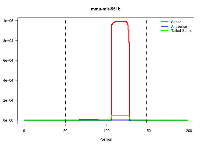 | TTCTTGCTTTAGTCTTCTATCTTCTGCTGATTCTATCTATATTCCCAGATGTGCTCTTGTGGCCCATGAAATCAAGCTTGGGTGAGACCTGGTGCAGAACAGGAAGGCGACCCATACTTGGTTTCAGTGGCTGCAAGAATGACTGCATGGTCGACAGGATGCCTTTGATGTTGCACAGGCCTTCCAGGAAAGAAGCCA ...............................................................(((((((((((((..((((((...((((........))))....)).))))..)))))))))).))).................................................................... ..............................................................63...................................................................132................................................................ | Size | Perfect hit | Total Norm | Perfect Norm | SRR306540(GSM750583) 19-24nt. (ago2 brain) | SRR306535(GSM750578) 19-24nt. (ago2 brain) | SRR306533(GSM750576) 19-24nt. (ago2 brain) | SRR306532(GSM750575) 19-24nt. (ago2 brain) | SRR391848(GSM852143) gender: femalegenotype/variation: wild typeti. (embryo) | SRR306534(GSM750577) 19-24nt. (ago2 brain) | SRR306537(GSM750580) 19-24nt. (ago2 brain) | GSM510444(GSM510444) brain_rep5. (brain) | SRR037937(GSM510475) 293cand2. (cell line) | SRR306536(GSM750579) 19-24nt. (ago2 brain) | SRR306539(GSM750582) 19-24nt. (ago2 brain) | SRR391849(GSM852144) gender: femalegenotype/variation: ADAR2-/-tis. (embryo) | SRR306544(GSM750587) 19-24nt. (ago2 brain) | SRR391850(GSM852145) gender: femalegenotype/variation: ADAR2-/-/AD. (embryo) | SRR037944(GSM510482) 293DcrTN_cand5. (cell line) | SRR345196(SRX097257) source: size fractionated RNA from mouse hipp. (brain) | SRR037906(GSM510442) brain_rep3. (brain) | SRR037943(GSM510481) 293DcrTN. (cell line) | SRR391845(GSM852140) gender: femalegenotype/variation: wild typeti. (embryo) | SRR037905(GSM510441) brain_rep2. (brain) | SRR038742(GSM527277) small RNA-Seq. (dgcr8 brain) | SRR037935(GSM510473) 293cand3. (cell line) | SRR037936(GSM510474) 293cand1. (cell line) | SRR306543(GSM750586) 19-24nt. (ago2 brain) | SRR391853(GSM852148) gender: femalegenotype/variation: ADAR2-/-/AD. (embryo) | SRR037941(GSM510479) 293DroshaTN. (cell line) | SRR038744(GSM527279) small RNA-Seq. (brain) | SRR037940(GSM510478) 293cand5_rep2. (cell line) | SRR039610(GSM527274) small RNA-Seq. (brain) | SRR037942(GSM510480) 293DroshaTN_cand5. (cell line) | SRR391851(GSM852146) gender: femalegenotype/variation: wild typeti. (embryo) | SRR306538(GSM750581) 19-24nt. (ago2 brain) | SRR037939(GSM510477) 293cand5_rep1. (cell line) | SRR345198(SRX097259) source: size fractionated RNA from mouse hipp. (brain) | GSM510456(GSM510456) newborn_rep12. (total RNA) | SRR391846(GSM852141) gender: femalegenotype/variation: ADAR2-/-tis. (embryo) | SRR038741(GSM527276) small RNA-Seq. (brain) | SRR037921(GSM510459) e12p5_rep3. (embryo) | SRR037938(GSM510476) 293Red. (cell line) | SRR391847(GSM852142) gender: femalegenotype/variation: ADAR2-/-/AD. (embryo) | SRR037934(GSM510472) 293cand4_rep3. (cell line) | SRR345197(SRX097258) source: size fractionated RNA from mouse hipp. (brain) | SRR306530(GSM750573) 19-24nt. (ago2 brain) | SRR345200(SRX097261) source: size fractionated RNA from mouse hipp. (brain) | SRR037933(GSM510471) 293cand4_rep2. (cell line) | SRR037920(GSM510458) e12p5_rep2. (embryo) | SRR306529(GSM750572) 19-24nt. (ago2 brain) | SRR038743(GSM527278) small RNA-Seq. (dicer brain) | SRR037931(GSM510469) 293GFP. (cell line) | SRR306531(GSM750574) 19-24nt. (ago2 brain) | SRR391852(GSM852147) gender: femalegenotype/variation: ADAR2-/-tis. (embryo) | SRR206942(GSM723283) other. (brain) | SRR345203(SRX097264) source: size fractionated RNA from mouse hipp. (brain) | SRR345201(SRX097262) source: size fractionated RNA from mouse hipp. (brain) | SRR345202(SRX097263) source: size fractionated RNA from mouse hipp. (brain) | SRR037907(GSM510443) brain_rep4. (brain) | SRR345206(SRX097267) source: size fractionated RNA from mouse hipp. (brain) | SRR037914(GSM510451) newborn_rep7. (total RNA) | SRR345199(SRX097260) source: size fractionated RNA from mouse hipp. (brain) | SRR037904(GSM510440) brain_rep1. (brain) | SRR206941(GSM723282) other. (brain) | SRR038745(GSM527280) small RNA-Seq. (dgcr8 brain) | SRR306542(GSM750585) 19-24nt. (ago2 brain) | SRR306541(GSM750584) 19-24nt. (ago2 brain) | SRR037912(GSM510449) newborn_rep5. (total RNA) | SRR345204(SRX097265) source: size fractionated RNA from mouse hipp. (brain) | SRR345207(SRX097268) source: size fractionated RNA from mouse hipp. (brain) | SRR037932(GSM510470) 293cand4_rep1. (cell line) | SRR037922(GSM510460) e12p5_rep4. (embryo) | SRR029043(GSM433295) 18.5dpc_homo_tdrd1-KO. (tdrd1 testes) | SRR345205(SRX097266) source: size fractionated RNA from mouse hipp. (brain) | SRR206940(GSM723281) other. (brain) | SRR037919(GSM510457) e12p5_rep1. (embryo) | GSM510455(GSM510455) newborn_rep11. (total RNA) | SRR038740(GSM527275) small RNA-Seq. (dicer brain) | GSM510453(GSM510453) newborn_rep9. (total RNA) | GSM510454(GSM510454) newborn_rep10. (total RNA) | GSM510452(GSM510452) newborn_rep8. (total RNA) | SRR306527(GSM750570) 19-24nt. (ago2 brain) | SRR206939(GSM723280) other. (brain) | SRR077864(GSM637801) 18-30 nt small RNAs. (liver) | SRR029042(GSM433294) 18.5dpc_hetero_tdrd1-KO. (tdrd1 testes) | SRR077866(GSM637803) 18-30 nt small RNAs. (liver) | SRR037909(GSM510446) newborn_rep2. (total RNA) | GSM475281(GSM475281) total RNA. (testes) | SRR042477(GSM539869) mouse brain tissue [09-002]. (brain) | SRR037910(GSM510447) newborn_rep3. (total RNA) | SRR306528(GSM750571) 19-24nt. (ago2 brain) | GSM361408(GSM361408) WholeCerebellum_P6_wt_rep1. (brain) | GSM510450(GSM510450) newborn_rep6. (total RNA) | GSM361398(GSM361398) CGNP_P6_p53--_Ink4c--_rep1. (brain) | SRR306526(GSM750569) 19-24nt. (ago2 brain) | SRR040489(GSM533912) E18.5 Ago2 catalytically inactive LIVER small RNA. (liver) | GSM640579(GSM640579) small RNA in the liver with paternal Low pro. (liver) | GSM361407(GSM361407) CGNP_P6_Ptc+-_Ink4c--_rep5. (brain) | GSM361415(GSM361415) WholeCerebellum_P6_p53--_Ink4c--_rep4. (brain) | SRR040488(GSM533911) E18.5 wild type LIVER small RNA. (liver