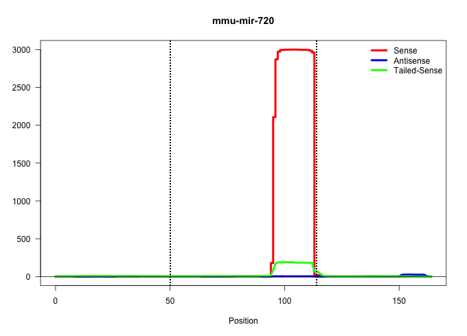 | TTGAAGTCCTGGTCTGGAAGGTGTACACCTCCTGAGGCAGCCCTTCAACCCTGGAGCCCCAGAATGAAGATGCAGCTTTAGAATTTGGGTGGTCTATCTCGCTGGGGCCTCCAGAAAATGTGAATCCCACTGAGTGAGAATAAGACCACTACCACAAGCCAGTC ..................................................((((((((((((...((((((...((((........)))).)))).))...))))))).))))).................................................. ..................................................51.............................................................114................................................ | Size | Perfect hit | Total Norm | Perfect Norm | SRR073954(GSM629280) total RNA. (blood) | SRR073955(GSM629281) total RNA. (blood) | SRR042452(GSM539844) mouse B1 B cells [09-002]. (b cell) | GSM314557(GSM314557) ESC dgcr8 (Illumina). (ESC) | SRR042459(GSM539851) mouse neutrophil cells replicate 1 [09-002]. (blood) | SRR037942(GSM510480) 293DroshaTN_cand5. (cell line) | SRR042465(GSM539857) mouse CD4+ T cells (spleen) [09-002]. (spleen) | GSM361408(GSM361408) WholeCerebellum_P6_wt_rep1. (brain) | SRR037944(GSM510482) 293DcrTN_cand5. (cell line) | SRR390300(GSM849858) cell line: NIH-3T3cell type: fibroblastinfect. (ago2 fibroblast) | SRR345199(SRX097260) source: size fractionated RNA from mouse hipp. (brain) | SRR279906(GSM689056) cell type: mouse embryonic stem cellcell line. (ESC) | GSM314552(GSM314552) ESC wild type (Illumina). (ESC) | SRR029042(GSM433294) 18.5dpc_hetero_tdrd1-KO. (tdrd1 testes) | SRR345196(SRX097257) source: size fractionated RNA from mouse hipp. (brain) | SRR402762(SRX117945) source: ES E14 male cells. (ESC) | mjLiverKO1() Liver Data. (Zcchc11 liver) | SRR029043(GSM433295) 18.5dpc_homo_tdrd1-KO. (tdrd1 testes) | SRR039152(GSM471929) HL1_siNon_smallRNAseq. (muscle) | SRR037940(GSM510478) 293cand5_rep2. (cell line) | SRR042446(GSM539838) mouse mature B cells (spleen) replicate 1 [09-002]. (b cell) | SRR059765(GSM562827) DN3_control. (thymus) | SRR042447(GSM539839) mouse mature B cells (spleen) replicate 2 [09-002]. (b cell) | SRR042464(GSM539856) mouse CD4+CD8+ T cells (thymus) [09-002]. (thymus) | SRR279905(GSM689055) cell type: mouse embryonic stem cellcell line. (ESC) | SRR037937(GSM510475) 293cand2. (cell line) | GSM314553(GSM314553) ESC dcr (Illumina). (ESC) | SRR037936(GSM510474) 293cand1. (cell line) | SRR042471(GSM539863) mouse TFHS cells [09-002]. (spleen) | SRR039153(GSM471930) HL1_siSrf1_smallRNAseq. (muscle) | SRR037935(GSM510473) 293cand3. (cell line) | SRR037943(GSM510481) 293DcrTN. (cell line) | SRR042488(GSM539880) mouse BclXL germinal center B cells [BalbC] [09-002]. (B cell) | SRR345198(SRX097259) source: size fractionated RNA from mouse hipp. (brain) | SRR042466(GSM539858) mouse CD8+ T cells (spleen) [09-002]. (spleen) | SRR345202(SRX097263) source: size fractionated RNA from mouse hipp. (brain) | SRR042453(GSM539845) mouse marginal zone B cells (spleen) [09-002]. (b cell) | mjLiverWT1() Liver Data. (liver) | SRR042445(GSM539837) mouse immature B cells [09-002]. (b cell) | SRR390297(GSM849855) cell line: NIH-3T3cell type: fibroblastip ant. (fibroblast) | SRR059769(GSM562831) Treg_Drosha. (spleen) | SRR037941(GSM510479) 293DroshaTN. (cell line) | mjTestesKO8() Testes Data. (Zcchc11 testes) | GSM261959(GSM261959) oocytesmallRNA-19to30. (oocyte) | RuiDcrWT(Rui) DGCR8-dependent microRNA biogenesis is essent. (skin) | RuiDGCR8WT(Rui) DGCR8-dependent microRNA biogenesis is essent. (skin) | SRR391848(GSM852143) gender: femalegenotype/variation: wild typeti. (embryo) | SRR037912(GSM510449) newborn_rep5. (total RNA) | SRR248526(GSM733814) cell type: Thy1- spermatogonial stem cellstra. (testes) | SRR039154(GSM471931) HL1_siSrf2_smallRNAseq. (muscle) | SRR042454(GSM539846) mouse germinal center B cells (lymph node) [09-002]. (b cell) | SRR059767(GSM562829) DN3_Dicer. (thymus) | SRR345205(SRX097266) source: size fractionated RNA from mouse hipp. (brain) | SRR345197(SRX097258) source: size fractionated RNA from mouse hipp. (brain) | RuiDGCR8KO(Rui) DGCR8-dependent microRNA biogenesis is essent. (dgcr8 skin) | SRR042483(GSM539875) mouse muscle tissue [09-002]. (muscle) | SRR038742(GSM527277) small RNA-Seq. (dgcr8 brain) | SRR040488(GSM533911) E18.5 wild type LIVER small RNA. (liver) | SRR042470(GSM539862) mouse Th17 cells [09-002]. (lymph) | SRR402760(SRX117943) source: ES E14 male cells. (ESC) | SRR037929(GSM510467) e7p5_rep3. (embryo) | SRR345204(SRX097265) source: size fractionated RNA from mouse hipp. (brain) | SRR042473(GSM539865) mouse nTreg cells [09-002]. (lymph) | SRR037939(GSM510477) 293cand5_rep1. (cell line) | SRR037920(GSM510458) e12p5_rep2. (embryo) | SRR391849(GSM852144) gender: femalegenotype/variation: ADAR2-/-tis. (embryo) | SRR037921(GSM510459) e12p5_rep3. (embryo) | SRR042484(GSM539876) mouse salivary gland tissue [09-002]. (gland) | GSM361430(GSM361430) WholeCerebellum_1month_Ptc+-_Ink4c--_rep2. (brain) | SRR042469(GSM539861) mouse Th2 cells [09-002]. (lymph) | SRR037928(GSM510466) e7p5_rep2. (embryo) | mjLiverWT3() Liver Data. (liver) | SRR040489(GSM533912) E18.5 Ago2 catalytically inactive LIVER small RNA. (liver) | Ago1IP812(Rui) Quantitative functions of Argonaute proteins . (ago1 skin) | GSM640580(GSM640580) small RNA in the liver with paternal Low pro. (liver) | SRR390299(GSM849857) cell line: NIH-3T3cell type: fibroblastip ant. (ago2 fibroblast) | Ago2IP517(Rui) Quantitative functions of Argonaute proteins . (ago2 skin) | SRR345203(SRX097264) source: size fractionated RNA from mouse hipp. (brain) | GSM510444(GSM510444) brain_rep5. (brain) | mjTestesWT1() Testes Data. (testes) | SRR042460(GSM539852) mouse neutrophil cells replicate 2 [09-002]. (blood) | GSM510456(GSM510456) newborn_rep12. (total RNA) | SRR038743(GSM527278) small RNA-Seq. (dicer brain) | SRR391846(GSM852141) gender: femalegenotype/variation: ADAR2-/-tis. (embryo) | SRR065058(SRR065058) Tissue-specific Regulation of Mouse MicroRNA . (pancreas) | SRR391852(GSM852147) gender: femalegenotype/variation: ADAR2-/-tis. (embryo) | SRR042486(GSM539878) mouse ovaries [09-002]. (ovary) | SRR059