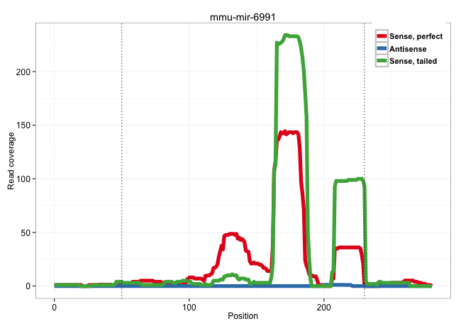 | TGAGGAGGGGGGAGGGGCAGAGGAGGCGGAGCCAGAGGAGGAGTGGTGGGGTGAGCCTGTGGATGGGTCGGAGCAACTGGCAAGGGAGAGAGGGCAGGGCTCGGAGGGAAGGGTGGTGAGGATGGAAGGCTGTAGAGAGACGGGAGGATGGGACCTGAAGAGCAGTGGAGAACAGGGACTGGGCCTGATTGATGGCACTCGCTCCAAGGCAGCCCTTTGTTCTTCTCCAGGCGACGCGCCGCTGTCCCCTGGAGCTCCGTCGGAGAGACCCGCGGAGGAA .....................................................................................................................................................................((((((...(((((.(((.(((.(((..(((....))).)))..))))))...)))))))))))................................................... ................................................................................................................................................................161..................................................................230................................................ | Size | Perfect hit | Total Norm | Perfect Norm | SRR391852(GSM852147) gender: femalegenotype/variation: ADAR2-/-tis. (embryo) | SRR391853(GSM852148) gender: femalegenotype/variation: ADAR2-/-/AD. (embryo) | SRR546155(SRX180174) Global profiling of miRNA and the hairpin pre. (ago2 Neuroblastoma) | SRR391851(GSM852146) gender: femalegenotype/variation: wild typeti. (embryo) | SRR346424(SRX098266) Global profiling of miRNA and the hairpin pre. (Neuroblastoma) | SRR402760(SRX117943) source: ES E14 male cells. (ESC) | SRR345197(SRX097258) source: size fractionated RNA from mouse hipp. (brain) | mjTestesKO6() Testes Data. (Zcchc11 testes) | SRR391848(GSM852143) gender: femalegenotype/variation: wild typeti. (embryo) | mjTestesKO7() Testes Data. (Zcchc11 testes) | SRR345201(SRX097262) source: size fractionated RNA from mouse hipp. (brain) | SRR391847(GSM852142) gender: femalegenotype/variation: ADAR2-/-/AD. (embryo) | Ago1IP812(Rui) Quantitative functions of Argonaute proteins . (ago1 skin) | SRR345198(SRX097259) source: size fractionated RNA from mouse hipp. (brain) | SRR391845(GSM852140) gender: femalegenotype/variation: wild typeti. (embryo) | SRR279904(GSM689054) cell type: mouse embryonic stem cellcell line. (ESC) | GSM314557(GSM314557) ESC dgcr8 (Illumina). (ESC) | Ago1IP517(Rui) Quantitative functions of Argonaute proteins . (ago1 skin) | mjTestesWT3() Testes Data. (testes) | Ago3IP812(Rui) Quantitative functions of Argonaute proteins . (ago3 skin) | SRR402762(SRX117945) source: ES E14 male cells. (ESC) | Ago3IP805(Rui) Quantitative functions of Argonaute proteins . (ago3 skin) | SRR029043(GSM433295) 18.5dpc_homo_tdrd1-KO. (tdrd1 testes) | SRR279907(GSM689057) cell type: mouse embryonic stem cellcell line. (ESC) | SRR391850(GSM852145) gender: femalegenotype/variation: ADAR2-/-/AD. (embryo) | SRR402766(SRX117949) source: ES PGK female cells. (ESC) | SRR042474(GSM539866) mouse embryonic stem cells [09-002]. (ESC) | SRR346425(SRX098267) Global profiling of miRNA and the hairpin pre. (Neuroblastoma) | SRR390299(GSM849857) cell line: NIH-3T3cell type: fibroblastip ant. (ago2 fibroblast) | mjTestesWT2() Testes Data. (testes) | SRR042443(GSM539835) mouse pro B cells [09-002]. (b cell) | SRR390300(GSM849858) cell line: NIH-3T3cell type: fibroblastinfect. (ago2 fibroblast) | mjTestesKO8() Testes Data. (Zcchc11 testes) | SRR553583(SRX182789) source: Cerebellum. (Cerebellum) | SRR345202(SRX097263) source: size fractionated RNA from mouse hipp. (brain) | SRR391849(GSM852144) gender: femalegenotype/variation: ADAR2-/-tis. (embryo) | SRR553582(SRX182788) source: Brain. (Brain) | SRR042467(GSM539859) mouse T cells activated in vitro with Concanavalin A [09-002]. (spleen) | SRR394083(GSM855969) "background strain: C57BL6/SV129cell type: KR. (cell line) | mjLiverWT3() Liver Data. (liver) | SRR248525(GSM733813) cell type: Thy1- spermatogonial stem cellstra. (testes) | SRR039185(GSM485325) shLuc.1309;ROSA-rtTA (-dox). (fibroblast) | SRR391846(GSM852141) gender: femalegenotype/variation: ADAR2-/-tis. (embryo) | SRR042471(GSM539863) mouse TFHS cells [09-002]. (spleen) | SRR345203(SRX097264) source: size fractionated RNA from mouse hipp. (brain) | SRR038742(GSM527277) small RNA-Seq. (dgcr8 brain) | SRR345200(SRX097261) source: size fractionated RNA from mouse hipp. (brain) | SRR306532(GSM750575) 19-24nt. (ago2 brain) | SRR394084(GSM855970) "background strain: C57BL6/SV129cell type: KR. (dicer cell line) | SRR038743(GSM527278) small RNA-Seq. (dicer brain) | SRR345199(SRX097260) source: size fractionated RNA from mouse hipp. (brain) | SRR345196(SRX097257) source: size fractionated RNA from mouse hipp. (brain) | SRR042444(GSM539836) mouse pre B cells [09-002]. (b cell) | SRR306533(GSM750576) 19-24nt. (ago2 brain) | SRR042447(GSM539839) mouse mature B cells (spleen) replicate 2 [09-002]. (b cell) | SRR346423(SRX098265) Global profiling of miRNA and the hairpin pre. (Brain) | SRR038741(GSM527276) small RNA-Seq. (brain) | mjTestesKO5() Testes Data. (Zcchc11 testes) | SRR248524(GSM733812) cell type: Thy1+ spermatogonial stem cellstra. (testes) | SRR042469(GSM539861) mouse Th2 cells [09-002]. (lymph) | SRR279903(GSM689053) cell type: mouse embryonic stem cellcell line. (ESC) | SRR346417(SRX098258) Global profiling of miRNA and the hairpin pre. (Brain) | SRR402761(SRX117944) source: ES E14 male cells. (ESC) | SRR039154(GSM471931) HL1_siSrf2_smallRNAseq. (muscle) | SRR279906(GSM689056) cell type: mouse embryonic stem cellcell line. (ESC) | SRR345207(SRX097268) source: size fractionated RNA from mouse hipp. (brain) | SRR248526(GSM733814) cell type: Thy1- spermatogonial stem cellstra. (testes) | SRR014232(GSM319956) 16.5 dpc MILI. (mili testes) | SRR206939(GSM723280) other. (brain) | SRR346419(SRX098260) Global profiling of miRNA and the hairpin pre. (Lung) | SRR042484(GSM539876) mouse salivary gland tissue [09-002]. (gland) | SRR042486(GSM539878) mouse ovaries [09-002]. (ovary) | SRR069809(GSM610965) small RNA sequencing; sample 1. (testes) | SRR014229(GSM319953) 10 dpp MILI. (mili testes) | SRR306536(GSM750579) 19-24nt. (ago2 brain) | GSM509277(GSM509277) small RNA cloning by length. (piw