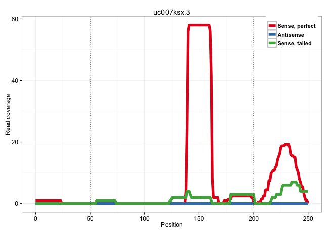 | ACAGAAGGCTGATCTGAGTTTGGTACTTTGAACTCCTTAAATTTGCATGGTCTTAATGTTAAATCTCATTTATACTTTTGAGGTATTTTTATGCTATTAGAGATACAAGACAGCAAGGTGGGTCGATTTTTTTTTTTCTTTGAAAACGGTAGCACAGATGTTAGGAATTCTCCTTTAACTTCCATGCTGTTGTTTTTCAGACCCCTCTTCAGTTCATGAGAAGAAGAGAAGGGATCGGGAAGAAAGACAG ............................................................................................................................................(((((((..(((((..((.(((((((....))))..))).))..)))))..))))).))................................................... .......................................................................................................................................136.............................................................200................................................ | Size | Perfect hit | Total Norm | Perfect Norm | SRR279907(GSM689057) cell type: mouse embryonic stem cellcell line. (ESC) | SRR391846(GSM852141) gender: femalegenotype/variation: ADAR2-/-tis. (embryo) | SRR042449(GSM539841) mouse B cells activated in vitro with LPS/IL4 replicate 2 [09-002]. (b cell) | SRR023852(GSM307161) ZHBT-c424hsmallrna_rep1. (cell line) | SRR042468(GSM539860) mouse Th1 cells [09-002]. (lymph) | SRR065059(SRR065059) Tissue-specific Regulation of Mouse MicroRNA . (pancreas) | SRR363959(GSM822761) AdultSmall RNA Miwi IPread_length: 36. (testes) | SRR391845(GSM852140) gender: femalegenotype/variation: wild typeti. (embryo) | SRR042469(GSM539861) mouse Th2 cells [09-002]. (lymph) | SRR042448(GSM539840) mouse B cells activated in vitro with LPS/IL4 replicate 1 [09-002]. (b cell) | SRR038744(GSM527279) small RNA-Seq. (brain) | SRR065055(SRR065055) Tissue-specific Regulation of Mouse MicroRNA . (jejunum) | SRR065053(SRR065053) Tissue-specific Regulation of Mouse MicroRNA . (jejunum) | SRR040488(GSM533911) E18.5 wild type LIVER small RNA. (liver) | SRR073954(GSM629280) total RNA. (blood) | SRR306532(GSM750575) 19-24nt. (ago2 brain) | SRR042463(GSM539855) mouse natural killer cells [09-002]. (spleen) | SRR037925(GSM510463) e9p5_rep3. (embryo) | SRR073955(GSM629281) total RNA. (blood) | SRR034119(GSM466729) Mili IP_Tdrd9+/- replicate2. (mili testes) | SRR039185(GSM485325) shLuc.1309;ROSA-rtTA (-dox). (fibroblast) | SRR391847(GSM852142) gender: femalegenotype/variation: ADAR2-/-/AD. (embryo) | SRR279905(GSM689055) cell type: mouse embryonic stem cellcell line. (ESC) | GSM314557(GSM314557) ESC dgcr8 (Illumina). (ESC) | SRR059770(GSM562832) Treg_Dicer. (spleen) | SRR065052(SRR065052) Tissue-specific Regulation of Mouse MicroRNA . (jejunum) | GSM509280(GSM509280) small RNA cloning by length. (testes) | SRR042454(GSM539846) mouse germinal center B cells (lymph node) [09-002]. (b cell) | SRR042470(GSM539862) mouse Th17 cells [09-002]. (lymph) | GSM510444(GSM510444) brain_rep5. (brain) | SRR065054(SRR065054) Tissue-specific Regulation of Mouse MicroRNA . (jejunum) | SRR391848(GSM852143) gender: femalegenotype/variation: wild typeti. (embryo) | SRR042477(GSM539869) mouse brain tissue [09-002]. (brain) | SRR345202(SRX097263) source: size fractionated RNA from mouse hipp. (brain) | SRR306530(GSM750573) 19-24nt. (ago2 brain) | SRR034118(GSM466728) Mili IP_Tdrd9+/- replicate1. (mili testes) | SRR042471(GSM539863) mouse TFHS cells [09-002]. (spleen) | SRR095855BC6(SRX039178) sequencing of miRNA from wild type and diseas. (heart) | SRR279903(GSM689053) cell type: mouse embryonic stem cellcell line. (ESC) | SRR042481(GSM539873) mouse pancreatic tissue [09-002]. (pancreas) | SRR391851(GSM852146) gender: femalegenotype/variation: wild typeti. (embryo) | SRR279906(GSM689056) cell type: mouse embryonic stem cellcell line. (ESC) | SRR029042(GSM433294) 18.5dpc_hetero_tdrd1-KO. (tdrd1 testes) | SRR069809(GSM610965) small RNA sequencing; sample 1. (testes) | SRR042483(GSM539875) mouse muscle tissue [09-002]. (muscle) | SRR042458(GSM539850) mouse basophil cells [09-002]. (b cell) | SRR345207(SRX097268) source: size fractionated RNA from mouse hipp. (brain) | SRR023850(GSM307159) ZHBT-c40hsmallrna_rep1. (cell line) | SRR029043(GSM433295) 18.5dpc_homo_tdrd1-KO. (tdrd1 testes) | SRR069811(GSM610967) small RNA sequencing; sample 3. (testes) | SRR037903(GSM510439) testes_rep4. (testes) | GSM314552(GSM314552) ESC wild type (Illumina). (ESC) | SRR037937(GSM510475) 293cand2. (cell line) | SRR546155(SRX180174) Global profiling of miRNA and the hairpin pre. (ago2 Neuroblastoma) | SRR279904(GSM689054) cell type: mouse embryonic stem cellcell line. (ESC) | SRR042459(GSM539851) mouse neutrophil cells replicate 1 [09-002]. (blood) | SRR042488(GSM539880) mouse BclXL germinal center B cells [BalbC] [09-002]. (B cell) | SRR037914(GSM510451) newborn_rep7. (total RNA) | SRR039154(GSM471931) HL1_siSrf2_smallRNAseq. (muscle) | SRR306542(GSM750585) 19-24nt. (ago2 brain) | SRR039152(GSM471929) HL1_siNon_smallRNAseq. (muscle) | SRR391850(GSM852145) gender: femalegenotype/variation: ADAR2-/-/AD. (embryo) | SRR345201(SRX097262) source: size fractionated RNA from mouse hipp. (brain) | SRR040489(GSM533912) E18.5 Ago2 catalytically inactive LIVER small RNA. (ago2 liver) | SRR206941(GSM723282) other. (brain) | SRR037938(GSM510476) 293Red. (cell line) | SRR059766(GSM562828) DN3_Drosha. (thymus) | GSM475279(GSM475279) Miwi-IP. (miwi testes) | SRR069810(GSM610966) small RNA sequencing; sample 2. (testes) | SRR037906(GSM510442) brain_rep3. (brain) | SRR553583(SRX182789) source: Cerebellum. (Cerebellum) | SRR037924(GSM510462) e9p5_rep2. (embryo) | SRR042474(GSM539866) mouse embryonic stem cells [09-002]. (ESC) | SRR042487(GSM539879) mouse BclXL B activated with LPS/IL4 [BalbC] [09-002]. (spleen) | SRR346416(SRX098257) Global profiling of miRNA and the hairpin pre. (Kidney) | SRR042450(GSM539842) mouse B cells activated in vitro with LPS/IL4 replicate 3 [09-002]. (b cell) |