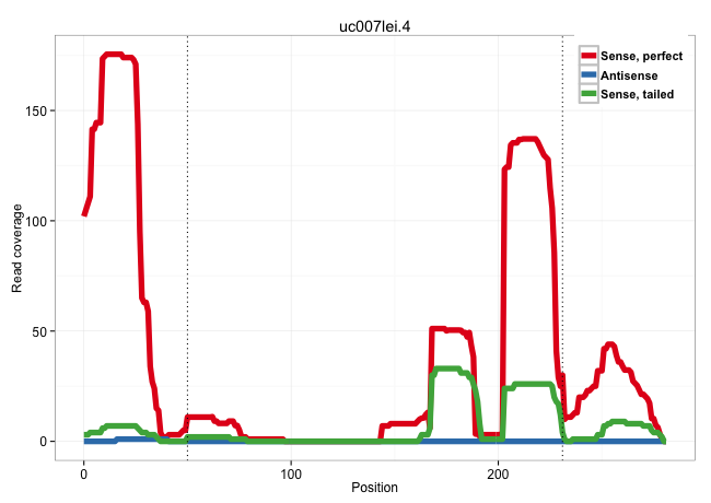 | TGCATGACCTGTAACCGCCACGGATGCCGACAAGCTTTCCATGTCACCTGGTGAGATCTCAGAGCCCGGCTGCTGGGAGGTTCAAGGTGGCCACCGAGTGGGAGCATCCTACCTCCTGTCTCGTGCGAGACGGCAGCCACGCCATGCTTAGGTCTTGGGTCCAGGAGGAAGGAGGTGGGGGGCTGCTGTGGTTTGTTTGTGGCTGCACCCTTCTGACCCACTTCTCCTCAGTGCCCAGATGGCTGGCCTGCTGTGTGAGGAAGAAGTCCTGGAGGTGGACA ....................................................................................................................................................................(((((..((((((((((((.((..(((.....)))..)).)).))).......)))))))))))).................................................... ...................................................................................................................................................................164................................................................231................................................ | Size | Perfect hit | Total Norm | Perfect Norm | SRR069809(GSM610965) small RNA sequencing; sample 1. (testes) | GSM314557(GSM314557) ESC dgcr8 (Illumina). (ESC) | SRR034118(GSM466728) Mili IP_Tdrd9+/- replicate1. (mili testes) | SRR034119(GSM466729) Mili IP_Tdrd9+/- replicate2. (mili testes) | SRR546155(SRX180174) Global profiling of miRNA and the hairpin pre. (ago2 Neuroblastoma) | SRR553583(SRX182789) source: Cerebellum. (Cerebellum) | SRR034121(GSM466731) Mili IP_Tdrd9-/- replicate2. (mili testes) | mjTestesWT1() Testes Data. (testes) | SRR248523(GSM733811) cell type: Thy1+ spermatogonial stem cellstra. (testes) | SRR014235(GSM319959) 2 dpp total. (testes) | SRR402762(SRX117945) source: ES E14 male cells. (ESC) | SRR034120(GSM466730) Mili IP_Tdrd9-/- replicate1. (mili testes) | SRR402760(SRX117943) source: ES E14 male cells. (ESC) | SRR346417(SRX098258) Global profiling of miRNA and the hairpin pre. (Brain) | mjLiverKO1() Liver Data. (Zcchc11 liver) | SRR248524(GSM733812) cell type: Thy1+ spermatogonial stem cellstra. (testes) | SRR014236(GSM319960) 10 dpp total. (testes) | SRR206942(GSM723283) other. (brain) | SRR206941(GSM723282) other. (brain) | SRR390297(GSM849855) cell line: NIH-3T3cell type: fibroblastip ant. (fibroblast) | SRR042449(GSM539841) mouse B cells activated in vitro with LPS/IL4 replicate 2 [09-002]. (b cell) | SRR042471(GSM539863) mouse TFHS cells [09-002]. (spleen) | SRR038742(GSM527277) small RNA-Seq. (dgcr8 brain) | SRR037937(GSM510475) 293cand2. (cell line) | SRR073954(GSM629280) total RNA. (blood) | SRR059769(GSM562831) Treg_Drosha. (spleen) | GSM509280(GSM509280) small RNA cloning by length. (testes) | Ago1IP812(Rui) Quantitative functions of Argonaute proteins . (ago1 skin) | SRR042470(GSM539862) mouse Th17 cells [09-002]. (lymph) | SRR042467(GSM539859) mouse T cells activated in vitro with Concanavalin A [09-002]. (spleen) | SRR402766(SRX117949) source: ES PGK female cells. (ESC) | SRR023852(GSM307161) ZHBT-c424hsmallrna_rep1. (cell line) | SRR206940(GSM723281) other. (brain) | SRR248526(GSM733814) cell type: Thy1- spermatogonial stem cellstra. (testes) | SRR042450(GSM539842) mouse B cells activated in vitro with LPS/IL4 replicate 3 [09-002]. (b cell) | SRR029037(GSM433289) 18dpp_homo_tdrd6-KO. (tdrd6 testes) | Ago1IP517(Rui) Quantitative functions of Argonaute proteins . (ago1 skin) | SRR028732(GSM400969) Mili-Tdrd1 KO associated. (mili testes) | mjTestesKO8() Testes Data. (Zcchc11 testes) | GSM314552(GSM314552) ESC wild type (Illumina). (ESC) | SRR346424(SRX098266) Global profiling of miRNA and the hairpin pre. (Neuroblastoma) | SRR014231(GSM319955) 16.5 dpc total. (testes) | SRR023851(GSM307160) ZHBT-c412hsmallrna_rep1. (cell line) | SRR038741(GSM527276) small RNA-Seq. (brain) | SRR023847(GSM307156) mESv6.5smallrna_rep1. (cell line) | SRR042474(GSM539866) mouse embryonic stem cells [09-002]. (ESC) | SRR306526(GSM750569) 19-24nt. (ago2 brain) | SRR042487(GSM539879) mouse BclXL B activated with LPS/IL4 [BalbC] [09-002]. (spleen) | SRR042469(GSM539861) mouse Th2 cells [09-002]. (lymph) | SRR391853(GSM852148) gender: femalegenotype/variation: ADAR2-/-/AD. (embryo) | SRR391851(GSM852146) gender: femalegenotype/variation: wild typeti. (embryo) | SRR029042(GSM433294) 18.5dpc_hetero_tdrd1-KO. (tdrd1 testes) | SRR038744(GSM527279) small RNA-Seq. (brain) | SRR042458(GSM539850) mouse basophil cells [09-002]. (b cell) | SRR402761(SRX117944) source: ES E14 male cells. (ESC) | Ago3IP805(Rui) Quantitative functions of Argonaute proteins . (ago3 skin) | SRR279907(GSM689057) cell type: mouse embryonic stem cellcell line. (ESC) | SRR345200(SRX097261) source: size fractionated RNA from mouse hipp. (brain) | SRR206939(GSM723280) other. (brain) | SRR042447(GSM539839) mouse mature B cells (spleen) replicate 2 [09-002]. (b cell) | SRR042451(GSM539843) mouse B cells activated in vitro with LPS/aIgD-Dextran [09-002]. (b cell) | SRR042446(GSM539838) mouse mature B cells (spleen) replicate 1 [09-002]. (b cell) | SRR345201(SRX097262) source: size fractionated RNA from mouse hipp. (brain) | SRR042445(GSM539837) mouse immature B cells [09-002]. (b cell) | SRR042461(GSM539853) mouse dendritic cells [09-002]. (bone marrow) | SRR345204(SRX097265) source: size fractionated RNA from mouse hipp. (brain) | SRR525244(SRA056111/SRX170320) Mus musculus domesticus miRNA sequencing. (ago2 Blood) | SRR345199(SRX097260) source: size fractionated RNA from mouse hipp. (brain) | SRR059770(GSM562832) Treg_Dicer. (spleen) | mjTestesKO7() Testes Data. (Zcchc11 testes) | SRR042454(GSM539846) mouse germinal center B cells (lymph node) [09-002]. (b cell) | GSM510444(GSM510444) brain_rep5. (brain) | SRR391846(GSM852141) gender: femalegenotype/variation: ADAR2-/-tis. (embryo) | SRR042477(GSM539869) mouse brain tissue [09-002]. (brain) | SRR042465(GSM539857) mouse CD4+ T cells (spleen) [09-002]. (spleen) | SRR037929(GSM510467) e7p5_rep3. (embryo) | SRR029041(GSM433293) 6w_homo_tdrd6-KO. (tdrd6 testes) | SRR038743(GSM527278) small RNA-Seq. (dicer brain) | SRR391849(GSM852144) gender: femalegenotype/variation: ADAR2-/-tis. (embryo) | mjTestesKO6() Testes Data. (Zcchc11 testes) |