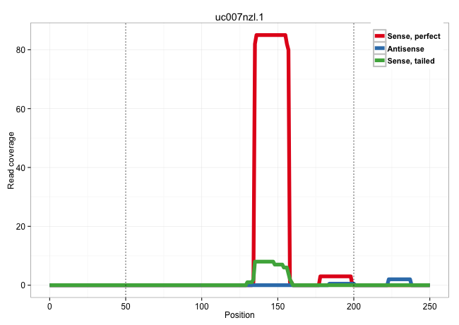 | ATGGCACTGCTGCTACTGGTCATGAAGAGGCCCAAACTGCCTCACTGGTTTAAGTTACTTGGGCAAGATGCCCAAGTTCAGCCTCCTTTATTATAGATAATTTGGAGTGGCTCTACAAGGCTTACAGATCAGTTATTGGAGGATGGGTCTTTGTGTGTGTGTGTGTTCATGAAATTACTGACTAGTCTCTTCCTCCACAGGAAGAGAACAGGCCAGTAGGTGGGTTTTCTCTTCGTGGTTCCCTTGTGTC ........................................................................................................................................(((((((.(((.((....(((..((((....))))....))).....)).))).)))))))..................................................... ..................................................................................................................................131..................................................................200................................................ | Size | Perfect hit | Total Norm | Perfect Norm | Ago2IP517(Rui) Quantitative functions of Argonaute proteins . (ago2 skin) | Ago1IP812(Rui) Quantitative functions of Argonaute proteins . (ago1 skin) | Ago3IP812(Rui) Quantitative functions of Argonaute proteins . (ago3 skin) | Ago1IP517(Rui) Quantitative functions of Argonaute proteins . (ago1 skin) | Ago3IP805(Rui) Quantitative functions of Argonaute proteins . (ago3 skin) | SRR040489(GSM533912) E18.5 Ago2 catalytically inactive LIVER small RNA. (ago2 liver) | SRR402760(SRX117943) source: ES E14 male cells. (ESC) | SRR073955(GSM629281) total RNA. (blood) | SRR037907(GSM510443) brain_rep4. (brain) | SRR073954(GSM629280) total RNA. (blood) | SRR391845(GSM852140) gender: femalegenotype/variation: wild typeti. (embryo) | GSM640582(GSM640582) small RNA in the liver with paternal control . (liver) | SRR391846(GSM852141) gender: femalegenotype/variation: ADAR2-/-tis. (embryo) | SRR345205(SRX097266) source: size fractionated RNA from mouse hipp. (brain) | SRR042484(GSM539876) mouse salivary gland tissue [09-002]. (gland) | Ago2IP504(Rui) Quantitative functions of Argonaute proteins . (ago2 skin) | RuiDGCR8WT(Rui) DGCR8-dependent microRNA biogenesis is essent. (skin) | SRR553583(SRX182789) source: Cerebellum. (Cerebellum) | SRR039153(GSM471930) HL1_siSrf1_smallRNAseq. (muscle) | SRR546155(SRX180174) Global profiling of miRNA and the hairpin pre. (ago2 Neuroblastoma) | GSM314553(GSM314553) ESC dcr (Illumina). (ESC) |