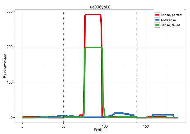 | GCTTCTCTGTGCAGCGCTGCTGCTGCTGGCCACCAGCCGCCTGGCCACAGGTAGGTCTCGCCACTGCCACTGGGGGAGGAGGGACCTCTGGTGAGCGCAGCCTCCCACAGTCCCGCTGACCAAGAGTCTTCTCCCATAGGGGCGCCTATCGCCAATGAGCTGCGCTGTCAGTGCCTGCAGACCATGGCT .........................................................................(((((((((...(((((((.((((..((........))..)))).)))).))))))))))))...................................................... .......................................................................72.................................................................139................................................ | Size | Perfect hit | Total Norm | Perfect Norm | mjLiverKO2() Liver Data. (Zcchc11 liver) | mjTestesWT1() Testes Data. (testes) | mjLiverWT1() Liver Data. (liver) | mjLiverKO3() Liver Data. (Zcchc11 liver) | SRR346424(SRX098266) Global profiling of miRNA and the hairpin pre. (Neuroblastoma) | SRR390300(GSM849858) cell line: NIH-3T3cell type: fibroblastinfect. (ago2 fibroblast) | mjLiverWT3() Liver Data. (liver) | SRR546155(SRX180174) Global profiling of miRNA and the hairpin pre. (ago2 Neuroblastoma) | mjLiverKO1() Liver Data. (Zcchc11 liver) | SRR248527(GSM733815) cell type: spermatogonial stem cell enriched . (testes) | mjTestesWT4() Testes Data. (testes) | mjTestesWT3() Testes Data. (testes) | SRR059775(GSM562837) MEF_Drosha. (MEF) | mjTestesWT2() Testes Data. (testes) | SRR248524(GSM733812) cell type: Thy1+ spermatogonial stem cellstra. (testes) | SRR553602(SRX182808) source: Sertoli cells. (Sertoli cells) | SRR390297(GSM849855) cell line: NIH-3T3cell type: fibroblastip ant. (fibroblast) | SRR042462(GSM539854) mouse macrophages [09-002]. (bone marrow) | SRR039183(GSM485323) shLuc.1309 (-dox). (fibroblast) | SRR685340(GSM1079784) "Small RNAs (15-50 nts in length) from immort. (dicer cell line) | SRR346425(SRX098267) Global profiling of miRNA and the hairpin pre. (Neuroblastoma) | SRR042475(GSM539867) mouse embryonic fibroblast cells [09-002]. (fibroblast) | SRR346421(SRX098263) Global profiling of miRNA and the hairpin pre. (mixture) | SRR029123(GSM416611) NIH3T3. (cell line) | SRR346418(SRX098259) Global profiling of miRNA and the hairpin pre. (Liver) | SRR040488(GSM533911) E18.5 wild type LIVER small RNA. (liver) | SRR390299(GSM849857) cell line: NIH-3T3cell type: fibroblastip ant. (ago2 fibroblast) | SRR553585(SRX182791) source: Kidney. (Kidney) | SRR042471(GSM539863) mouse TFHS cells [09-002]. (spleen) | GSM640579(GSM640579) small RNA in the liver with paternal Low pro. (liver) | SRR029043(GSM433295) 18.5dpc_homo_tdrd1-KO. (tdrd1 testes) | SRR042461(GSM539853) mouse dendritic cells [09-002]. (bone marrow) | SRR037921(GSM510459) e12p5_rep3. (embryo) | SRR029037(GSM433289) 18dpp_homo_tdrd6-KO. (tdrd6 testes) | SRR039184(GSM485324) shLuc.1309 (+dox). (fibroblast) | mjTestesKO7() Testes Data. (Zcchc11 testes) | SRR039154(GSM471931) HL1_siSrf2_smallRNAseq. (muscle) | SRR014230(GSM319954) 10 dpp Dnmt3L-KO MILI. (mili testes) | GSM475281(GSM475281) total RNA. (testes) | SRR039152(GSM471929) HL1_siNon_smallRNAseq. (muscle) | SRR391850(GSM852145) gender: femalegenotype/variation: ADAR2-/-/AD. (embryo) | GSM640581(GSM640581) small RNA in the liver with paternal control. (liver) | SRR345201(SRX097262) source: size fractionated RNA from mouse hipp. (brain) | SRR040489(GSM533912) E18.5 Ago2 catalytically inactive LIVER small RNA. (ago2 liver) | SRR391849(GSM852144) gender: femalegenotype/variation: ADAR2-/-tis. (embryo) | SRR034118(GSM466728) Mili IP_Tdrd9+/- replicate1. (mili testes) | SRR029036(GSM433288) 18dpp_hetero_tdrd6-KO. (tdrd6 testes) | SRR032476(GSM485234) sRNA_delayed_deep_sequencing. (uterus) | SRR391851(GSM852146) gender: femalegenotype/variation: wild typeti. (embryo) | SRR029042(GSM433294) 18.5dpc_hetero_tdrd1-KO. (tdrd1 testes) | SRR069809(GSM610965) small RNA sequencing; sample 1. (testes) | GSM640578(GSM640578) small RNA in the liver with paternal control. (liver) | SRR065048(SRR065048) Tissue-specific Regulation of Mouse MicroRNA . (liver) | SRR039185(GSM485325) shLuc.1309;ROSA-rtTA (-dox). (fibroblast) | Ago2IP517(Rui) Quantitative functions of Argonaute proteins . (ago2 skin) | mjTestesKO5() Testes Data. (Zcchc11 testes) | SRR042456(GSM539848) mouse hematopoetic progenitor cells [09-002]. (bone marrow) | SRR391852(GSM852147) gender: femalegenotype/variation: ADAR2-/-tis. (embryo) | SRR077866(GSM637803) 18-30 nt small RNAs. (liver) | GSM640580(GSM640580) small RNA in the liver with paternal Low pro. (liver) | SRR038744(GSM527279) small RNA-Seq. (brain) |