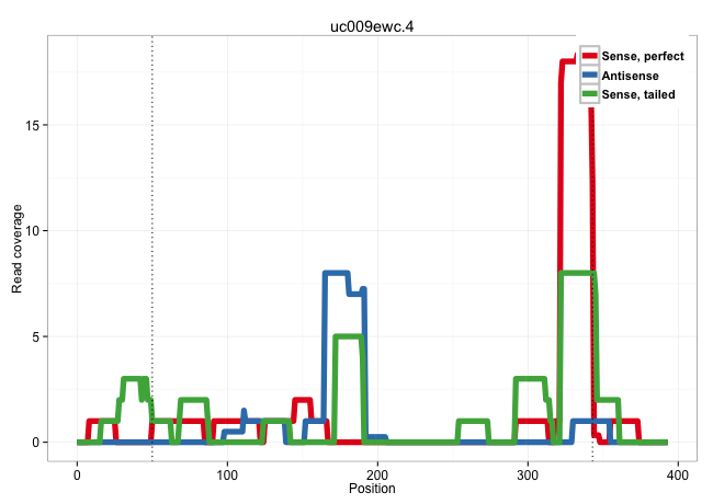 | TCTTCTTCGACGAAGACATCGGGGAAAATTCAGGAAAGATGGTGAGGAGGGTATGTGTAACTTGGGTCTCAGGAGGTGGTGTGTCTCCCTGTGAACATCGAAGCAGGCGCTCAGACACCAGCCATAGGGAAAGCTCAACCTGGGGCAGGGTAGCTTAGAAACGTGCAGATCACAGATCAGAAGGCAATTGGTCTCAGAATCTATGCAATGCCTGTGAACATTACCATGTTCTGGGACATTTCCTCACTCAGCCTTGTGTTGCAAAGACCCCTTCCTTCCTTCCCTGAACATGCCCAGGGGAGGGGCTTCCCATCCTCCTAGCTGAGACTCCCCTCCCTTGCAGTCCAGAAAGAGAAAGACTTGCAACTTTCTTCAGGAGCTGAAGAGCCCATA .......................................................................................................................................................................((((...))))..((((.....((((((((..(((.(((((((((((.((((((....)))))).((((....))))....)))....)))))))).)))........(((((((((((........)))))))))))................))))))))......))))...................................................... .......................................................................................................................................................................168............................................................................................................................................................................343................................................ | Size | Perfect hit | Total Norm | Perfect Norm | GSM519104(GSM519104) mouse_granulocyte_nuclei_smallRNAs. (cell line) | SRR042459(GSM539851) mouse neutrophil cells replicate 1 [09-002]. (blood) | mjTestesWT1() Testes Data. (testes) | SRR345200(SRX097261) source: size fractionated RNA from mouse hipp. (brain) | SRR345197(SRX097258) source: size fractionated RNA from mouse hipp. (brain) | SRR042458(GSM539850) mouse basophil cells [09-002]. (b cell) | mjTestesWT3() Testes Data. (testes) | SRR069834(GSM304914) Analysis of small RNAs in murine neutrophils cultured in vitro by Solexa/Illumina genome analyzer. (blood) | GSM510456(GSM510456) newborn_rep12. (total RNA) | SRR279904(GSM689054) cell type: mouse embryonic stem cellcell line. (ESC) | mjTestesWT2() Testes Data. (testes) | SRR042447(GSM539839) mouse mature B cells (spleen) replicate 2 [09-002]. (b cell) | SRR040488(GSM533911) E18.5 wild type LIVER small RNA. (liver) | SRR042483(GSM539875) mouse muscle tissue [09-002]. (muscle) | SRR042462(GSM539854) mouse macrophages [09-002]. (bone marrow) | SRR248524(GSM733812) cell type: Thy1+ spermatogonial stem cellstra. (testes) | SRR059769(GSM562831) Treg_Drosha. (spleen) | SRR345199(SRX097260) source: size fractionated RNA from mouse hipp. (brain) | SRR042463(GSM539855) mouse natural killer cells [09-002]. (spleen) | SRR042484(GSM539876) mouse salivary gland tissue [09-002]. (gland) | SRR029041(GSM433293) 6w_homo_tdrd6-KO. (tdrd6 testes) | SRR037901(GSM510437) testes_rep2. (testes) | SRR391852(GSM852147) gender: femalegenotype/variation: ADAR2-/-tis. (embryo) | SRR042460(GSM539852) mouse neutrophil cells replicate 2 [09-002]. (blood) | SRR037897(GSM510433) ovary_rep2. (ovary) | GSM510455(GSM510455) newborn_rep11. (total RNA) | SRR306534(GSM750577) 19-24nt. (ago2 brain) | SRR345198(SRX097259) source: size fractionated RNA from mouse hipp. (brain) | SRR346423(SRX098265) Global profiling of miRNA and the hairpin pre. (Brain) |