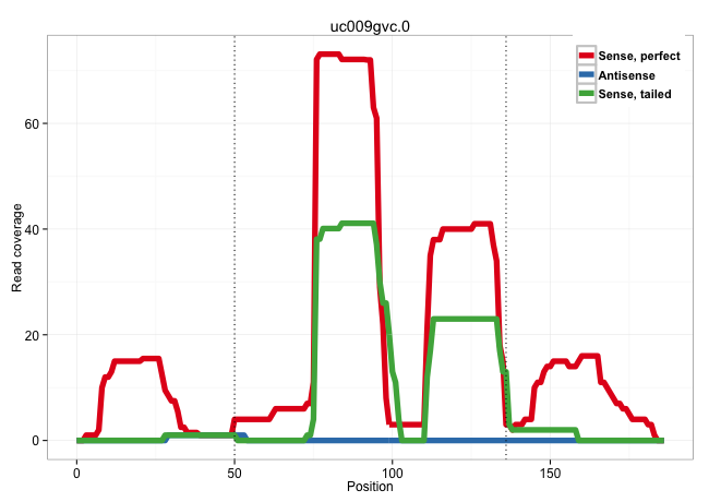 | CACACAGTACATGAAGGAGTACCAAGATGCCTTCCTCTTCAATGAGCTCAGTGAGTGTCACCCTGGCTGCTAGTGCTGTGGGAGAGGGCTGTGCGGGAGCGCTCAGCTCACTCACGCTGGCTCCCTCTCTCTGCAGAAGGCGAAACAATGGACACCTCCTGAGCTGACCTGACACCCCAGCCCTTC .........................................................................(((...(((((((((..((((....)))).((((........))))...))))))))).)))................................................... .......................................................................72..............................................................136................................................ | Size | Perfect hit | Total Norm | Perfect Norm | SRR279907(GSM689057) cell type: mouse embryonic stem cellcell line. (ESC) | SRR546155(SRX180174) Global profiling of miRNA and the hairpin pre. (ago2 Neuroblastoma) | SRR390300(GSM849858) cell line: NIH-3T3cell type: fibroblastinfect. (ago2 fibroblast) | SRR391851(GSM852146) gender: femalegenotype/variation: wild typeti. (embryo) | SRR040488(GSM533911) E18.5 wild type LIVER small RNA. (liver) | SRR346418(SRX098259) Global profiling of miRNA and the hairpin pre. (Liver) | mjTestesWT1() Testes Data. (testes) | SRR042463(GSM539855) mouse natural killer cells [09-002]. (spleen) | GSM314557(GSM314557) ESC dgcr8 (Illumina). (ESC) | SRR390297(GSM849855) cell line: NIH-3T3cell type: fibroblastip ant. (fibroblast) | SRR029123(GSM416611) NIH3T3. (cell line) | SRR346424(SRX098266) Global profiling of miRNA and the hairpin pre. (Neuroblastoma) | SRR391850(GSM852145) gender: femalegenotype/variation: ADAR2-/-/AD. (embryo) | SRR553583(SRX182789) source: Cerebellum. (Cerebellum) | SRR391853(GSM852148) gender: femalegenotype/variation: ADAR2-/-/AD. (embryo) | mjTestesKO6() Testes Data. (Zcchc11 testes) | SRR345203(SRX097264) source: size fractionated RNA from mouse hipp. (brain) | Ago3IP805(Rui) Quantitative functions of Argonaute proteins . (ago3 skin) | SRR038745(GSM527280) small RNA-Seq. (dgcr8 brain) | SRR391852(GSM852147) gender: femalegenotype/variation: ADAR2-/-tis. (embryo) | SRR346421(SRX098263) Global profiling of miRNA and the hairpin pre. (mixture) | SRR345198(SRX097259) source: size fractionated RNA from mouse hipp. (brain) | mjTestesKO7() Testes Data. (Zcchc11 testes) | SRR391848(GSM852143) gender: femalegenotype/variation: wild typeti. (embryo) | SRR042477(GSM539869) mouse brain tissue [09-002]. (brain) | SRR042469(GSM539861) mouse Th2 cells [09-002]. (lymph) | SRR391849(GSM852144) gender: femalegenotype/variation: ADAR2-/-tis. (embryo) | SRR279903(GSM689053) cell type: mouse embryonic stem cellcell line. (ESC) | SRR346417(SRX098258) Global profiling of miRNA and the hairpin pre. (Brain) | SRR069809(GSM610965) small RNA sequencing; sample 1. (testes) | mjTestesKO8() Testes Data. (Zcchc11 testes) | SRR248523(GSM733811) cell type: Thy1+ spermatogonial stem cellstra. (testes) | SRR042464(GSM539856) mouse CD4+CD8+ T cells (thymus) [09-002]. (thymus) | SRR042443(GSM539835) mouse pro B cells [09-002]. (b cell) | SRR042466(GSM539858) mouse CD8+ T cells (spleen) [09-002]. (spleen) | SRR306533(GSM750576) 19-24nt. (ago2 brain) | SRR279904(GSM689054) cell type: mouse embryonic stem cellcell line. (ESC) | SRR042488(GSM539880) mouse BclXL germinal center B cells [BalbC] [09-002]. (B cell) | SRR073954(GSM629280) total RNA. (blood) | SRR345201(SRX097262) source: size fractionated RNA from mouse hipp. (brain) | SRR346422(SRX098264) Global profiling of miRNA and the hairpin pre. (Muscle) | SRR059769(GSM562831) Treg_Drosha. (spleen) | SRR345204(SRX097265) source: size fractionated RNA from mouse hipp. (brain) | SRR345205(SRX097266) source: size fractionated RNA from mouse hipp. (brain) | SRR345196(SRX097257) source: size fractionated RNA from mouse hipp. (brain) | Ago1IP812(Rui) Quantitative functions of Argonaute proteins . (ago1 skin) | SRR042470(GSM539862) mouse Th17 cells [09-002]. (lymph) | SRR042454(GSM539846) mouse germinal center B cells (lymph node) [09-002]. (b cell) | SRR391846(GSM852141) gender: femalegenotype/variation: ADAR2-/-tis. (embryo) | SRR042487(GSM539879) mouse BclXL B activated with LPS/IL4 [BalbC] [09-002]. (spleen) | SRR042467(GSM539859) mouse T cells activated in vitro with Concanavalin A [09-002]. (spleen) | SRR248524(GSM733812) cell type: Thy1+ spermatogonial stem cellstra. (testes) | SRR095853(SRX039174) "sequencing of miRNA from wild type and disea. (heart) | SRR402766(SRX117949) source: ES PGK female cells. (ESC) | SRR346425(SRX098267) Global profiling of miRNA and the hairpin pre. (Neuroblastoma) | SRR028732(GSM400969) Mili-Tdrd1 KO associated. (mili testes) | SRR042471(GSM539863) mouse TFHS cells [09-002]. (spleen) | SRR042480(GSM539872) mouse kidney tissue [09-002]. (kidney) | SRR042473(GSM539865) mouse nTreg cells [09-002]. (lymph) | SRR042448(GSM539840) mouse B cells activated in vitro with LPS/IL4 replicate 1 [09-002]. (b cell) | mjTestesWT3() Testes Data. (testes) | SRR038742(GSM527277) small RNA-Seq. (dgcr8 brain) | SRR029038(GSM433290) 25dpp_hetero_tdrd6-KO. (tdrd6 testes) | GSM475280(GSM475280) Mili-IP. (mili testes) | SRR042458(GSM539850) mouse basophil cells [09-002]. (b cell) | SRR248527(GSM733815) cell type: spermatogonial stem cell enriched . (testes) | SRR345207(SRX097268) source: size fractionated RNA from mouse hipp. (brain) | SRR037922(GSM510460) e12p5_rep4. (embryo) | SRR014234(GSM319958) Ovary total. (ovary) | GSM314552(GSM314552) ESC wild type (Illumina). (ESC) | SRR042459(GSM539851) mouse neutrophil cells replicate 1 [09-002]. (blood) | SRR345200(SRX097261) source: size fractionated RNA from mouse hipp. (brain) | SRR206939(GSM723280) other. (brain) | SRR346423(SRX098265) Global profiling of miRNA and the hairpin pre. (Brain) | SRR279905(GSM689055) cell type: mouse embryonic stem cellcell line. (ESC) | SRR039154(GSM471931) HL1_siSrf2_smallRNAseq. (muscle) | SRR039186(GSM485326) shLuc.1309;ROSA-rtTA (+dox). (fibroblast) | SRR039152(GSM471929) HL1_siNon_smallRNAseq. (muscle) | SRR073955(GSM629281) total RNA. (blood) | SRR390299(GSM849857) cell line: NIH-