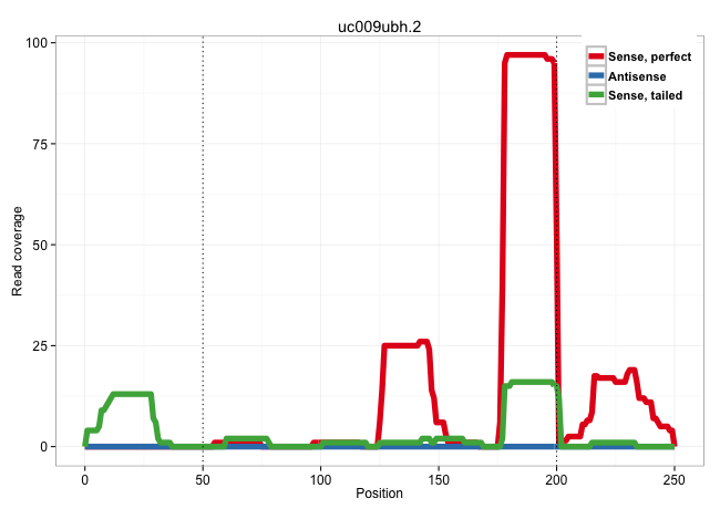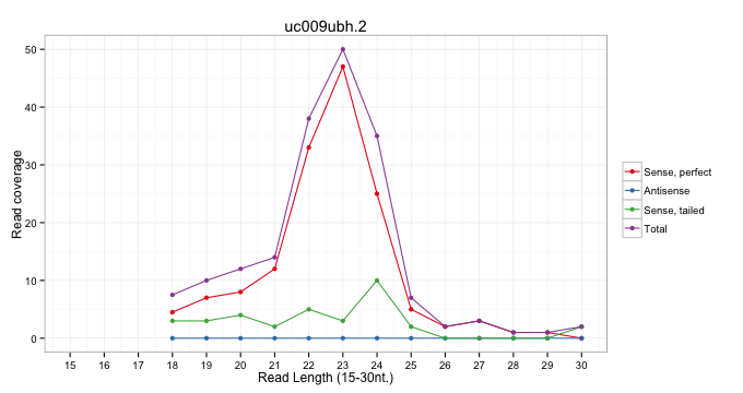 | GTGAGCATCCACTTCTGTGTTTGCTAGGCCCCGTAATTAAATCTTTACAGTTAATATTGTAAACATATAAGAGTTATTTGTTTTGGGTTACTACCTTAAGGTTTATAAATTCATCTTAATTTTCTTCATGAGAAACTGGGAATAGGAAAACGGTTGTCTTTTGTGGCTACATGAATTTCTCCTTAAACAGTTTCTCTAAGATGGTGGGGTTACCTTAGGAATGGTGCTTTTATGTGAAGCTGCTACCTCT .................................................................................................................................(((((((((.....(((((((..((.(((......))).)).....))).))))....)))))))))...................................................... ..........................................................................................................................123..........................................................................200................................................ | Size | Perfect hit | Total Norm | Perfect Norm | SRR279904(GSM689054) cell type: mouse embryonic stem cellcell line. (ESC) | SRR279905(GSM689055) cell type: mouse embryonic stem cellcell line. (ESC) | SRR685340(GSM1079784) "Small RNAs (15-50 nts in length) from immort. (dicer cell line) | SRR279906(GSM689056) cell type: mouse embryonic stem cellcell line. (ESC) | GSM261959(GSM261959) oocytesmallRNA-19to30. (oocyte) | SRR394084(GSM855970) "background strain: C57BL6/SV129cell type: KR. (dicer cell line) | SRR391852(GSM852147) gender: femalegenotype/variation: ADAR2-/-tis. (embryo) | SRR402762(SRX117945) source: ES E14 male cells. (ESC) | SRR279903(GSM689053) cell type: mouse embryonic stem cellcell line. (ESC) | SRR391851(GSM852146) gender: femalegenotype/variation: wild typeti. (embryo) | SRR391846(GSM852141) gender: femalegenotype/variation: ADAR2-/-tis. (embryo) | SRR346422(SRX098264) Global profiling of miRNA and the hairpin pre. (Muscle) | SRR391847(GSM852142) gender: femalegenotype/variation: ADAR2-/-/AD. (embryo) | GSM314553(GSM314553) ESC dcr (Illumina). (ESC) | SRR391849(GSM852144) gender: femalegenotype/variation: ADAR2-/-tis. (embryo) | SRR069809(GSM610965) small RNA sequencing; sample 1. (testes) | SRR073954(GSM629280) total RNA. (blood) | SRR039154(GSM471931) HL1_siSrf2_smallRNAseq. (muscle) | mjLiverWT3() Liver Data. (liver) | GSM509280(GSM509280) small RNA cloning by length. (testes) | SRR391848(GSM852143) gender: femalegenotype/variation: wild typeti. (embryo) | SRR042449(GSM539841) mouse B cells activated in vitro with LPS/IL4 replicate 2 [09-002]. (b cell) | SRR391853(GSM852148) gender: femalegenotype/variation: ADAR2-/-/AD. (embryo) | SRR345198(SRX097259) source: size fractionated RNA from mouse hipp. (brain) | mjTestesWT3() Testes Data. (testes) | SRR029038(GSM433290) 25dpp_hetero_tdrd6-KO. (tdrd6 testes) | SRR042456(GSM539848) mouse hematopoetic progenitor cells [09-002]. (bone marrow) | GSM314552(GSM314552) ESC wild type (Illumina). (ESC) | SRR546155(SRX180174) Global profiling of miRNA and the hairpin pre. (ago2 Neuroblastoma) | SRR402760(SRX117943) source: ES E14 male cells. (ESC) | SRR014231(GSM319955) 16.5 dpc total. (testes) | SRR685339(GSM1079783) "Small RNAs (15-50 nts in length) from immort. (cell line) | SRR029037(GSM433289) 18dpp_homo_tdrd6-KO. (tdrd6 testes) | SRR042455(GSM539847) mouse plasma cells [09-002]. (blood) | SRR345196(SRX097257) source: size fractionated RNA from mouse hipp. (brain) | GSM261958(GSM261958) oocytesmallRNA-24to30. (oocyte) | SRR345199(SRX097260) source: size fractionated RNA from mouse hipp. (brain) | RuiDcrWT(Rui) DGCR8-dependent microRNA biogenesis is essent. (skin) | SRR037929(GSM510467) e7p5_rep3. (embryo) | SRR553602(SRX182808) source: Sertoli cells. (Sertoli cells) | SRR065049(SRR065049) Tissue-specific Regulation of Mouse MicroRNA . (liver) | mjTestesKO6() Testes Data. (Zcchc11 testes) | SRR042468(GSM539860) mouse Th1 cells [09-002]. (lymph) | SRR023852(GSM307161) ZHBT-c424hsmallrna_rep1. (cell line) | SRR014229(GSM319953) 10 dpp MILI. (mili testes) | SRR042458(GSM539850) mouse basophil cells [09-002]. (b cell) | SRR248523(GSM733811) cell type: Thy1+ spermatogonial stem cellstra. (testes) | SRR345207(SRX097268) source: size fractionated RNA from mouse hipp. (brain) | GSM261957(GSM261957) oocytesmallRNA-19to24. (oocyte) | SRR345200(SRX097261) source: size fractionated RNA from mouse hipp. (brain) | GSM509277(GSM509277) small RNA cloning by length. (piwi testes) | SRR059773(GSM562835) CD4_Dicer. (spleen) | SRR042451(GSM539843) mouse B cells activated in vitro with LPS/aIgD-Dextran [09-002]. (b cell) | SRR346424(SRX098266) Global profiling of miRNA and the hairpin pre. (Neuroblastoma) | GSM475281(GSM475281) total RNA. (testes) | SRR039153(GSM471930) HL1_siSrf1_smallRNAseq. (muscle) | mjTestesWT2() Testes Data. (testes) | SRR206941(GSM723282) other. (brain) | SRR042475(GSM539867) mouse embryonic fibroblast cells [09-002]. (fibroblast) | GSM475279(GSM475279) Miwi-IP. (miwi testes) | SRR059765(GSM562827) DN3_control. (thymus) | SRR346419(SRX098260) Global profiling of miRNA and the hairpin pre. (Lung) | SRR037902(GSM510438) testes_rep3. (testes) | SRR553583(SRX182789) source: Cerebellum. (Cerebellum) | SRR042474(GSM539866) mouse embryonic stem cells [09-002]. (ESC) | SRR040489(GSM533912) E18.5 Ago2 catalytically inactive LIVER small RNA. (ago2 liver) |