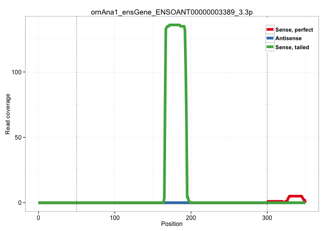 | CTTGTATTTTTTTTTTTGAATGTATGTAAGCTAACCATTGTACCGAACGTTTGCGACACAACTGAGGTATTTCATTTAAGCAGAACCTTGAGACCTGAGGAAACCATTCATTCATTCAATAATATTTATTGAGCGCTTACTATATGCACAGCACTGTACTAAGCACTTGGAATGAACAAGTCGGCAACAGATAGAGACAGTCCCTGCCGTTTGACGGGCTTACAGTCTAATCAACTATGAATCACTTGTATAAAAATAAATGTTTCGTTTGGGGTTGATGCCTATTCGCTTTATTGACAGGCATAAATTCAAGCAGTGGGCAATACCTTGGTACGTGAATAGAAGATACA .............................................................................................................................................................................................................(((........))).....(((..((((((((((((.((.((((......)))).)).)))))....)))))))((......))......))).................................................... ........................................................................................................................................................................................................201................................................................................................300................................................ | Size | Perfect hit | Total Norm | Perfect Norm | SRR553596(SRX182802) source: Testis. (Testis) | SRR553594(SRX182800) source: Heart. (Heart) |