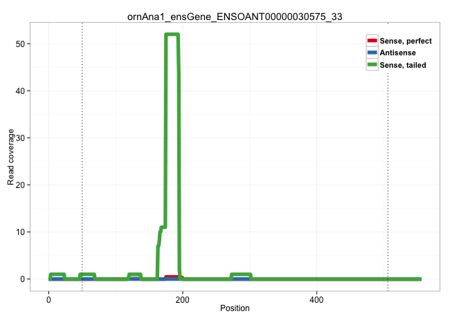 | CTGTTTTATTTTATTCTCCCCAGTCCTTAGAGAAGCAGCGTGGCTCAGTGGAAAGAGCACGGACTTGGGAGGCAGAGGTCATGGGTTTGAATCCCGGCTCAGCTCAGCCACGTCAGCTGTGTTGACTGTGGGCAAGTCACAACTTCTCTGTGCCTCAGTGACCTCATCTGTAAAATGGAGATTAAGACTGTGAGCATCATGTGGGACAACCTGATTACCCTGTATATCCCAGTGCTTAGAACAGTGCTCTGCACATAGTAAGCGCTTAACAAATACCAACATTATTATTATTAGTACAGTGTTAGTACAGTGCTTTGCACACAATAAACACTCAATGAATACCGTTAATCAATTGATGAAAGGAGACATGCAAATGATTATGAATCATTCAGTCGTAGTAAGTGCTTACTGTGTGCAGAACACTATTCTAGGCGCTTGGGAAACTCTCTGCAGAGTTGACAGAGTGCTATGGGCTAAATCTGAAGAAAGCTGAACCTGTTTATCAGCCTGTTTCTGGGAAATTATGCATATTCAAAGGGTGCTGCTCTGACTTGCT ..........................................................................................................................(((.(((..((.((((......(((((((....(((((....)).)))....)))))))....))))))..))))))..................................................................................................................................................................................................................................................................................................................................................................... ...................................................................................................................116................................................................................199................................................................................................................................................................................................................................................................................................................................................................... | Size | Perfect hit | Total Norm | Perfect Norm | SRR553596(SRX182802) source: Testis. (Testis) | SRR553593(SRX182799) source: Cerebellum. (Cerebellum) | SRR553594(SRX182800) source: Heart. (Heart) |