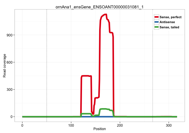 | CATACCTTTTTTTCCGCTTTATATAGGTCCTTAGAGAACAACTGCCAGTGGTGAGTTAAGGAAATTGACTGGGGTTTTTTGGTGGTGGTACCCAAGTGTGAGGGCAAAATTTGTGAGGGGAGGATGTGATGAATTTCTTGGAATCTCGTTCGGCTGAACTCTGCTGTTGAGACTTGGAAATCTGATTGTCAGCAGTAGCTGACGTTGGGAGAAGGATGGAAGCCTTGCTGAAGGAAATGTTCTGAATCTCCTTTCTGCTTGTTACAGCTTACCCGTTTTGATAGGGTCAAGACAAGACTGAATAAAGGTAAACTCTT .......................................................................................................................(((((..........)))))....(((((..((((........)))).)))))................................................................................................................................................. ....................................................................................................................117.........................................................177.......................................................................................................................................... | Size | Perfect hit | Total Norm | Perfect Norm | SRR553593(SRX182799) source: Cerebellum. (Cerebellum) | SRR553595(SRX182801) source: Kidney. (Kidney) | SRR553594(SRX182800) source: Heart. (Heart) | SRR553592(SRX182798) source: Brain. (Brain) | SRR553596(SRX182802) source: Testis. (Testis) |