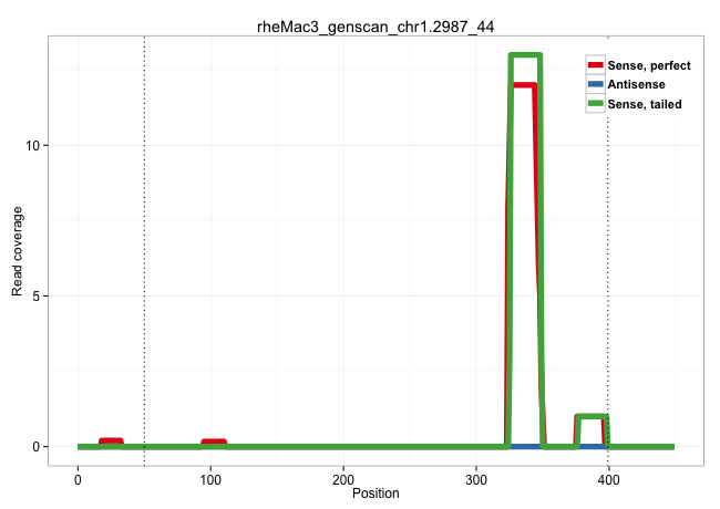 | GCACTTCACCATCGGCAAGTCTCGCTCCTCTGCCCGCCTGGTGGTCTCAGGTGAGCACTCCCGCCCCGGTGGGTGGACGCGAGGCAGAGGCATAAAAGGACAAGGCTGTGGGTGGGTACAGGGCAGGGTCATGGGAGGAGAAGGCTCAGTGCAGTGACGGGACACAGTTCAGGGCCACAGATGGGTATCACTCATGGCCAGGGGAGGACACAGTTCAGGGCCACAGAGGATACAGCTCAGGGCCAGGGGAAGGCACAGTTCAGGGAACAGTGGACACGGCTCAGGGCCAGGGGAGGACATAGTTCAGGGCCATAGGTGAGCAGGCTCAGGGCTTGGCAGACAGGACAGGGTGATTGGTTCCTGTGGCCCCGTGGCCCAGCCTGTCTCCACTCCCTGCAGACATCCCCGTAGTCCTCACACGGCCGTTGGAGCCCAAGACAGGGCGTGAG ....................................................................................................................................................................................................................................................................................................................................(((((((..(((.(((((((...((((.((.((..((...))..)))).))))..))))))))))..))))).)).................................................. .................................................................................................................................................................................................................................................................................................................................322..........................................................................399................................................ | Size | Perfect hit | Total Norm | Perfect Norm | SRR553579(SRX182785) source: Heart. (Heart) | SRR553578(SRX182784) source: Cerebellum. (Cerebellum) | SRR553605(SRX182811) source: Frontal Cortex. (Frontal Cortex) | SRR553581(SRX182787) source: Testis. (testes) | SRR553580(SRX182786) source: Kidney. (Kidney) |