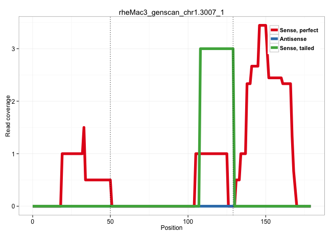 | CCTGTACAAGCTTAAGCTGGGTGAGATCGTGACCACCATTCCCACCATAGGTGAGGTGGGGGCCAGCAGGGAGTGGGTTGGGCTGGACTGGGCCAAGGTACAAGGTCTCACCCTGCATCCTGCACCCAGGCTTCAACGTGGAAACCGTGGAGTACAAGAACATCAGCTTCACTGTGTGG ...................................................((.((((.(((...((((((..((((((((.((.....)).))))..........))))))))))..))).))))))................................................... ..................................................51............................................................................129................................................ | Size | Perfect hit | Total Norm | Perfect Norm | SRR553577(SRX182783) source: Frontal Cortex. (Frontal Cortex) | SRR553605(SRX182811) source: Frontal Cortex. (Frontal Cortex) | SRR553581(SRX182787) source: Testis. (testes) | SRR553606(SRX182812) source: Kidney. (Kidney) | SRR553578(SRX182784) source: Cerebellum. (Cerebellum) | SRR553607(SRX182813) source: Testis. (testes) |