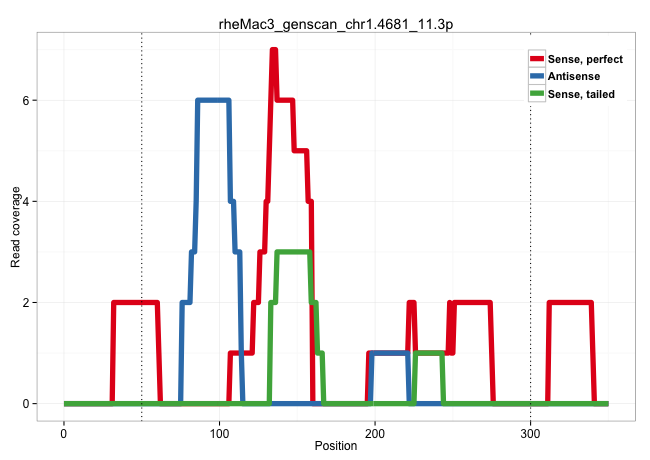 | CATGTTTAAAGAGTTTTGTATTAACTTTTCATTATTTTGTATCTAGATGATCAGCAGTGGGGCTACCACTTTCTTTGGTTTTGTATCCGTTTCCTCTTGGAAGTTCTTGTTGCTTATGTGACCTGTTGGTTGTTCCCTGGACTGGGCACCTGCAGGAGTCAGGGCAGATGGCAGGCGTGGCTGGAGGACAGGGCTCTTCTGCTTAGTTGTGTTCAAGTCTTCCAGCGTGGGACTGGTAGGAGCAGTGGGCATTCTTTTTCTAAGGGCTAGCCAGGCTGCATCATGTCGGACCTTCCCCAGCCCTGACCACCACCGGAAGCAGAAGAGTGGAGTTCGCGATCACCTCAGCA .....................................................................................................................................((((........((.(((((....(((......))).))))).)).((((((((((.((((......))))..(((....)))))))))))))..)))).........(((((.(((..(((((....)))))...)))..)))))....................................................................... ...................................................................................................................................132.................................................................................................................................................280.................................................................... | Size | Perfect hit | Total Norm | Perfect Norm | SRR553581(SRX182787) source: Testis. (testes) | SRR553607(SRX182813) source: Testis. (testes) | SRR553606(SRX182812) source: Kidney. (Kidney) | SRR553577(SRX182783) source: Frontal Cortex. (Frontal Cortex) | SRR553580(SRX182786) source: Kidney. (Kidney) |