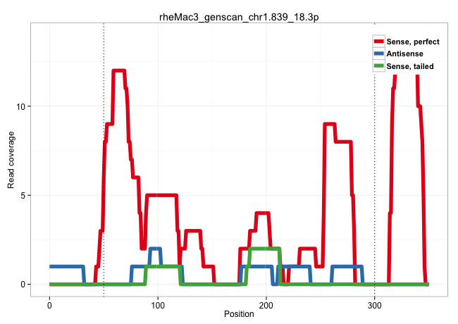 | CCTCTTAAGCAGGCTTCTATTTCTTACCACTAAATTGGTTTCCTTTTTCATCCAGAAGTTAGAACTCCCCAGATATTCACACTATAGGGTCTGAATTCCGAGATTCTAAAATATCTTAAACCACAAGAGAGAAAATGTAGTGCTGCCCCGGCCCCAGTCAGCAGGCCATCTTTCCCTTCCTCTCCTGAGTCAGACAGCTCTGGCAAGCAAGGCTCCTTGGCTAGTTCCTAATGCACTGACAGGAGCCCTCCCATTAAGGACGACTTCTACTCAAAATGCGACTCTCCCTCTGGACTTCAGGTGCCTCTGTTAGCAGGAAAAGGCATTGATCGGATTGGTATATTTATGTG ...........................................................................................................................((.(((((.....(((....)))...((((..........))))............))))).)).((((((....))))))...((((....))))................................................................................................................................... ....................................................................................................................117....................................................................................................220................................................................................................................................ | Size | Perfect hit | Total Norm | Perfect Norm | SRR553581(SRX182787) source: Testis. (testes) | SRR553607(SRX182813) source: Testis. (testes) | SRR553579(SRX182785) source: Heart. (Heart) | SRR553580(SRX182786) source: Kidney. (Kidney) |
