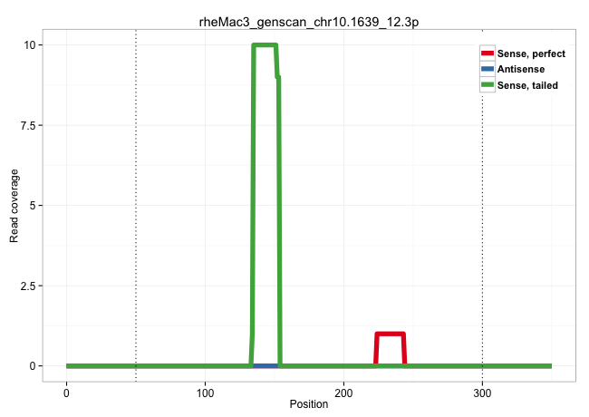 | AGGTGGCCATGCTTGCAAATGAAAATCCTATCTGGAGCCTCTTGCCAAGCCATGTCCCCAATAACAGGAAGAGCTCTGGCACAGCTCTGAGATGCTTGATTCATGAGCCATTTCCATCTCTCTGGGGAAAGCTGCATGTGAACAGCATTTTGGAGCTTGCCTCTGGTGACGGCATGATTTATATTCCCCAGAGCAGGCAGGATCTGGGCTTCTCACAGAGTCCCTGGAACAGATGCTAGCAGGGCAGGTAGGTACCATGAAGCAGCTACTGCCTGTCTCTGGACTGCTCCCTCTCTCCAGCTCCCCTCTCAGCCCTCGCCAGGAGGTATACCTTGCTGCCCTCTGCTTAA ...................................................................................................................................((((.(((....(((((((....(((((.((((((.((...............)).)))))))))))....((..((...(((...)))..))..))..))))))).)))..))))....................................................................................................... ..................................................................................................................................131..................................................................................................................248.................................................................................................... | Size | Perfect hit | Total Norm | Perfect Norm | SRR553605(SRX182811) source: Frontal Cortex. (Frontal Cortex) | SRR553606(SRX182812) source: Kidney. (Kidney) | SRR553579(SRX182785) source: Heart. (Heart) | SRR553578(SRX182784) source: Cerebellum. (Cerebellum) | SRR553581(SRX182787) source: Testis. (testes) | SRR553577(SRX182783) source: Frontal Cortex. (Frontal Cortex) |