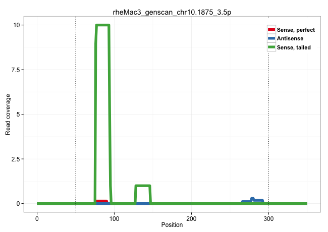 | CCCAGGAGAGGGCTCCCCCATGTCAGATGGGAACCCCGAGCACCCCTCAGGTGAGTGCTGATGACAGGGCTGAGGGTGGGGCAAGGCCAGTCAGTGGAGAGAGGAGACGGCTGGATGGCAATGAGACCCTGGACTCTAGGGAGAGTGTGCCAGGCTGTGCAGTTGCCCCAGCAGAGCTGCAGGGGCCCAGAGGGAGCTCCACGGGGGTTCCAGTGCCAGGGGCAGCGGCTGGGCAAGATGGCTCTGGTCAGGGCTGATCCAAGGGGTCACTGCTGCTGGGCAAAGAGGGCCAGTTAAAGAGTCTATAGAGGCCAACTGGCCAGGCACAGTGGCTCACGCCTGTAATCCCA ........................................................................(((((....((..((((..((((..............))))..))))..))..)))))..(((((....)))))............................................................................................................................................................................................................ .......................................................................72.............................................................................151..................................................................................................................................................................................................... | Size | Perfect hit | Total Norm | Perfect Norm | SRR553577(SRX182783) source: Frontal Cortex. (Frontal Cortex) | SRR553605(SRX182811) source: Frontal Cortex. (Frontal Cortex) | SRR553580(SRX182786) source: Kidney. (Kidney) | SRR553606(SRX182812) source: Kidney. (Kidney) | SRR553578(SRX182784) source: Cerebellum. (Cerebellum) |