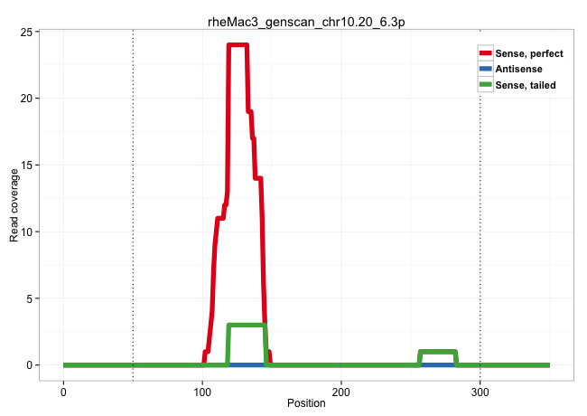 | GACTTGGGTAAAATCCCAAAAGGCAAGAAACAAACAGGAGGACCCCAACCTCTGCATACAACTGCCCCCCCACCCCAACCCTCTAAGCCACACACACACACATGCACACAGAGCAACACTGCAAGAACCAAGCAGAACAGCGCTGGGTGGGAGGCTACGCCACACGGCAGCACAGCAGCGATCTCCGTGGTCATGCACGTGAAGACACAGGCTGGAGGCCAAACCCCGGCAAGGTGAAGGAGATCCAGGAAACACCCTGGACTTTCAGGTGAGACCCCAGAGGGACCACATCTCCCGAAGAGGGACCACATCTCCCCGAAGAGGGACCACATCCCCCCGAAGAGGGACCA .............................................................................................................................................................................................................(((..(((((.((.....)))))))...)))..(((..((((((......))))))..))).((.(((((((....)))......))))))...................................................... ........................................................................................................................................................................................................201................................................................................................300................................................ | Size | Perfect hit | Total Norm | Perfect Norm | SRR553581(SRX182787) source: Testis. (testes) | SRR553607(SRX182813) source: Testis. (testes) |