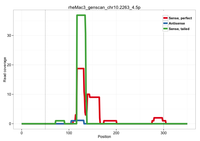 | GCGGCACCCCACAAGGAGATTTTAATTGTGTGTGGCTTGCTGGATGCCAGGTAAACACAGCACACATGCCTTCTTTCATTTATTTTTCTGCCCAAGAACCAGTAAACACAGAGTTACTCCTGTACTGAGCTGAGTAAAATAAGCTGACTGAGAGGATACACTGGCCTCAGTTTCAACAAATGCGTTTGGCACCAAGCCCTGCAAGGGCTCCACGGAGCAGCTTTGGGGGAGACCTGCCTCCACGTACCCTACCCGACACATCCTGGGATCCCCGTTTGGGGTACGAACAACAGGAGAGCATTGATGCATTTTTCAAAATCCAGCAGGAGGGAGCCGTGGGCTGTGGATGC .......................................................................(((....((((((.((((.....))))..))))))...))).((((((..((.....)).))))))..................................................................................................................................................................................................................... ...................................................................68......................................................................140................................................................................................................................................................................................................ | Size | Perfect hit | Total Norm | Perfect Norm | SRR553579(SRX182785) source: Heart. (Heart) | SRR553581(SRX182787) source: Testis. (testes) | SRR553578(SRX182784) source: Cerebellum. (Cerebellum) | SRR553580(SRX182786) source: Kidney. (Kidney) | SRR553606(SRX182812) source: Kidney. (Kidney) | SRR553577(SRX182783) source: Frontal Cortex. (Frontal Cortex) | SRR553607(SRX182813) source: Testis. (testes) | SRR553605(SRX182811) source: Frontal Cortex. (Frontal Cortex) |