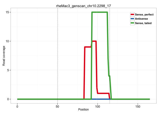 | CCAAGCGGCGGCAGAAACGGGACACCACACACAACCTGCCTGAGTTCATTGTGCGTGCACGGGGCGGGCGGGAGGCGCCCCCATGGGACCGCGCTGAACCTGGCCCCCCATGCAGGTGAAGTTCGGCTCTCGCGAGTGGGTGCTGGGCCGCGTGGAGTATGACAC .......................................................((((.((((.((.((((.(((((.((....))...)))))...)))).)))))).))))................................................... ..................................................51..............................................................115................................................ | Size | Perfect hit | Total Norm | Perfect Norm | SRR553577(SRX182783) source: Frontal Cortex. (Frontal Cortex) | SRR553578(SRX182784) source: Cerebellum. (Cerebellum) | SRR553580(SRX182786) source: Kidney. (Kidney) | SRR553605(SRX182811) source: Frontal Cortex. (Frontal Cortex) | SRR553579(SRX182785) source: Heart. (Heart) | SRR553581(SRX182787) source: Testis. (testes) |