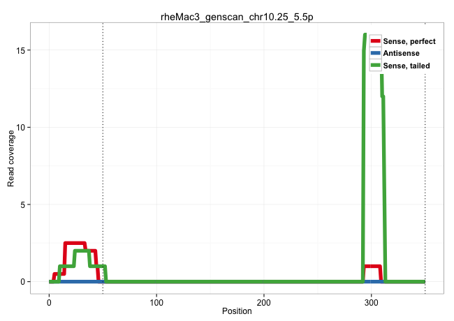 | AGCCCCATCCTGGACATCGAGGACTTGGTCAAGAGCGGAAGCAAGCACAGGTGAGACCCCTCAGTGAGGCCACGACCACTGTCCTTCCATGGCCCAGCTCTCCTGTGACCTGTGGAGGCCCAGATATGTTTCTTCCCTTTTCTTTGTTCCTTTCTAAGTCGTGAAACTAACCACCGTTTAGTGTGAGAAAGTTGAAGCAGCTCTGAGGAACGTAGAGTAAAAAGCGAAACCGCCTCCCTCTTCCTGGCCGTCAGCCACCCCAGGAGCCACCGTGGAGCGGGGACAGAGCCCTGCAGGCTCGTGTCTGTGTGGAAGCACGCACGGTTTTGTCTGCACAGACTGTTCTGCAG | Size | Perfect hit | Total Norm | Perfect Norm | SRR553605(SRX182811) source: Frontal Cortex. (Frontal Cortex) | SRR553577(SRX182783) source: Frontal Cortex. (Frontal Cortex) | SRR553607(SRX182813) source: Testis. (testes) | SRR553578(SRX182784) source: Cerebellum. (Cerebellum) | SRR553581(SRX182787) source: Testis. (testes) |
