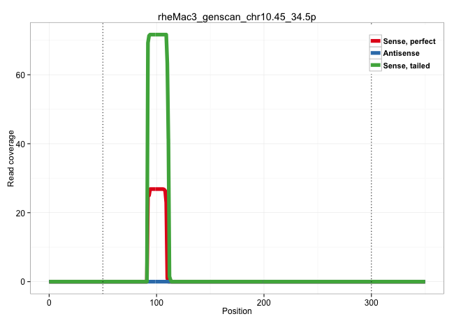 | CCCCGGATACCGCGGTCCCACTGGGGAGCTGGGAGACCCCGGGCCCAGAGGTGAGTGGTCGACCCCACGACATGGTCACCCTGCTGTAAAAATCCCTGAGACTAACTTGTTAGTAGGCGCTGCTTCTGGTGCCTGCCAAGCGCCTTCAGTGGTAATGCCCGGAAGGCAGGGGCCCCTCATATTTTGGGGCCTAGCGCAGTTAACGCCTTAGTAATCCTGTGGGAACTGGAACATTTTTAAAATGTGATGTTTTTCTCAAATACCATTAGAACAATATTTGGCAGGGAGAGGTTGATTAAAACTGTGGCGAAGGCCGGGCAGTGGCTCCCACCTGGAATCCCAGCACTTTC ............................................................................................................................................................................................................(((((.....((((.((((((...(((((((..........)))))))))))))....(((.............)))..))))))))).......................................................... ........................................................................................................................................................................................................201................................................................................................300................................................ | Size | Perfect hit | Total Norm | Perfect Norm | SRR553578(SRX182784) source: Cerebellum. (Cerebellum) | SRR553579(SRX182785) source: Heart. (Heart) | SRR553605(SRX182811) source: Frontal Cortex. (Frontal Cortex) | SRR553580(SRX182786) source: Kidney. (Kidney) | SRR553577(SRX182783) source: Frontal Cortex. (Frontal Cortex) | SRR553606(SRX182812) source: Kidney. (Kidney) | SRR553581(SRX182787) source: Testis. (testes) |