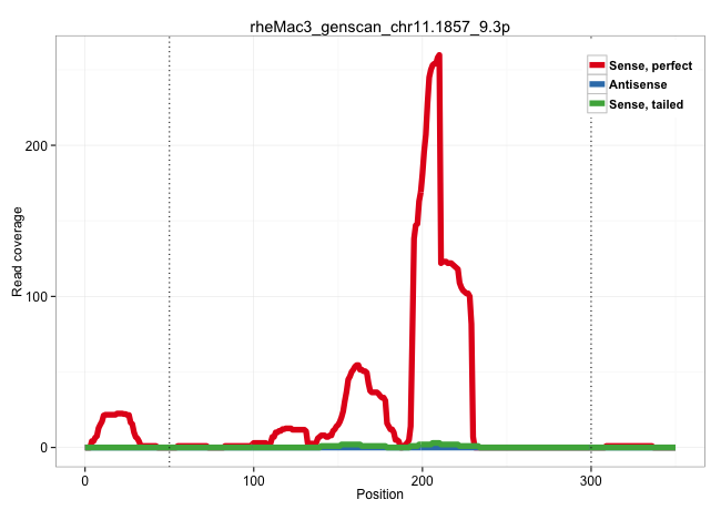 | CCACCTTTGTGGATGAATCTTGAACTGAGTTCCACTTGTAAACTTCTTGTTTCTTGTGGTTCCAGTCAAAGAAACATCCAGCAACTTTTTTGGTTGTATAGTCAAAGGTGCTTGAGTCATTGGCATGTAAGAGAAATATACCTGCATGTTAGTCTAACGTTCTGATAGAAATGACATGCATTTTTGCTGCCATTTGTTACTATCAGGACTCGACTCGTGTGCGGACACTTGTGTTAATAATGACAATCTCTGATAGATGAGTATATGCAACTCTGTAAAACAAGTCTCTTGATTTCCTAGATTCTACAAGGGGGTTGCTCCTCTCTGGATGAGACAAATACCATACACCA .......................................................................................................................................................(((....(((((((((((((((.((.(((....))))).)))))....))))))))))..)))........................................................................................................................................ .......................................................................................................................................................152............................................................215..................................................................................................................................... | Size | Perfect hit | Total Norm | Perfect Norm | SRR553579(SRX182785) source: Heart. (Heart) | SRR553606(SRX182812) source: Kidney. (Kidney) | SRR553605(SRX182811) source: Frontal Cortex. (Frontal Cortex) | SRR553580(SRX182786) source: Kidney. (Kidney) | SRR553577(SRX182783) source: Frontal Cortex. (Frontal Cortex) | SRR553607(SRX182813) source: Testis. (testes) | SRR553581(SRX182787) source: Testis. (testes) | SRR553578(SRX182784) source: Cerebellum. (Cerebellum) |