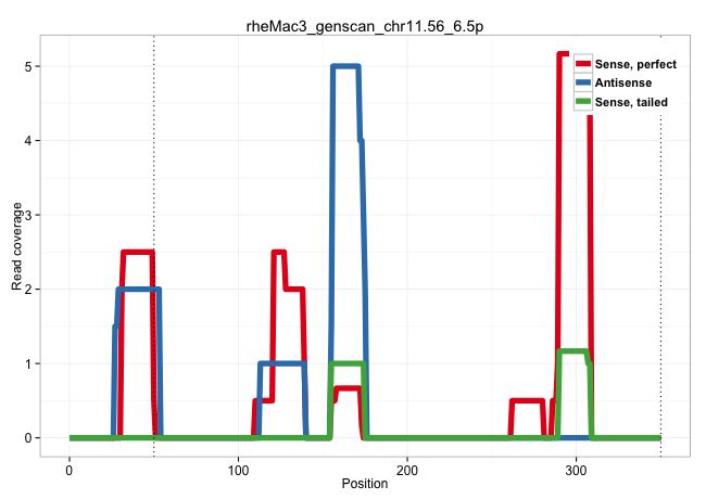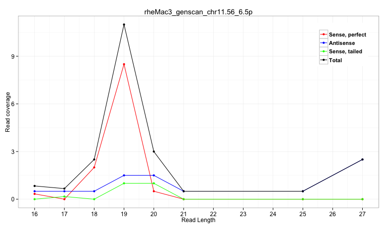 | TGCCAAGGCAGTGGCAGCCCTGCAAGCCTTCAGGGATGTGTCCTGCAGAGGTGAGTGGCAATGGGGCACAGTCCTGGGTTCTAGGACTCGATCGTTCCTAGGGAAATCTGCTTTCTCTGGAGACAGTCCAGTATAGTAGTTAGAAGCACGATTTTAAATGCAGAGTCATCTCAGTGGGTTCGGATCTTGGCTGTGCTTCTCACTAGCAATGTGGCCTAGGGCAAATGACTTTTAGGTTGTGCCTCTATTTCTTCATTTGAAAAACAGAGGTAAAAATAATTGTTCCCTTTAGGGATTTTTAGTGAGGGTGGAGTGAGTAAATGTGAGGTGCCGAGAACAGGGCCTGCTCT | Size | Perfect hit | Total Norm | Perfect Norm | SRR553581(SRX182787) source: Testis. (testes) | SRR553607(SRX182813) source: Testis. (testes) |