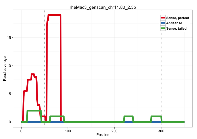 | CCCATTTCACAGATACGGAAACTGAGGCCTGCATTTGCTCAGGTCAAGTAGCTCATAAGAGCTGAAAGTGGGTGAAATCTGGATCTGCGTGGCTCCTCAGTGGCCTGCCAGCTCTGGGCAGATCACAGCCATGAGCCCGGCAGCCGGGAGCTGGAAGGGCTCACCTGCCTGTCTTTCAGGAAGGGCTGCTGAGGTTGCTTGAGGCCGGGCTCAGGGAGGGGGAAGGAAAGAGGATCACGAGCCCCAAGGGCAGGACCTCATTGTCTTTCCTAACACCAGACCCTCTTCTCTTCCCCTCAGGTGAACAGCCCCCCCTCCCAGCCCCCTCAGCCCGTCATCCCTGCTAAGCC .........................................................................................................................................................................................................................((((((((..((((((.((....((((...)))).((((......))))............)).))))))..))))))))..................................................... ........................................................................................................................................................................................................................217................................................................................300................................................ | Size | Perfect hit | Total Norm | Perfect Norm | SRR553581(SRX182787) source: Testis. (testes) | SRR553607(SRX182813) source: Testis. (testes) | SRR553605(SRX182811) source: Frontal Cortex. (Frontal Cortex) | SRR553577(SRX182783) source: Frontal Cortex. (Frontal Cortex) |