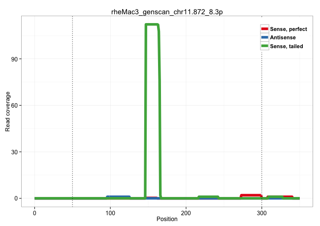 | TGGTGAGAATTAGCTCAAGGTGGACACAGCTGTGAGGGGGCAGCTGGGGTTCTCCTCACTCTTCTAGTTCTCTCCATCTACATCGTTGGTTCAGTGGCCTGCAGGGTTCAGCAGGTAAAGTCCTCAAACATGCCTCAGGCTGGATGGTGAGGTAGGATGTTGGCAGAGTTTGGCATCCAGGCAGGTCATGGAAAAAGAAAGGGGCCCAGGGTTTCTCTGGGCAGAGCTAGGATGTGCATGCGGGAAGGTGCTGGCAGAAGGGCACCACCCAACTGGGACCTCTCACCTGGCTGAGTGCAGACTTCCTGGTGGAGAAGGACCAGGAGTACTGCGTGTGTGAAATGCCTTGC ...........................................................................................................................................................................................................((((((((...))))))))..(((((((..........(((..((((((........)))))).)))...((((....))))))))))).......................................................... ........................................................................................................................................................................................................201................................................................................................300................................................ | Size | Perfect hit | Total Norm | Perfect Norm | SRR553578(SRX182784) source: Cerebellum. (Cerebellum) | SRR553577(SRX182783) source: Frontal Cortex. (Frontal Cortex) | SRR553605(SRX182811) source: Frontal Cortex. (Frontal Cortex) | SRR553579(SRX182785) source: Heart. (Heart) | SRR553581(SRX182787) source: Testis. (testes) | SRR553607(SRX182813) source: Testis. (testes) | SRR553580(SRX182786) source: Kidney. (Kidney) | SRR553606(SRX182812) source: Kidney. (Kidney) |