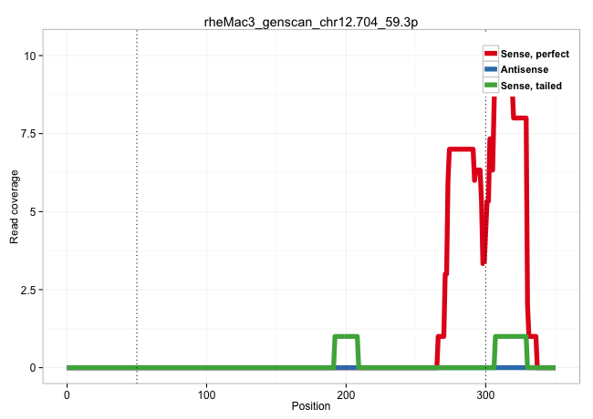 | CAAGATACACAAATCTATAGAGATGTAGATTGGTGGTTGCCTAGGTCTACAAGGGAGACAATAGAAAAGTCCTTGGGGCAATGGCTAAGGGGTACATAATTTCTTCTTGGGGAATGAGAATGTTCTAAAATTATGGTGATGTCTGCACAATGATGAATACATGGAAACTCATTGAATTGTGTACTTTAAATGGGTGGATTGTATAGTATGTGAATTATATCTCAATAAAGCTGTTAAAAATGTTAATTTTCTACATGCTATTTTCCAGCTCGTCATATAGAATTTAGGAAACACATTAAGGACATTAAGGTTCTGGAGAAGAAGCGAGCCATGTTTGAATGTGAAGTTTC .............................................................................................................................................................................................(((((((((....((((((((((((..((((...((((....))))....)))).....))).)))))))))..)))).)))))............................................................................. ...........................................................................................................................................................................................188.............................................................................................................300................................................ | Size | Perfect hit | Total Norm | Perfect Norm | SRR553579(SRX182785) source: Heart. (Heart) | SRR553578(SRX182784) source: Cerebellum. (Cerebellum) |