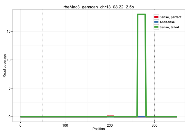 | TCCTGTGGCCTGGGATTCACACCAGGAAAGAACGCCACGAAGAAGGAATGGTGAGTTGCATCCGTGTCTGCTTCCCATGGGGATGGGAAATGGAGGGAGAACTGCCCAATGGGATTGTTCCTTTGCCCGACACCTTGCAGCAACCTTGCAATCACTTCTCATTTACATTTTTTATTCCCTAGCCTCTAGCTCAAGTAGATACTCACTAATGCACTAATGCTTGATTGTCATATCTAAGATTTTTCATATGTATCTTTCAGAGCTAATTCAAAGGTTGCTTATATTCTGAAATAATAATCTGTCCTAAAATCTCTTTGAATAACAACACAATTTAGTTCCCTTTAGGTTAA ..................................................................................................................................................................................................................(((....)))..(((((((((((....((....)))))))....(((((((((.(((......)))))......)))))))..))))))................................................... ........................................................................................................................................................................................................201................................................................................................300................................................ | Size | Perfect hit | Total Norm | Perfect Norm | SRR553579(SRX182785) source: Heart. (Heart) | SRR553577(SRX182783) source: Frontal Cortex. (Frontal Cortex) | SRR553606(SRX182812) source: Kidney. (Kidney) | SRR553580(SRX182786) source: Kidney. (Kidney) | SRR553578(SRX182784) source: Cerebellum. (Cerebellum) | SRR553581(SRX182787) source: Testis. (testes) |